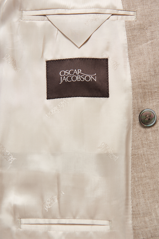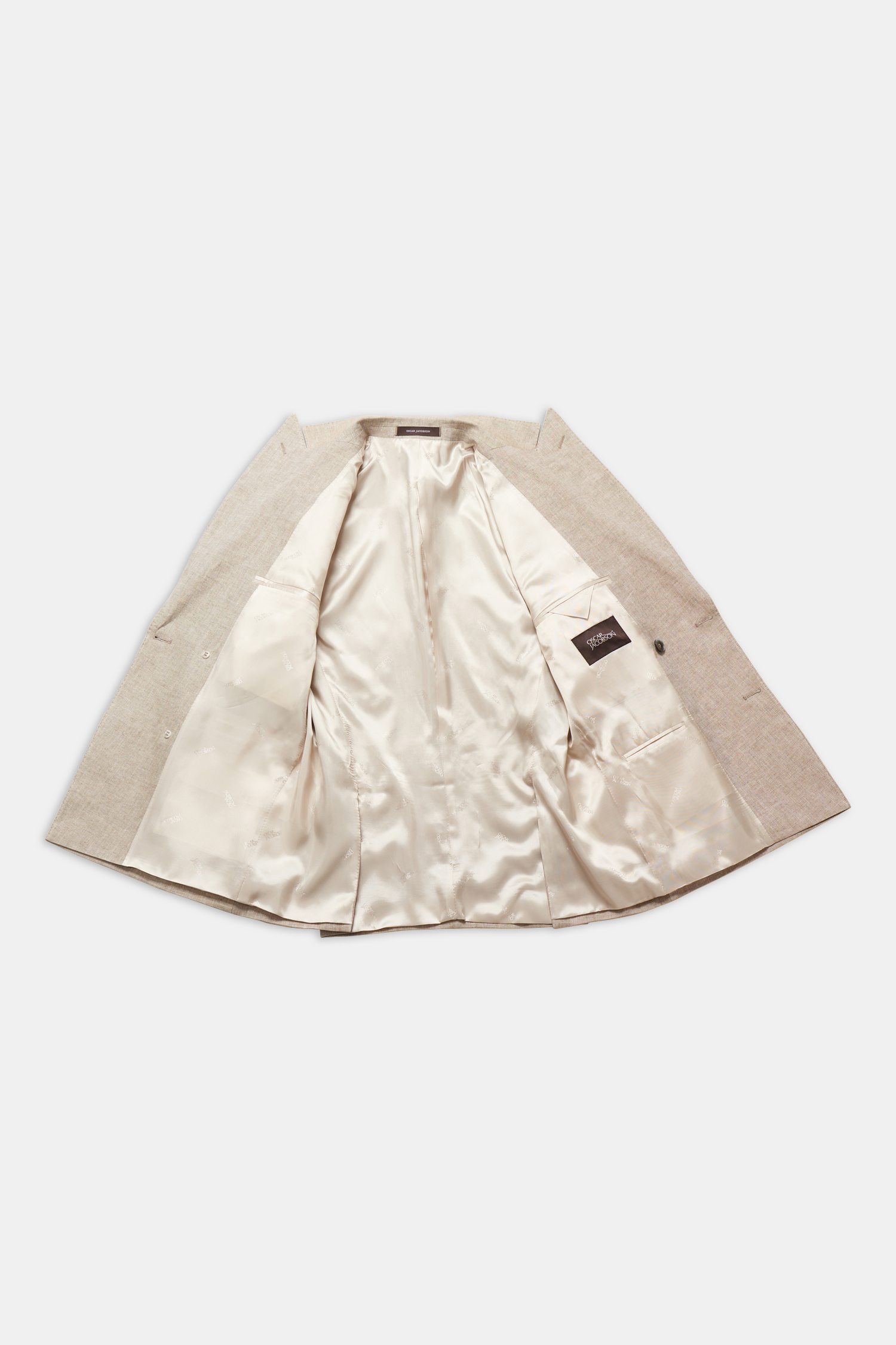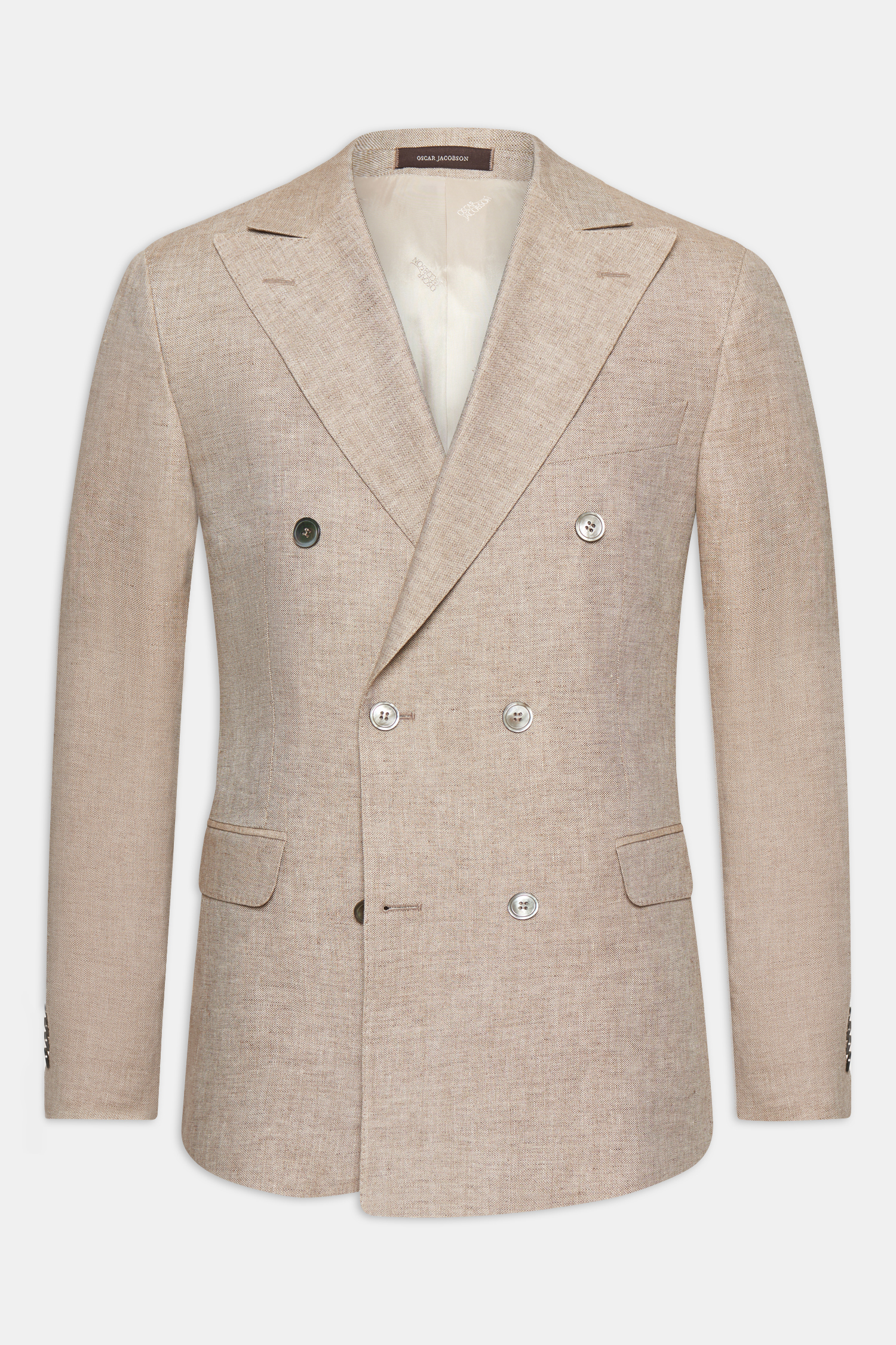 Dobbeltspent blazer med regular fit og myk skulder, brede spisse slag, doble innerlommer og lommelokk. Laget av et fint og svalt linstoff.