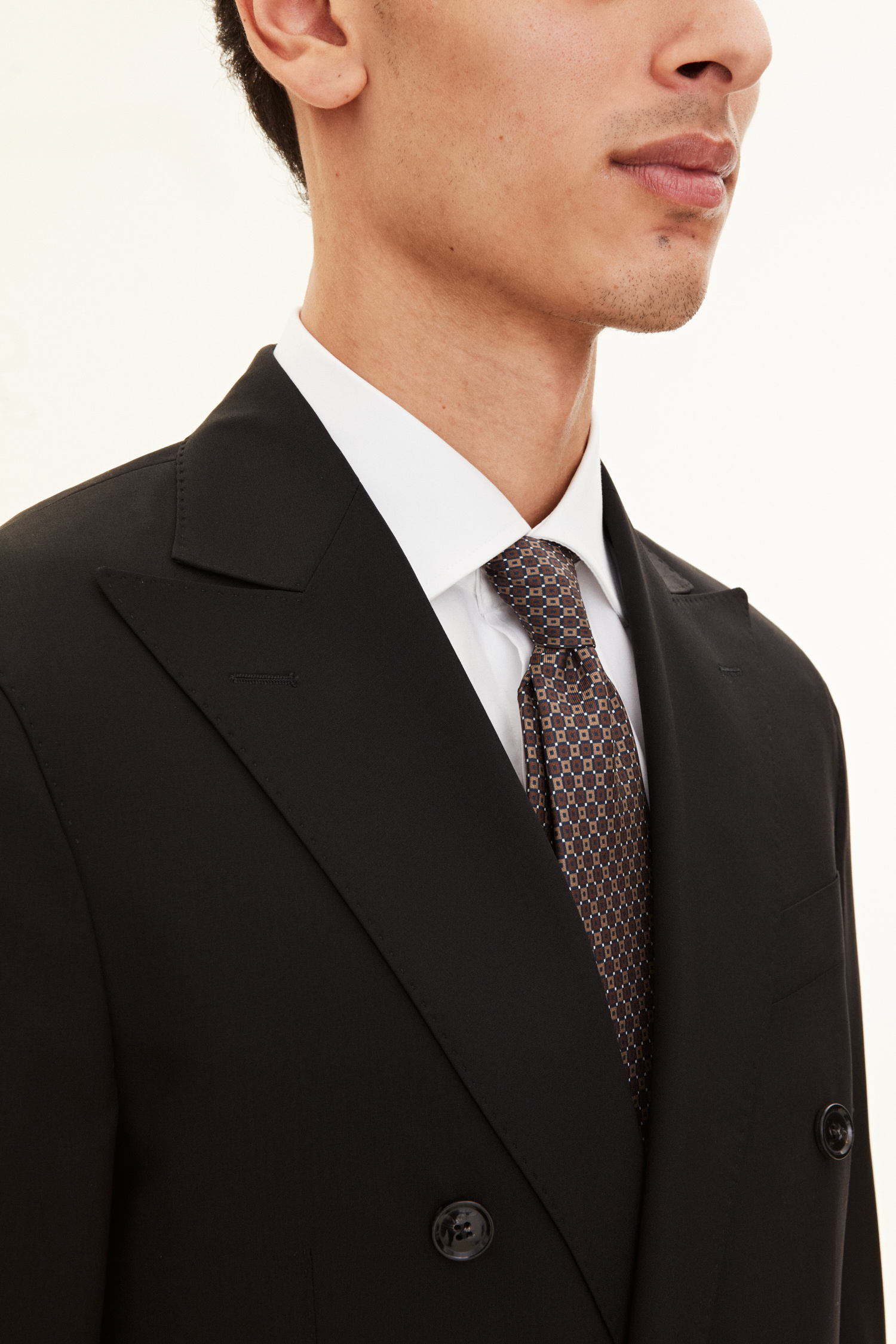 Klassisk dobbeltspent blazer i normal passform med spisse jakkeslag og mykt formet skulder. Laget i glatt Super 120's ull.