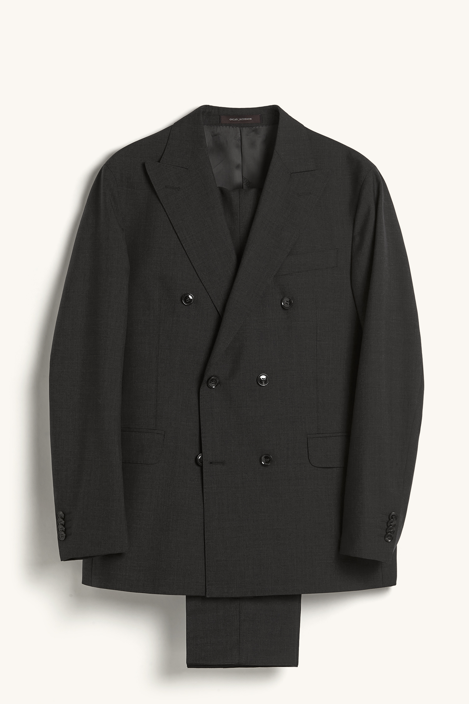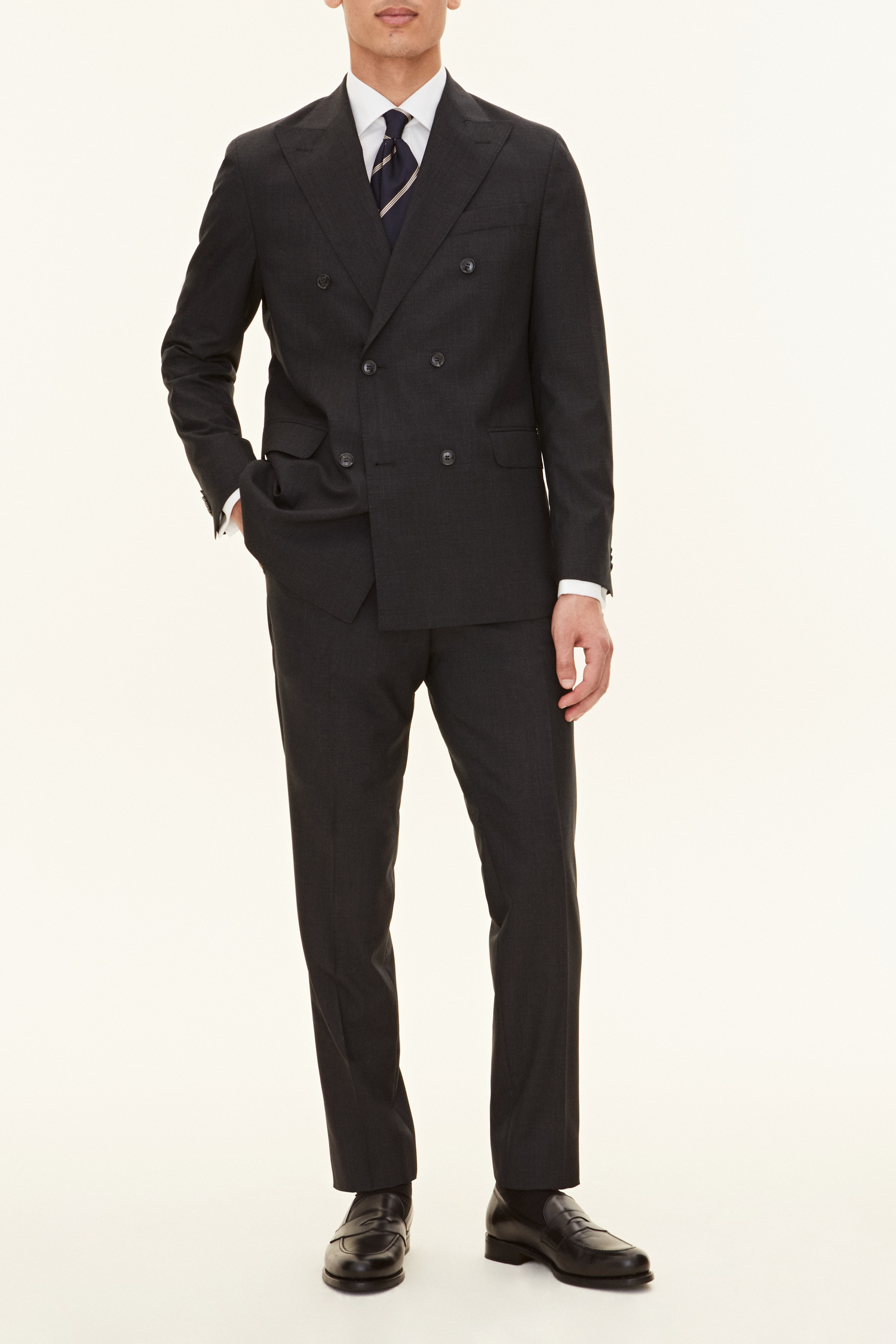 Klassisk dobbeltspent dress i normal passform med spisse jakkeslag og mykt formet skulder. Laget i glatt Super 120's ull. Tilhørende bukser har en klassisk, noe avsmalnende passform og en normalhøy midje.