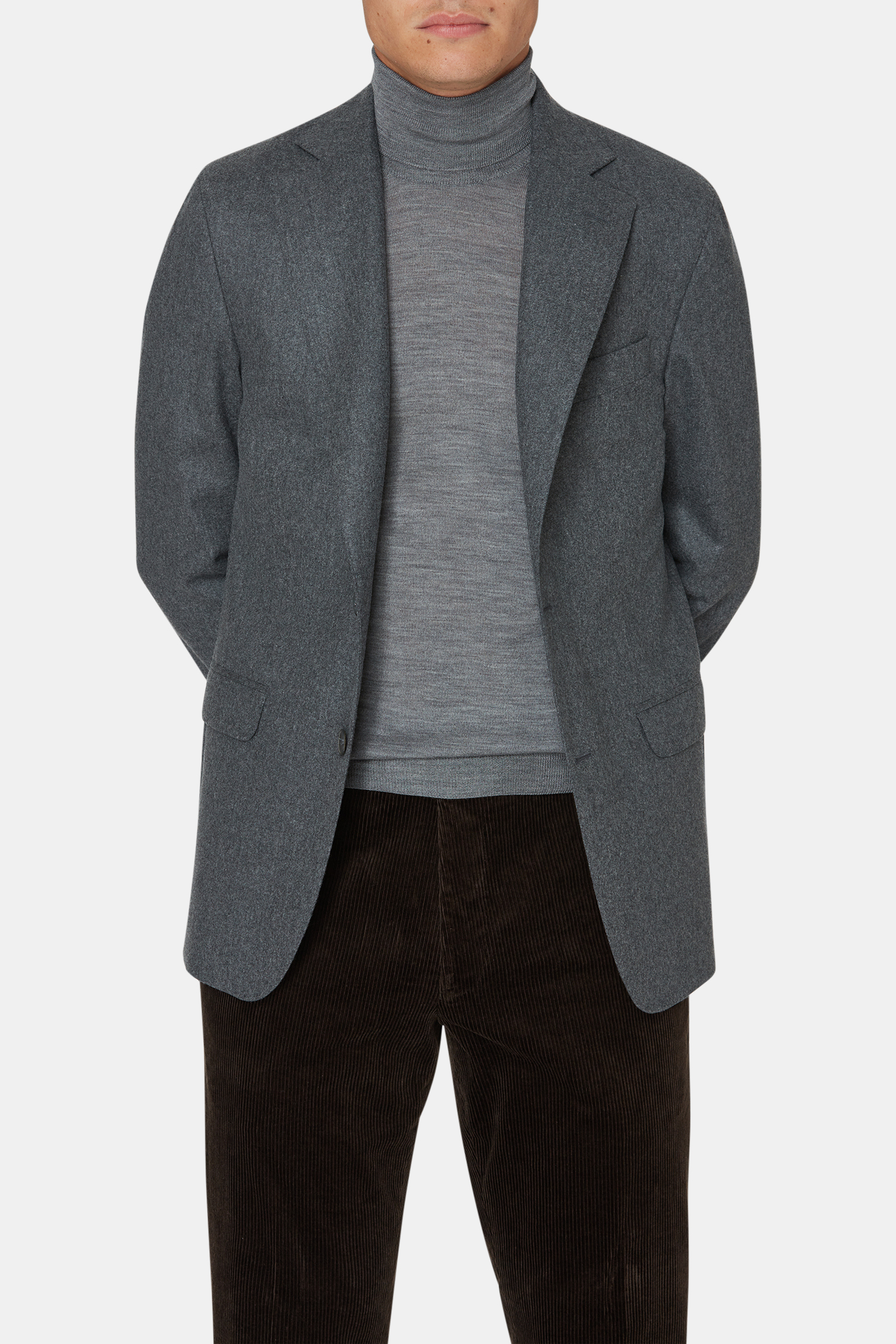 Enkeltspent blazer med helfôret innside og mykt formet skulder. Italiensk flanell av ull som gir en naturlig varme og høy pusteevne.