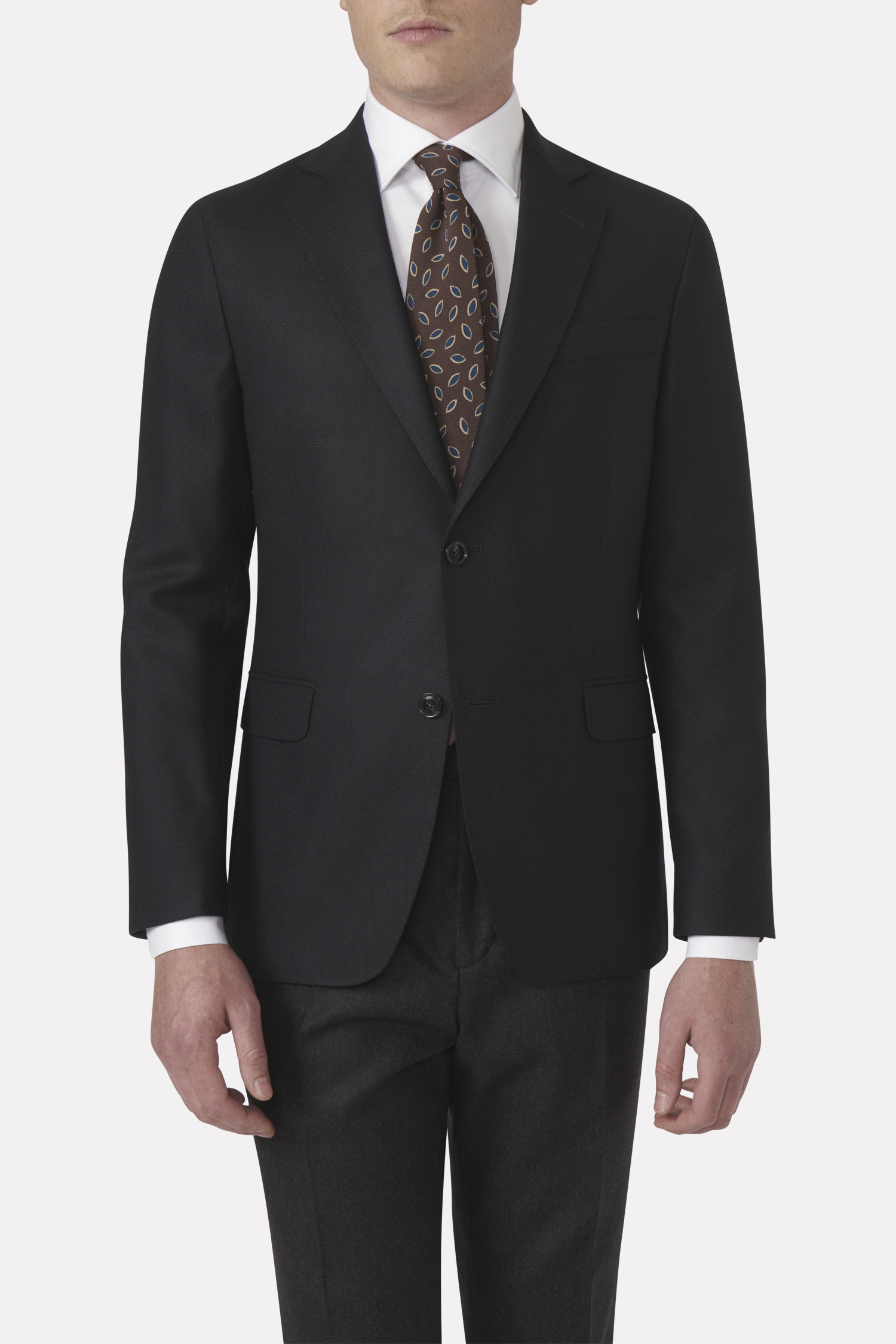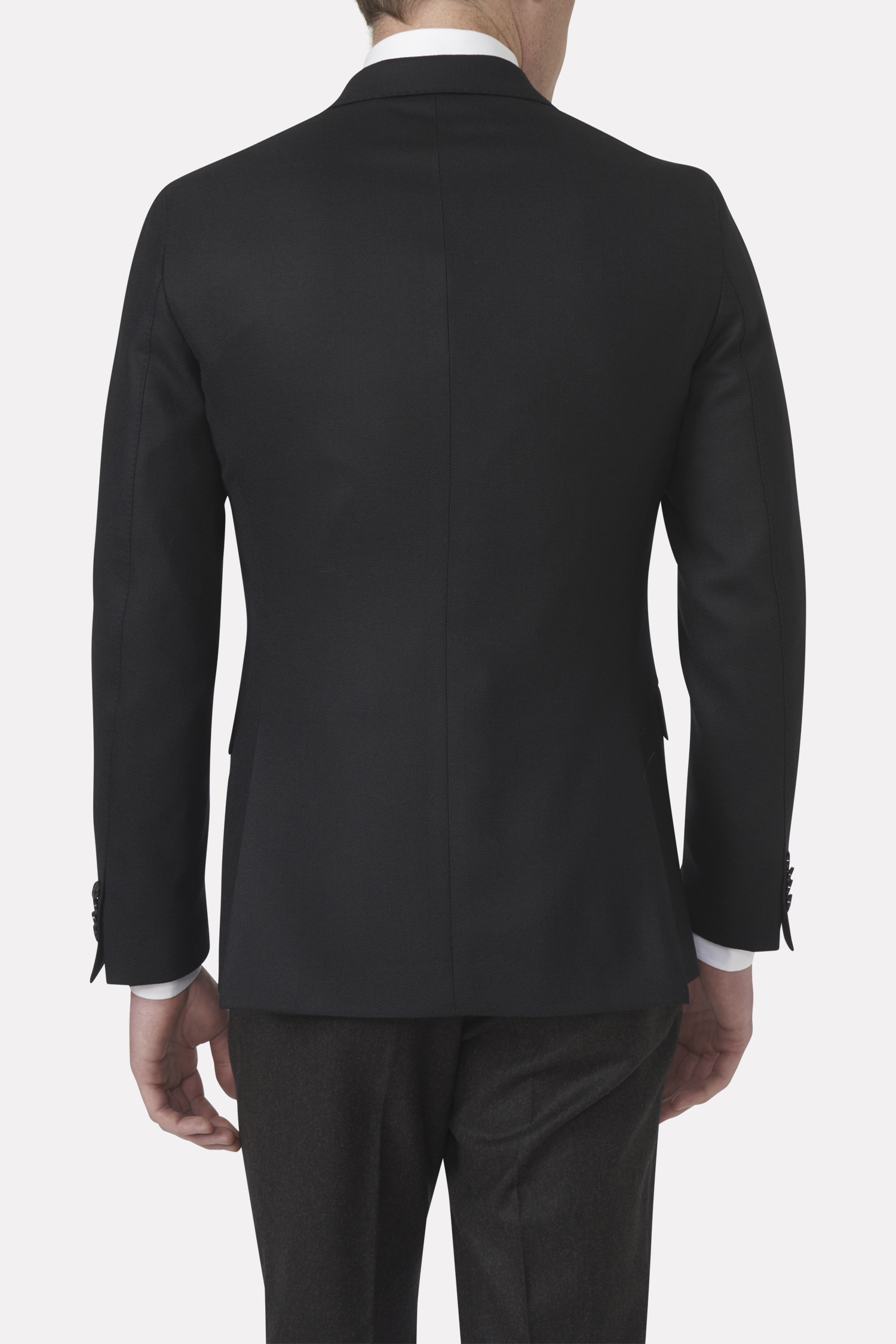 Formell blazer med myk oppbygd skulder, helfôr og en rak silhuett. Vår siste tolkning av club-blazeren i ren teksturert ull.