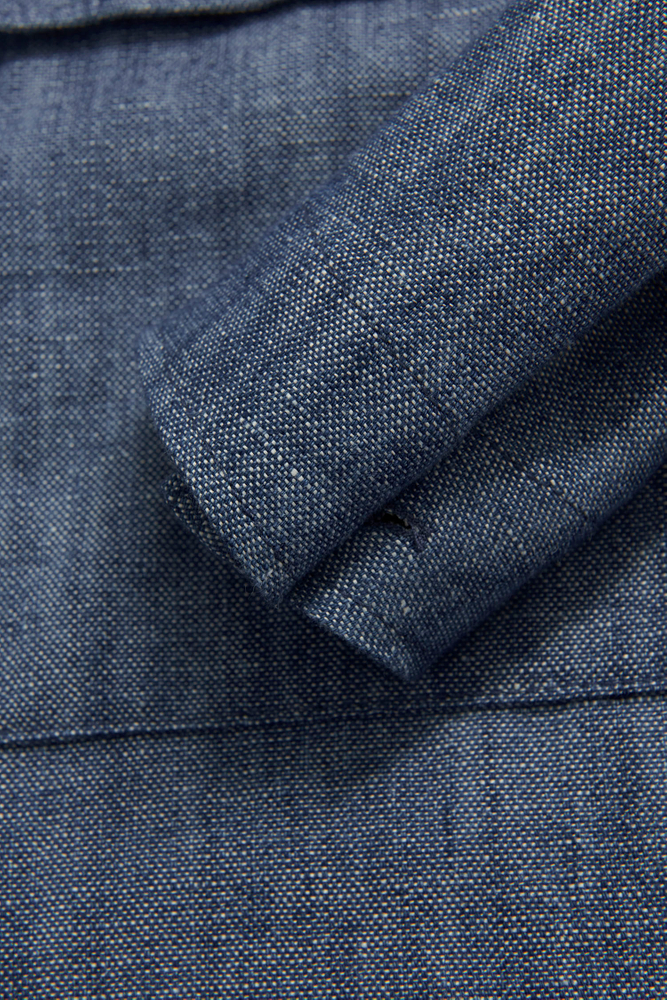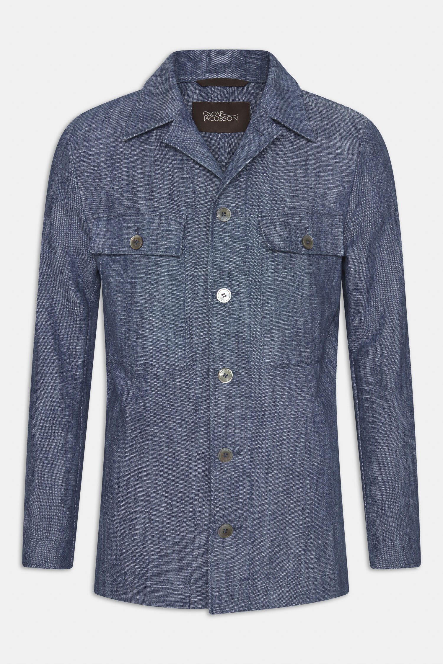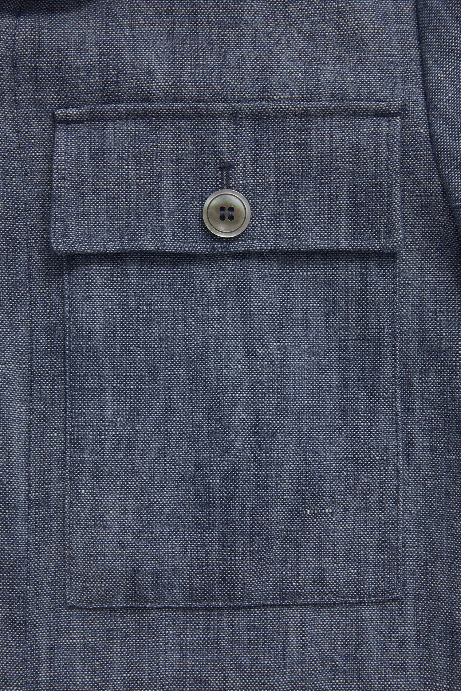 Ufôret skjortejakke i en smal passform med utvendige brystlommer utstyrt med lommeklaffer. Stoffet er laget av et robust bomulls- og linmateriale.