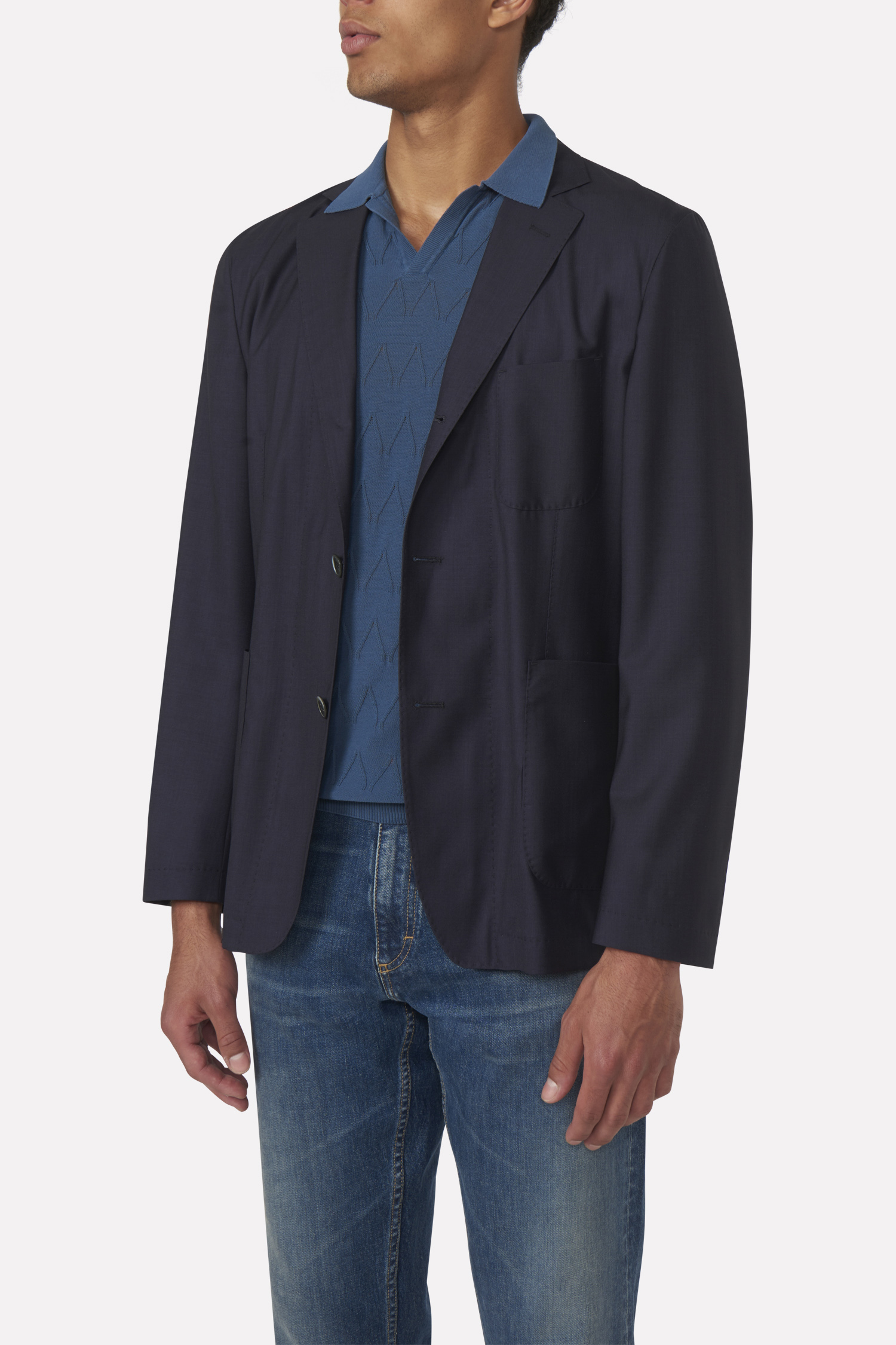 <div> Blazer med tre knapper i normal passform. Helt uformet med kun fôr i ermene. Minner om en cardigan, utstyrt med utvendige lommer presentert i en blanding av ull og silke.</div>
