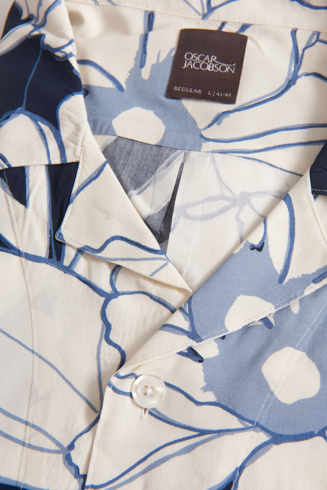 Kortermet skjorte i regular fit med bowlingkrage. Laget av mønstret viskose.