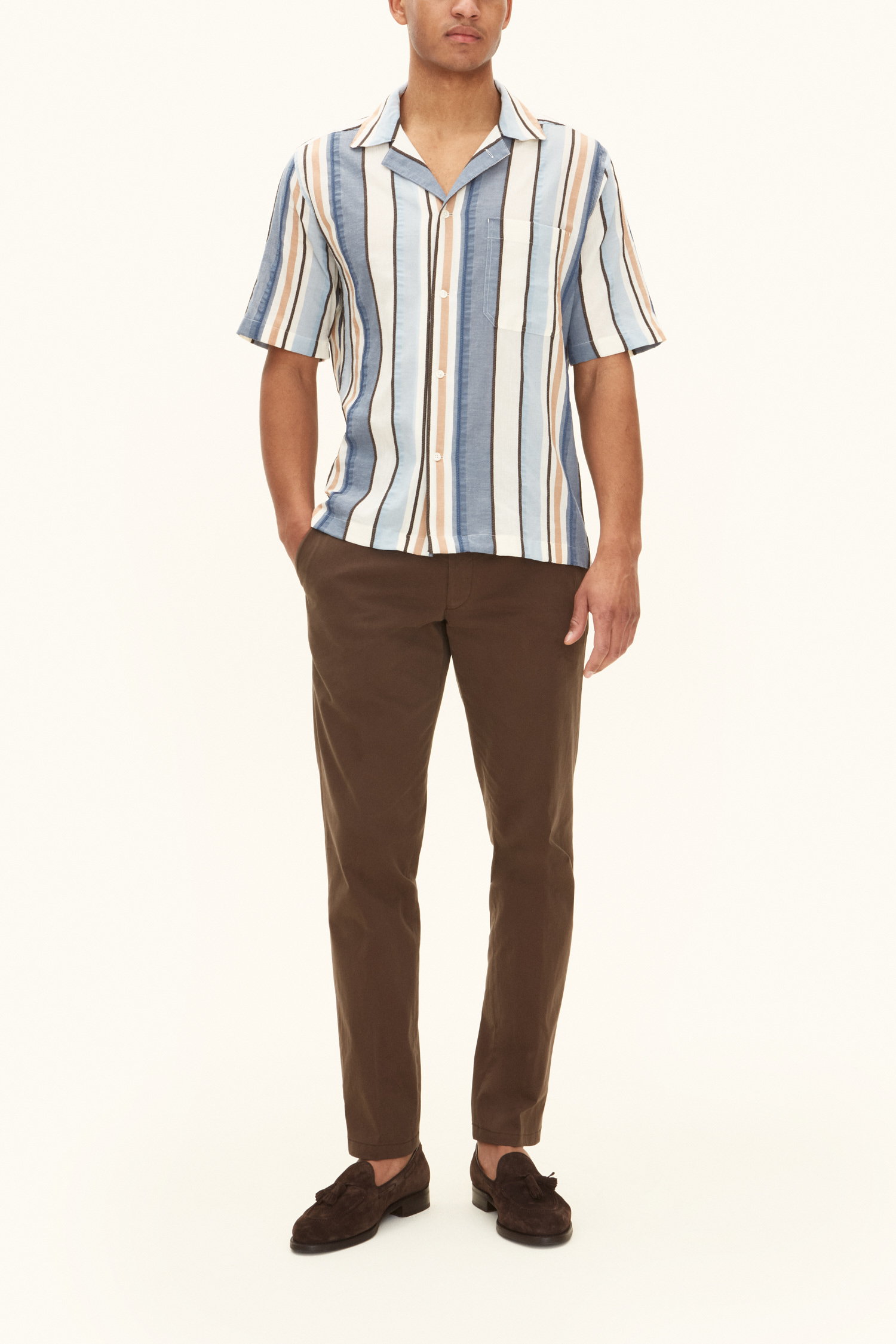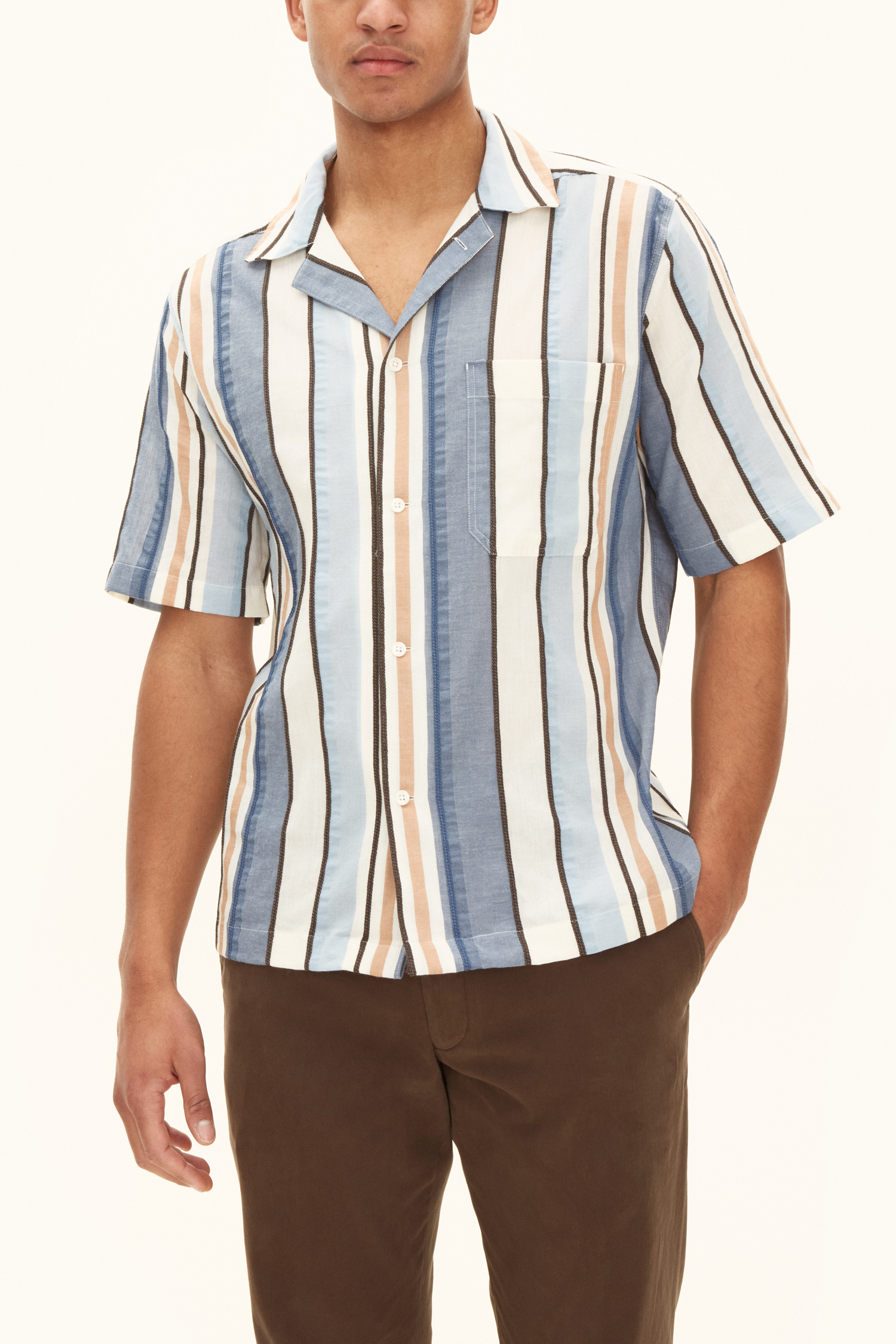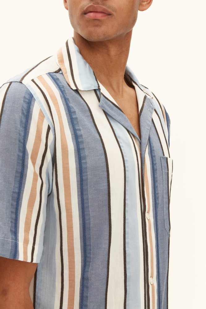 Stripete kortermet skjorte i regular fit med bowlingkrage. Laget av 100% bomull.