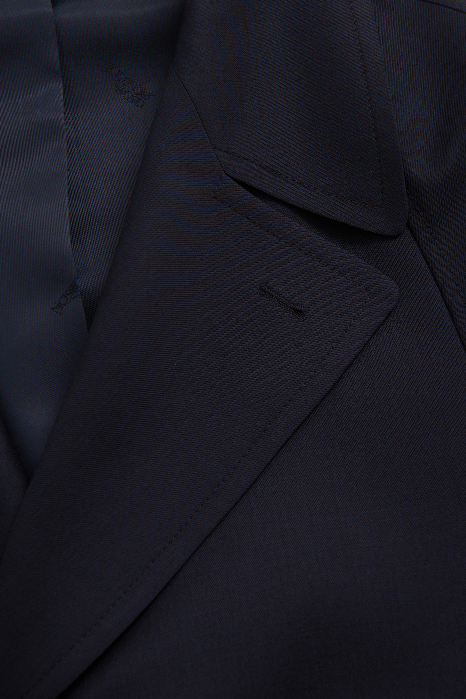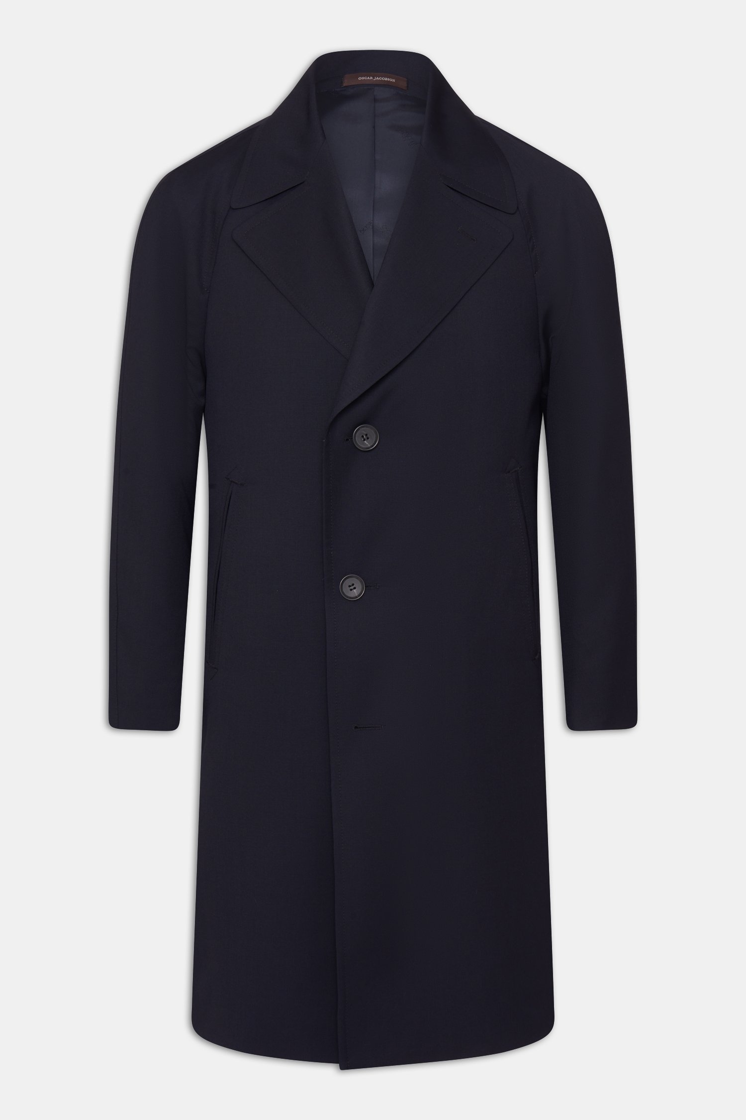Helfôret enkeltspent frakk med regular fit og brede slag. Utstyrt med sidelommer samt doble innerlommer. Laget av 100% ull.