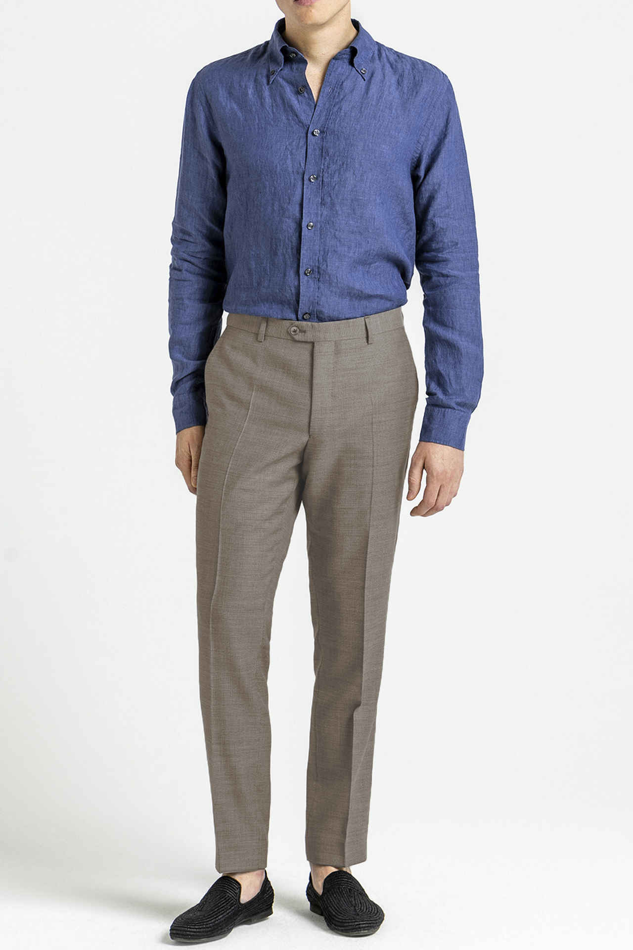 Denne modellen har en smal passform med normalt høyt liv. Teksturert sommerull fra Marzotto, vevd eksklusivt for Oscar Jacobson.