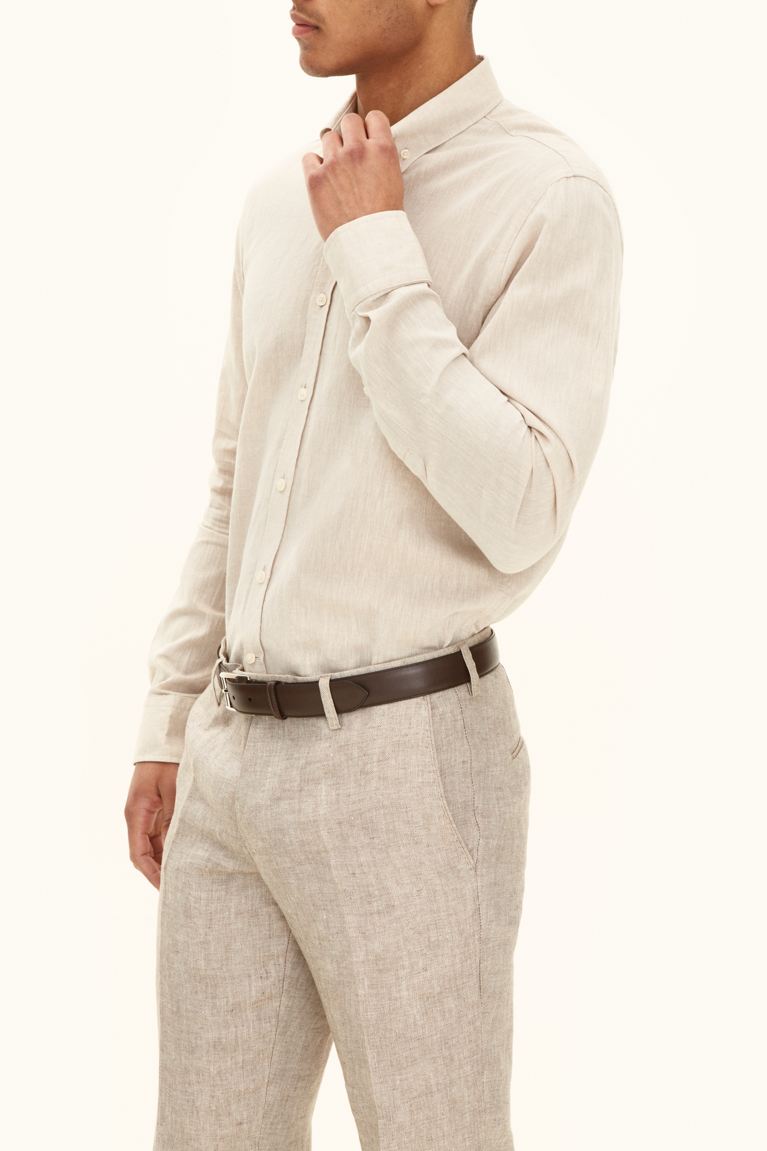 Cotton & linen shirt in slim fit with a casual button down collar and single cuff.