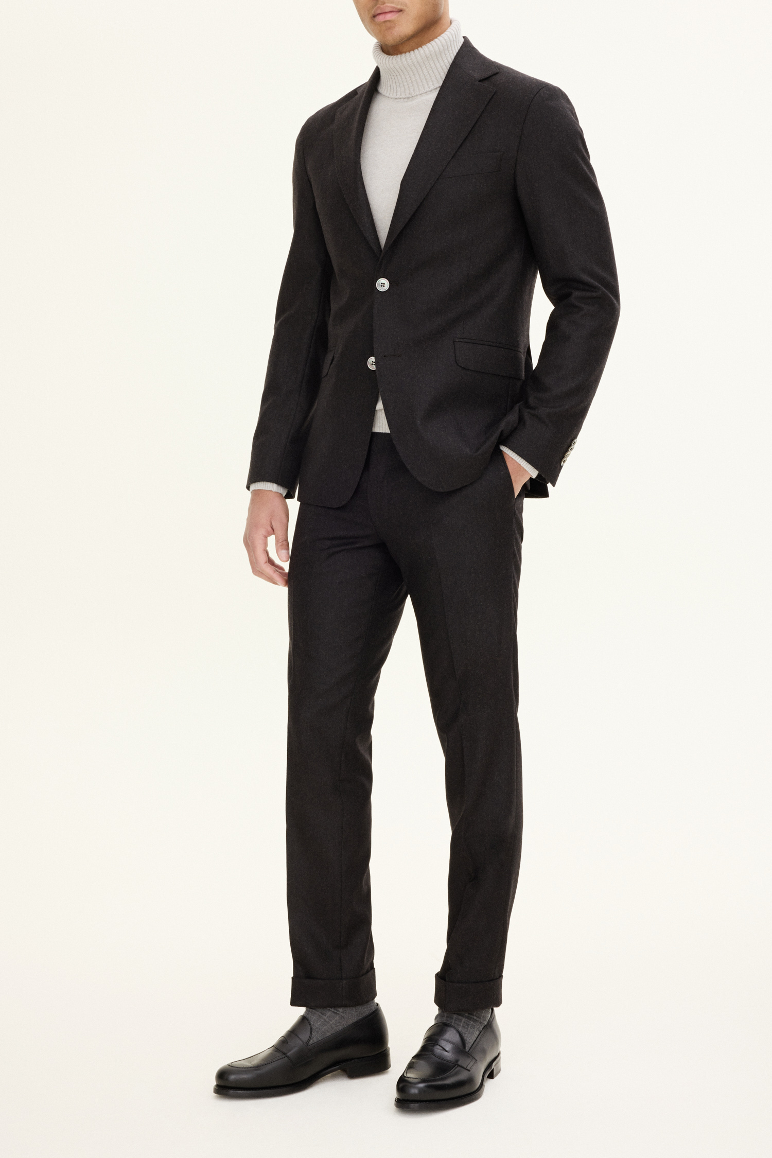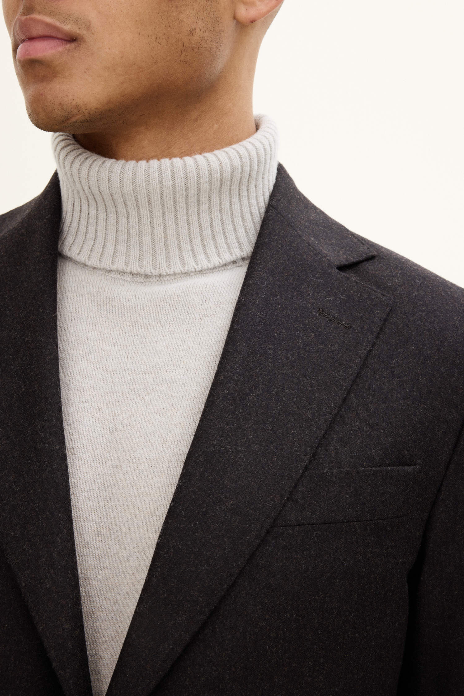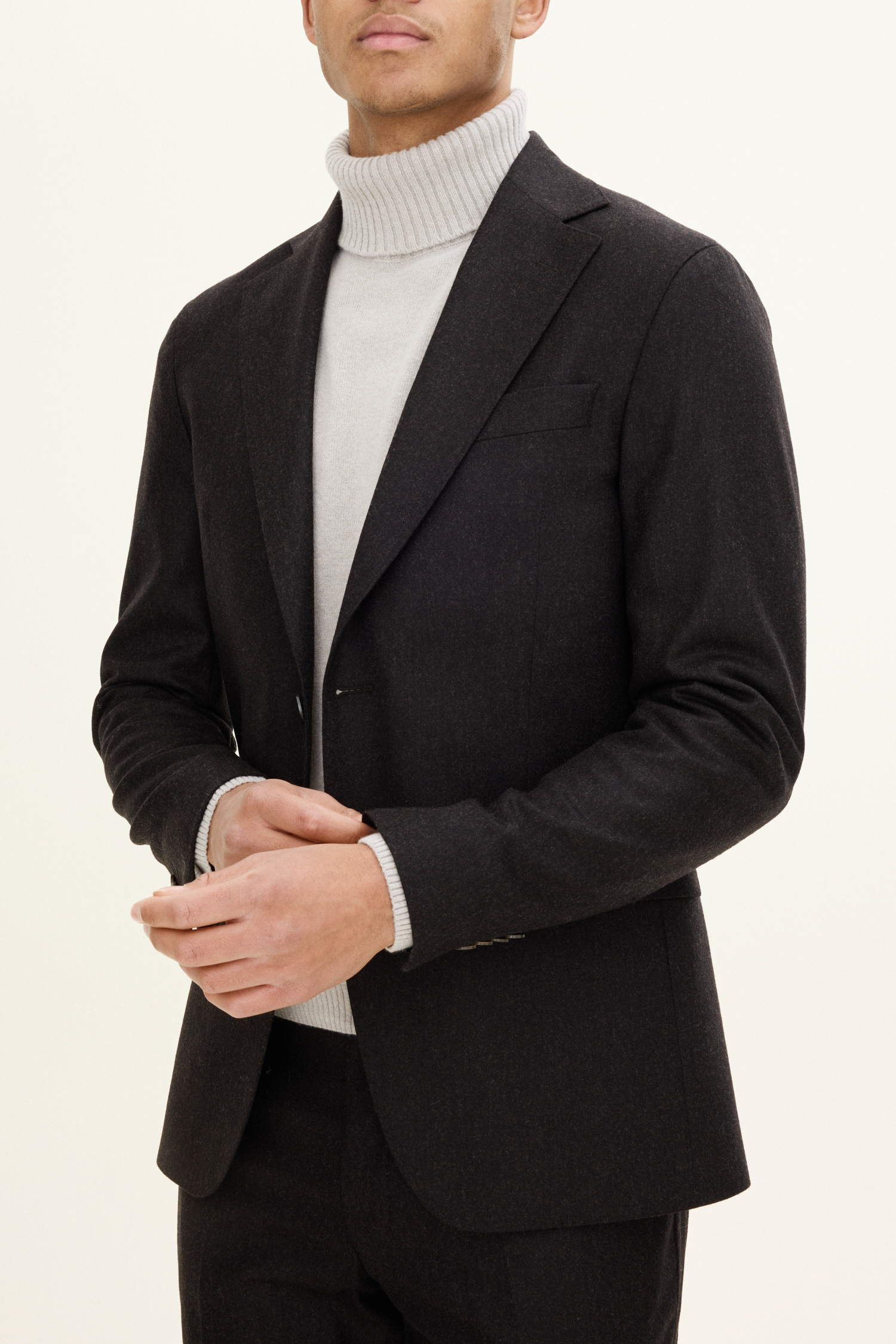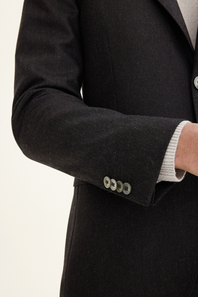 Helfôret blazer med ekstra myke skuldre og brede jakkeslag. Italiensk flanell av ull som gir en naturlig varme og høy pusteevne