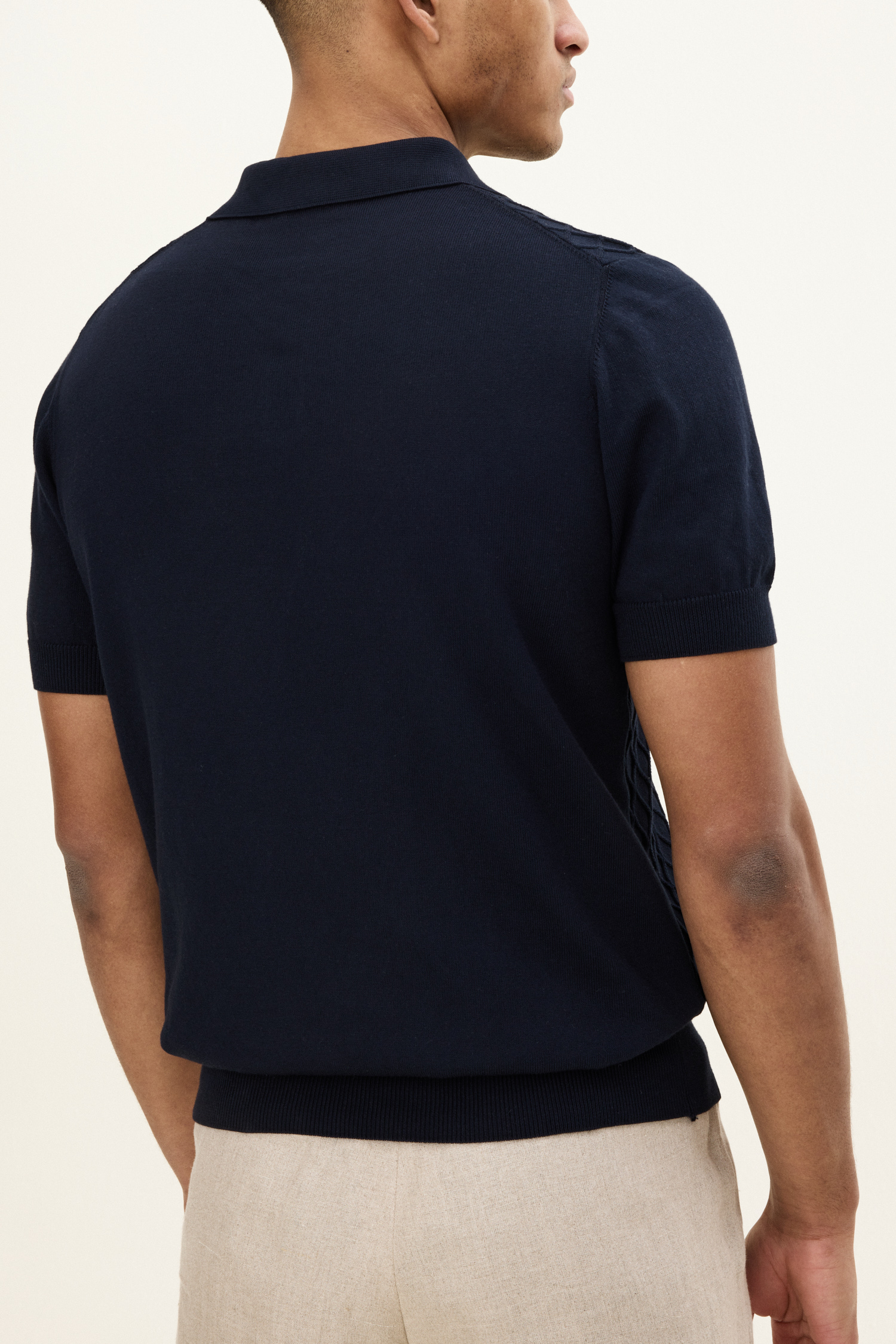 Vår poloskjorte Mirza er en slim fit, kortermet poloskjorte med en vanlig krage. Den er laget av 100% bomull og har en strikket struktur.