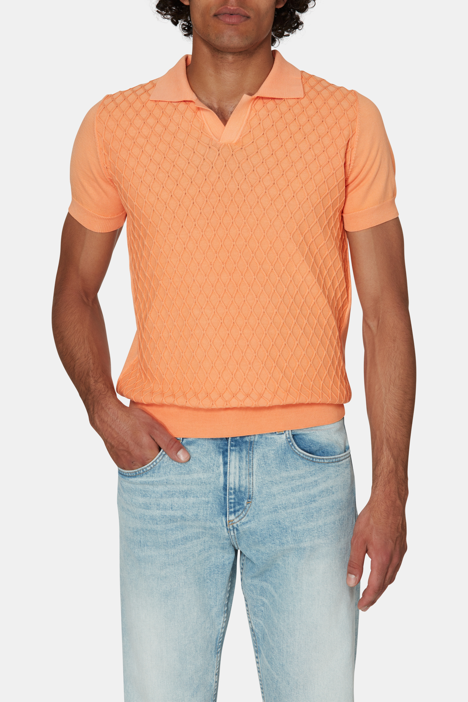 Vår poloskjorte Mirza er en slim fit, kortermet poloskjorte med en vanlig krage. Den er laget av 100% bomull og har en strikket struktur.