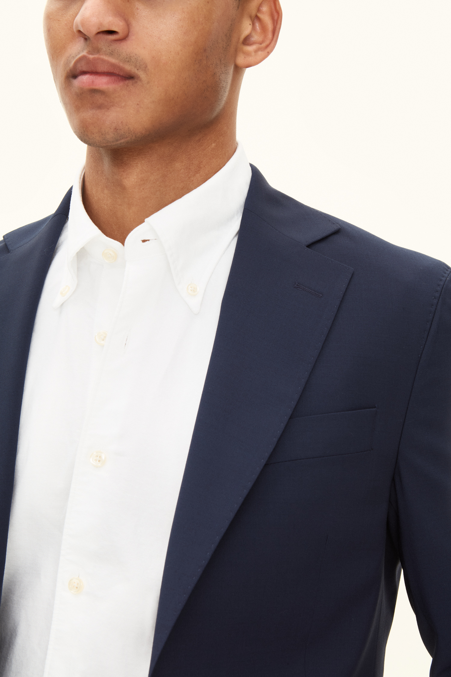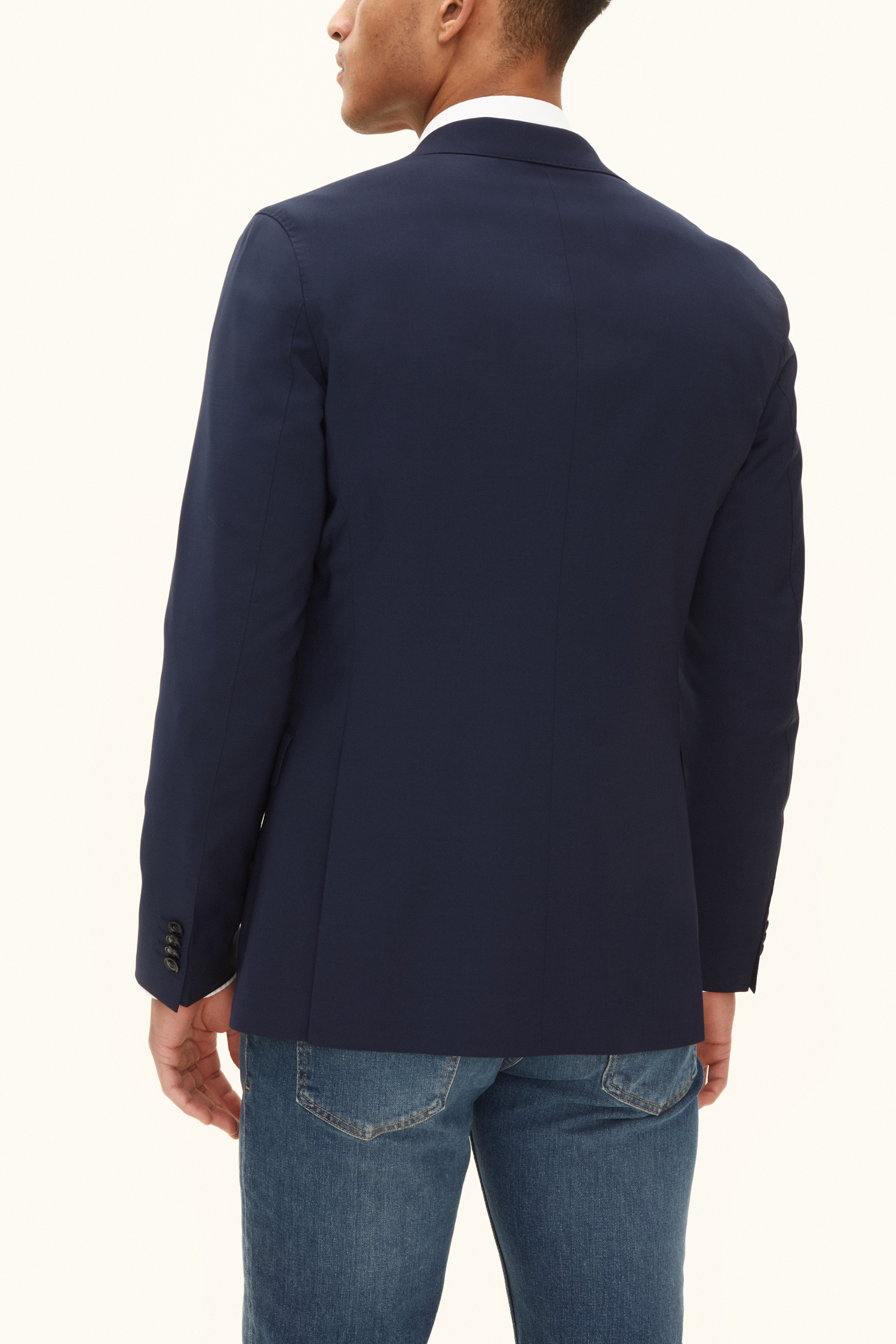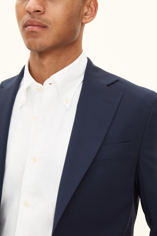 Klassisk blazer med en smal passform som passer like godt til bryllup og konfirmasjonsfeiringer som til kontoret. Stoffet er en glatt og slitesterk ullstretch som egner seg godt til hverdagen.