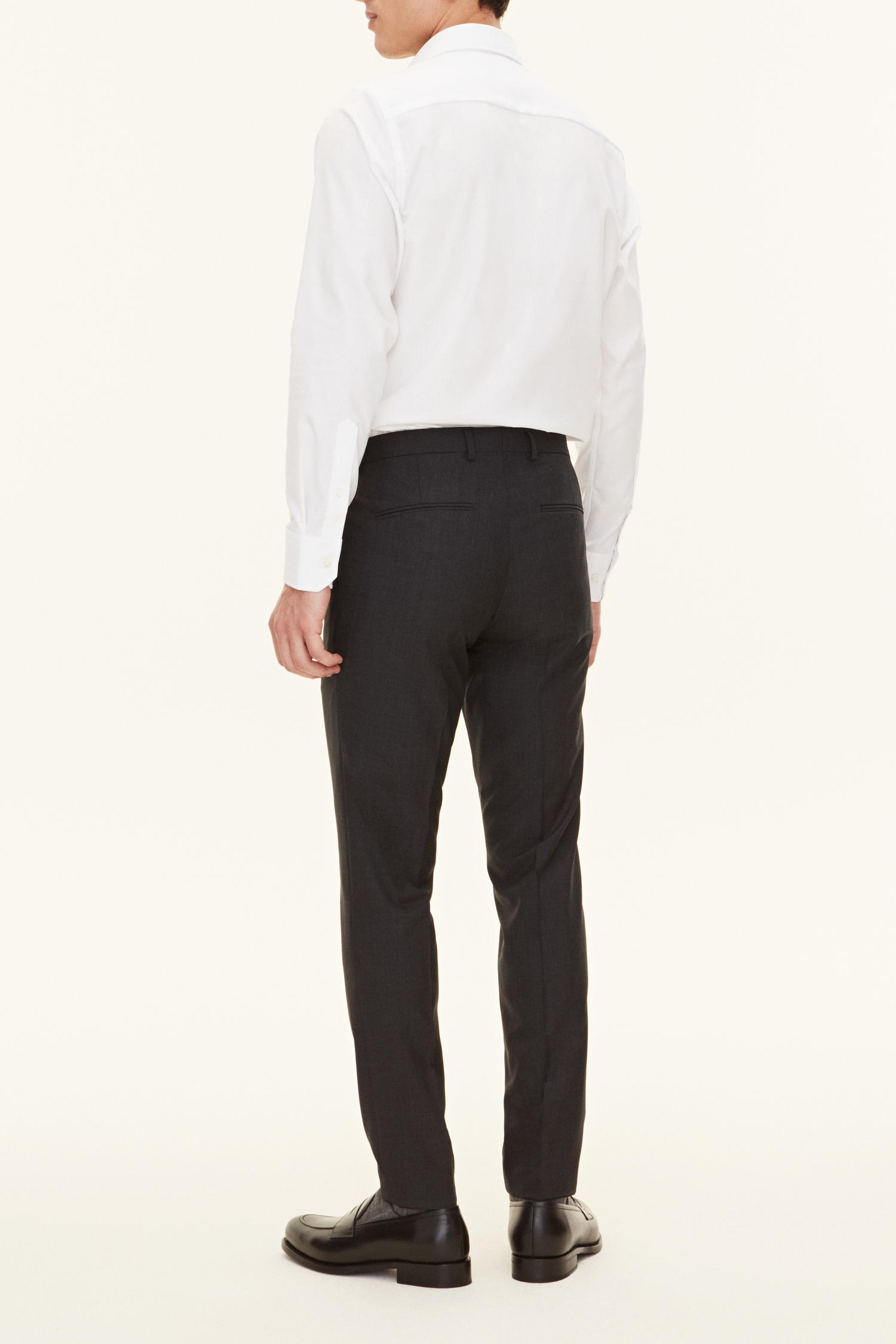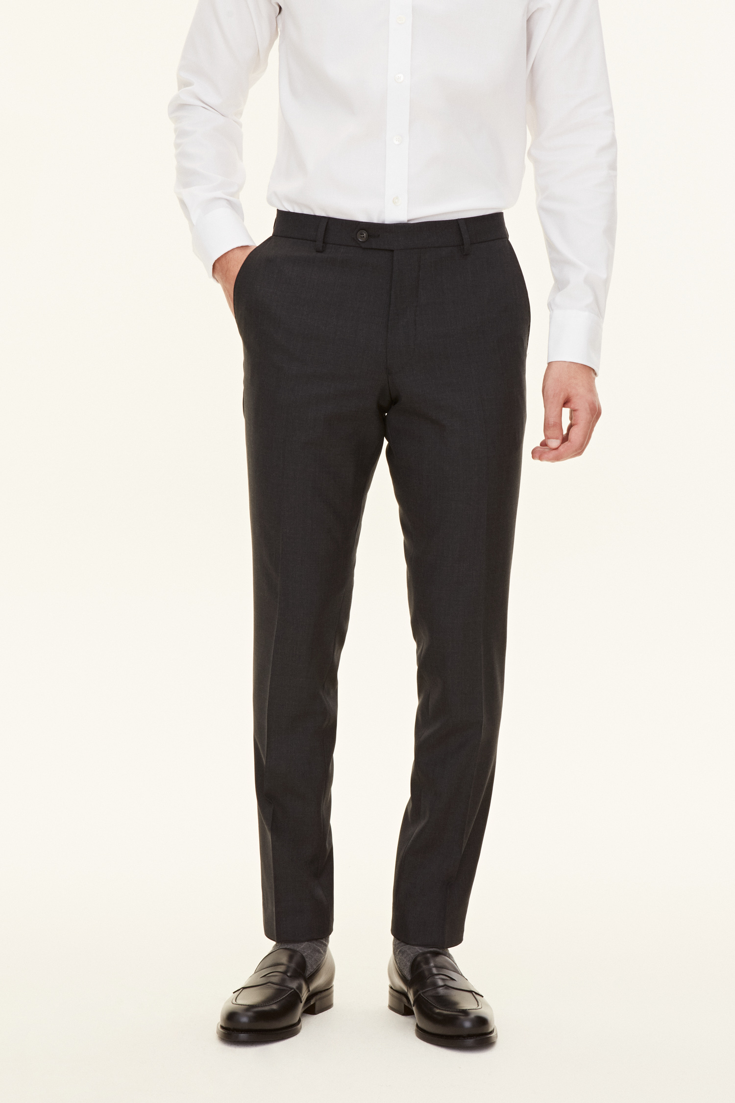 Klassisk dressbukse i slitesterk super 120’s ull. Denne modellen har en smalere passform og en klassisk bukselengde som så vidt berører buksen, og bidrar til et elegant kutt.