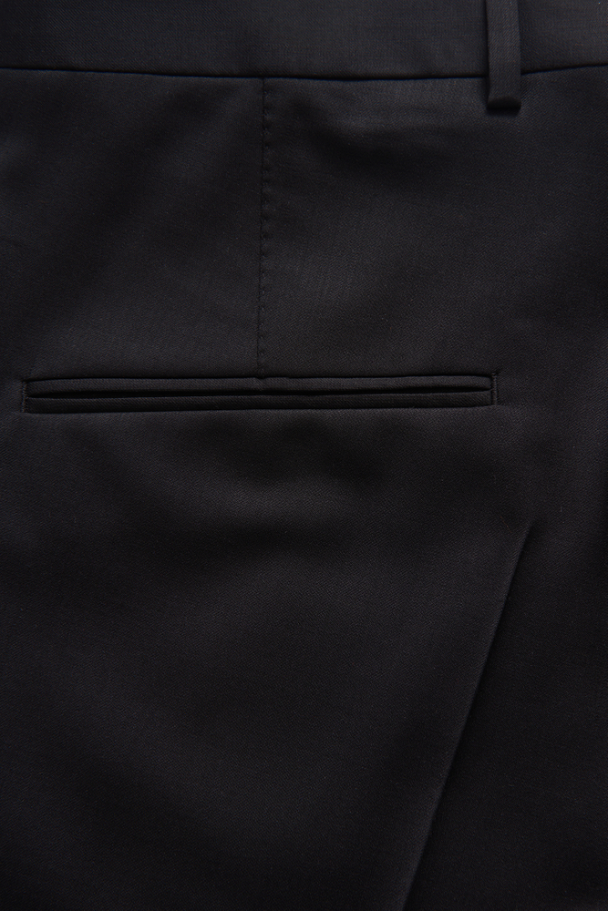 Modellen har en smal passform og litt kortere benlengde. Stoffet er en slitesterk ullstretch som egner seg godt til daglig bruk. Et par perfekte dressbukser for en stilig look.