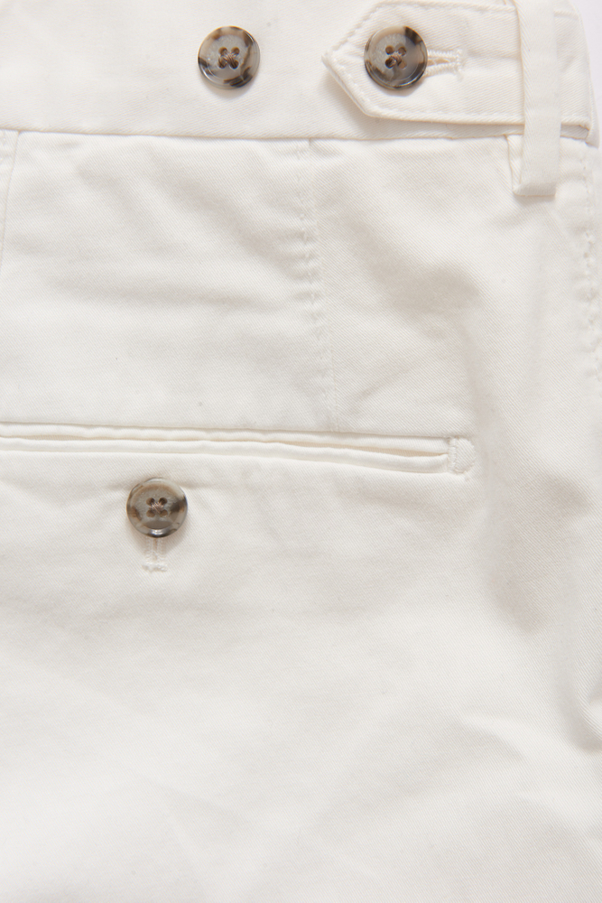 En oppdatert versjon av de klassiske chinos-buksene. Denne modellen er slim fit, har normalt høyt liv og en benlengde der buksene slutter rett over skoen og har et naturlig fall. Livet er utstyrt med sidejusteringer – en stilig detalj som også kan brukes til å gjøre midjemålet på buksen noen cm mindre.