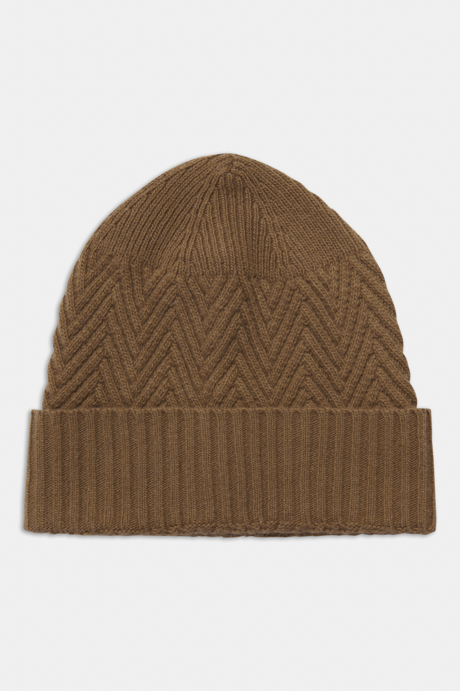 Lue med fiskebeinsstruktur i kasjmir- og ullblanding.