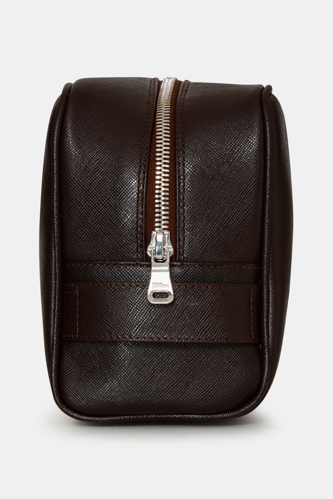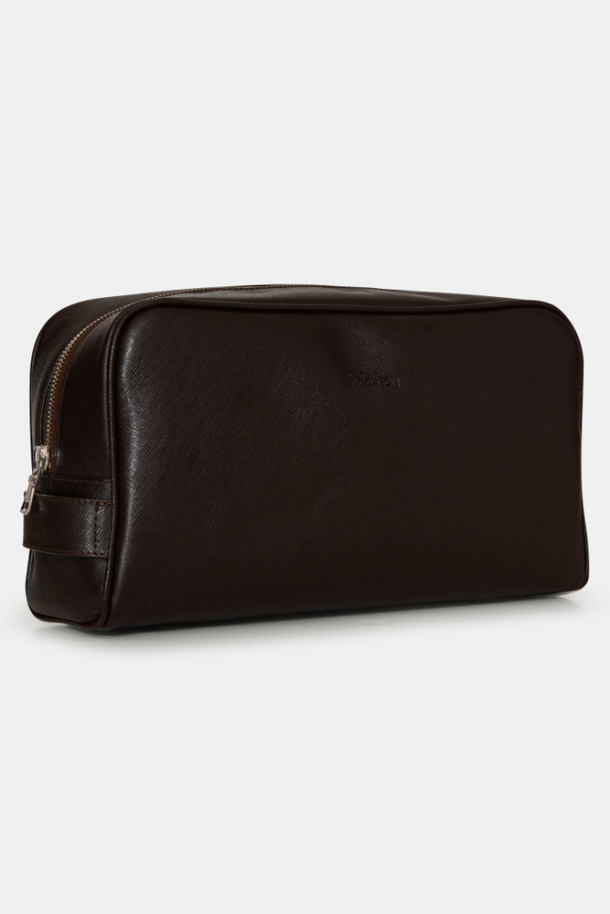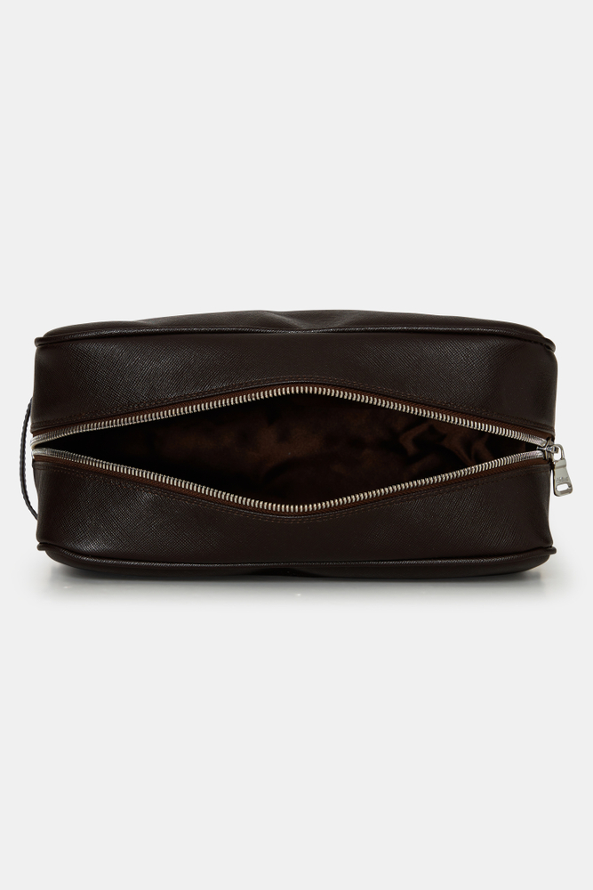 Håndlaget toalettmappe i Saffiano-lær, laget i Almansa-regionen i Spania hvor de har en lang tradisjon med lærhåndverk. Toalettmappen har en innerlomme med glidelås og et håndtak på utsiden for å feste den til våre større vesker. Mål: 25x14x9 cm