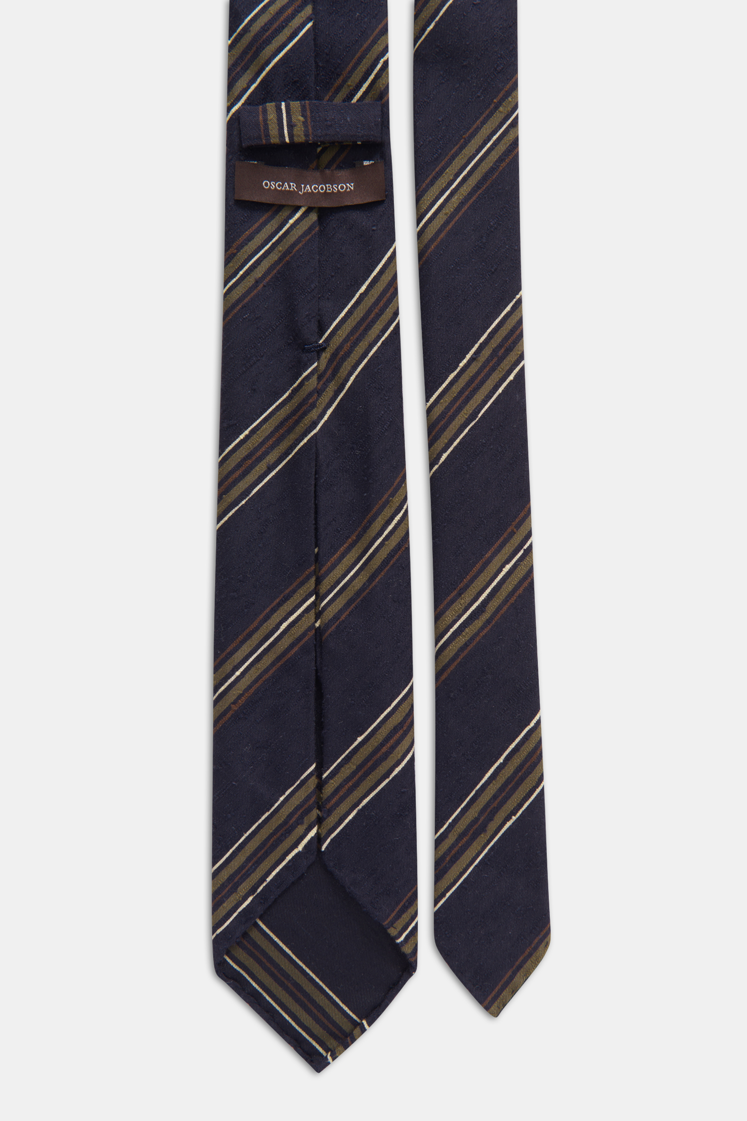 Randig slips gjord i 100% siden, tillverkad enigt traditionen seven fold och framtagen i samarbete med Gentlemanualen.