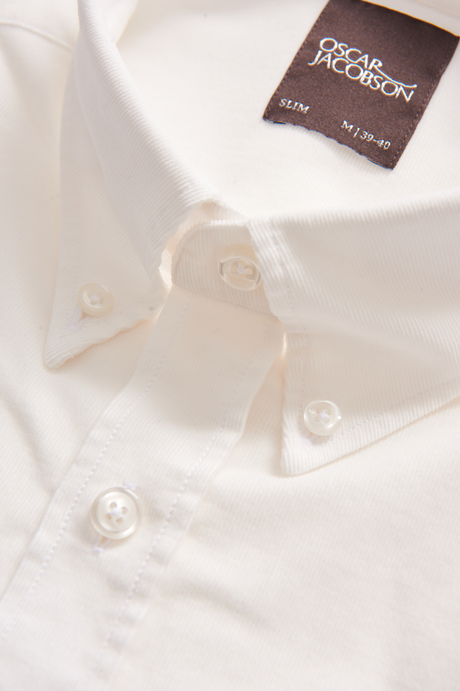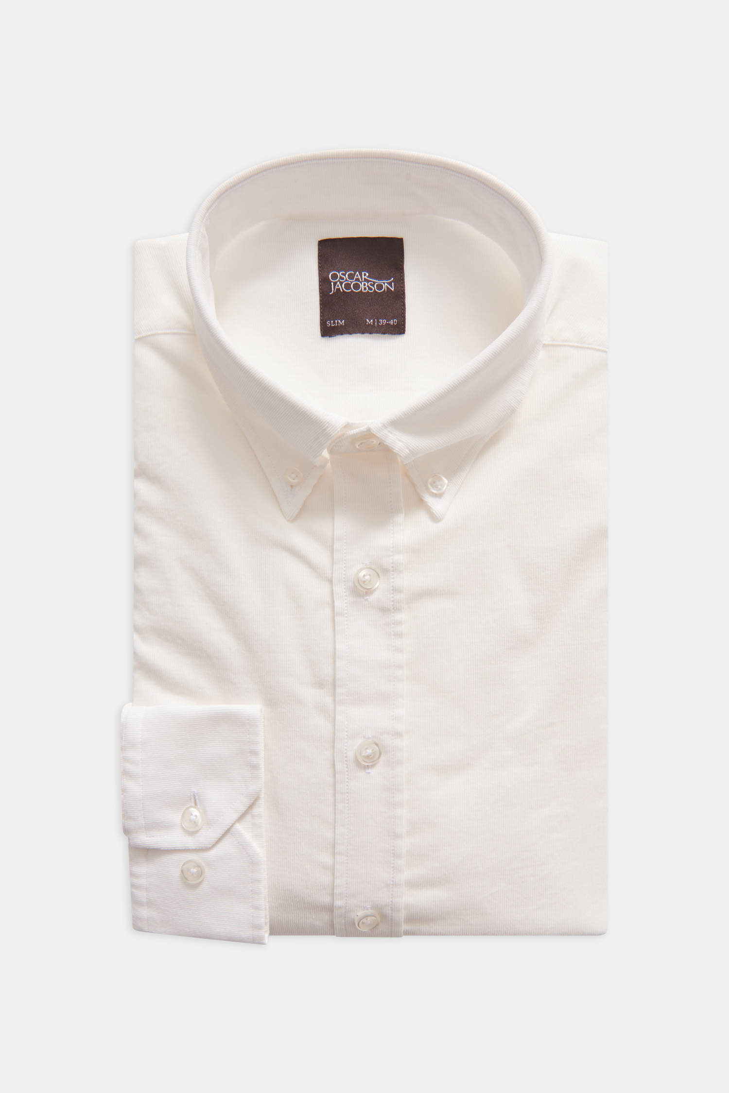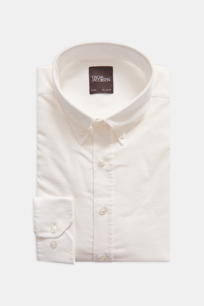 Smalspårig manchesterskjorta med button down-krage. Smal passform med enkel manschett i ärmslut.