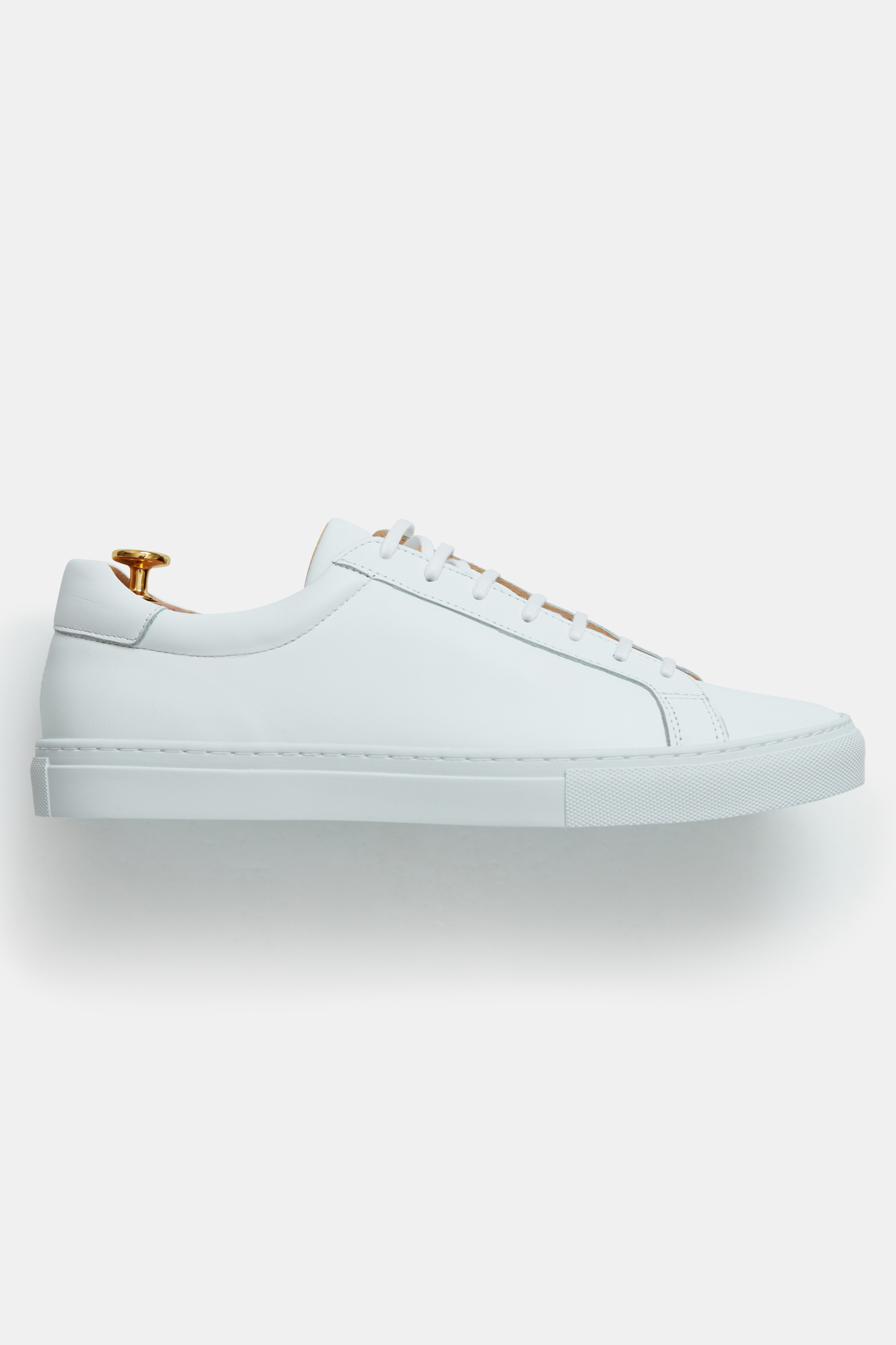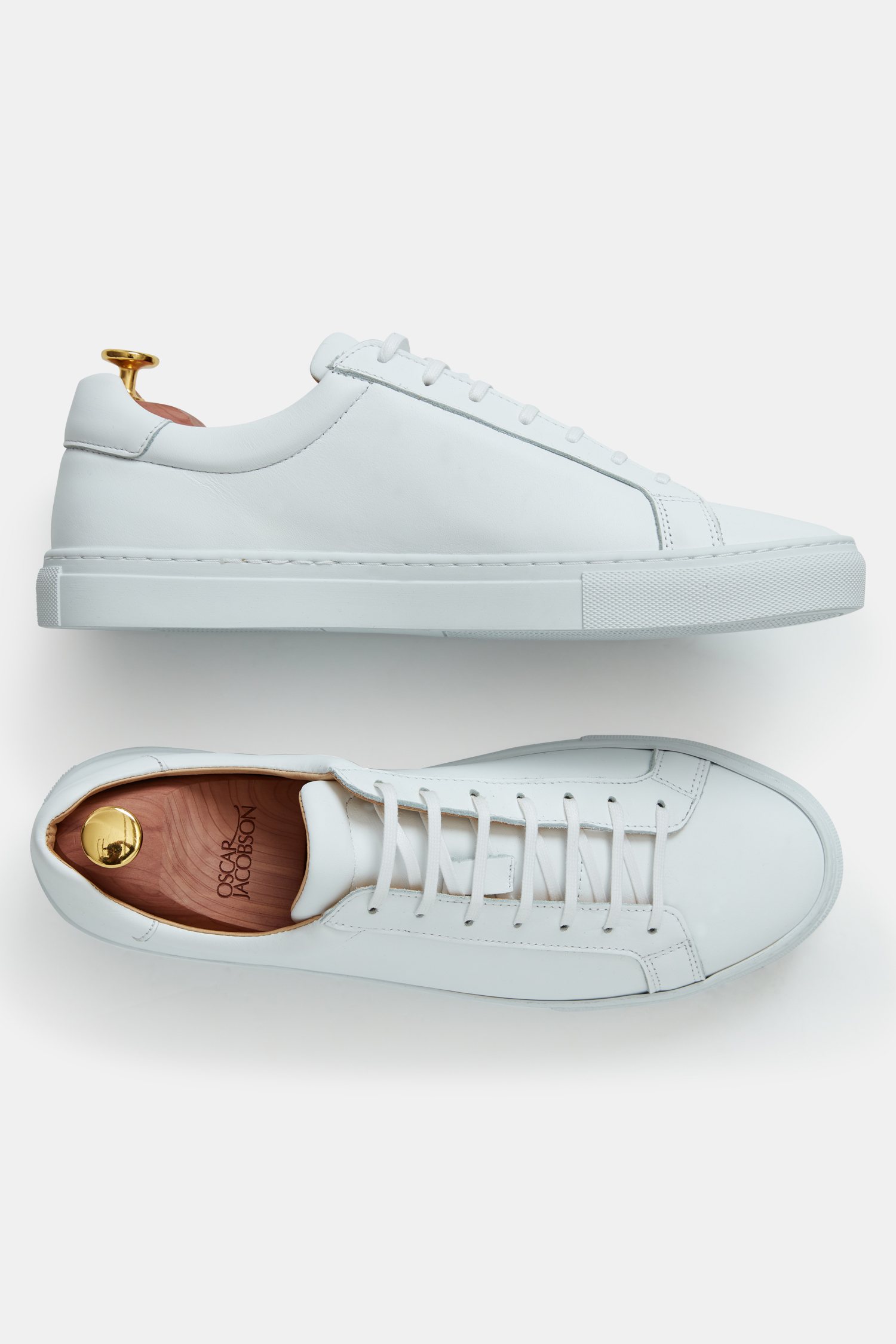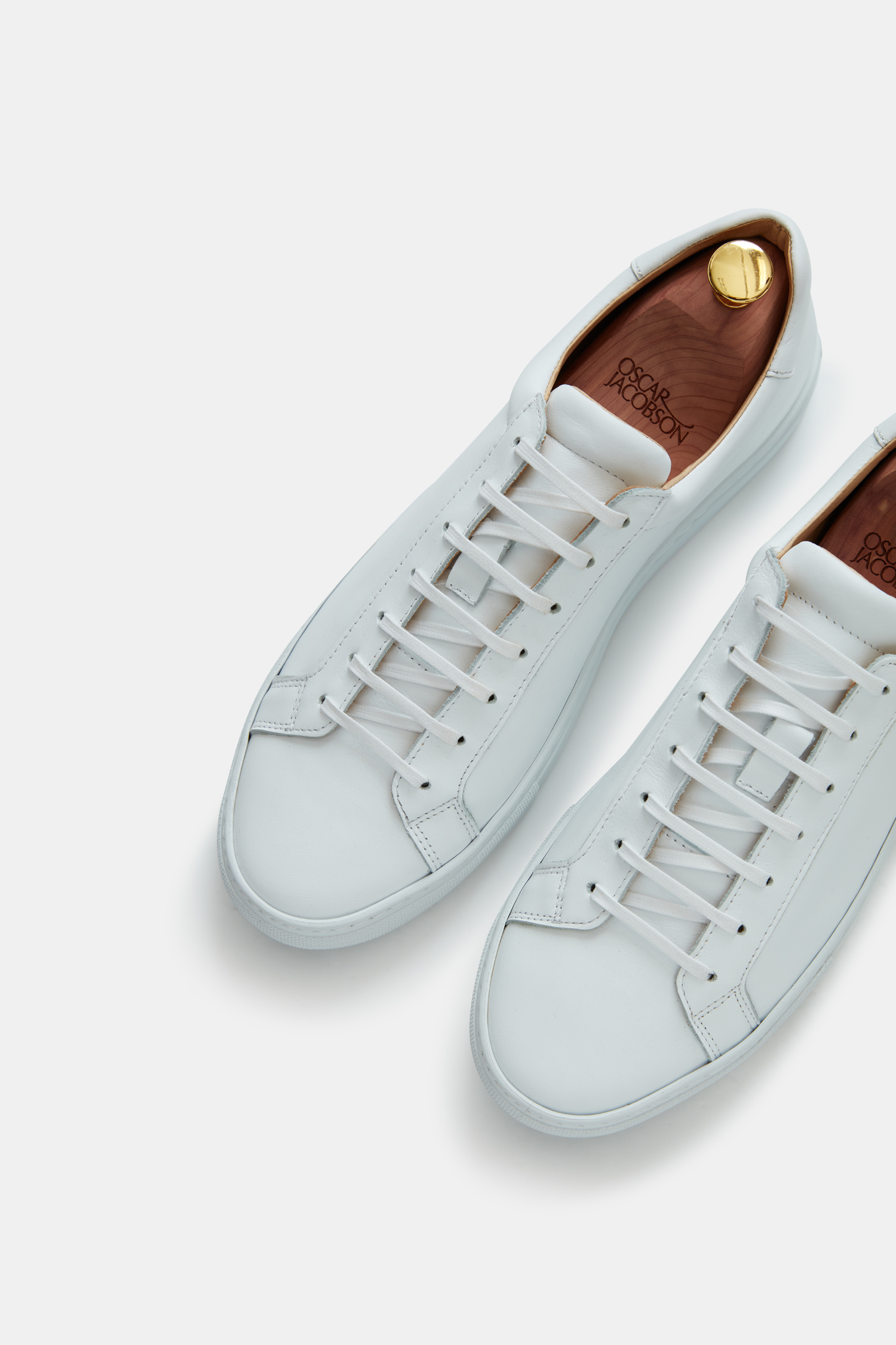 Eleganta sneakers i ett Europeiskt box-kalvläder producerade i Portugal. Skorna är sydda med en mjukt dämpande innersula, ett innerfoder i naturfärgat läder och en yttersula i slitstarkt gummi.