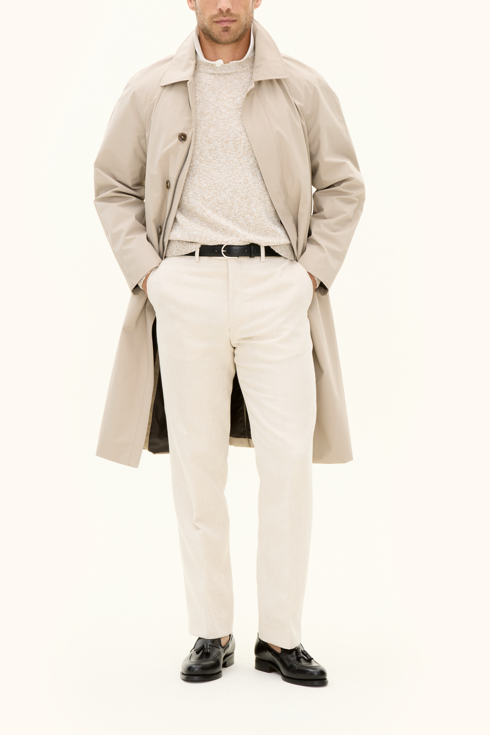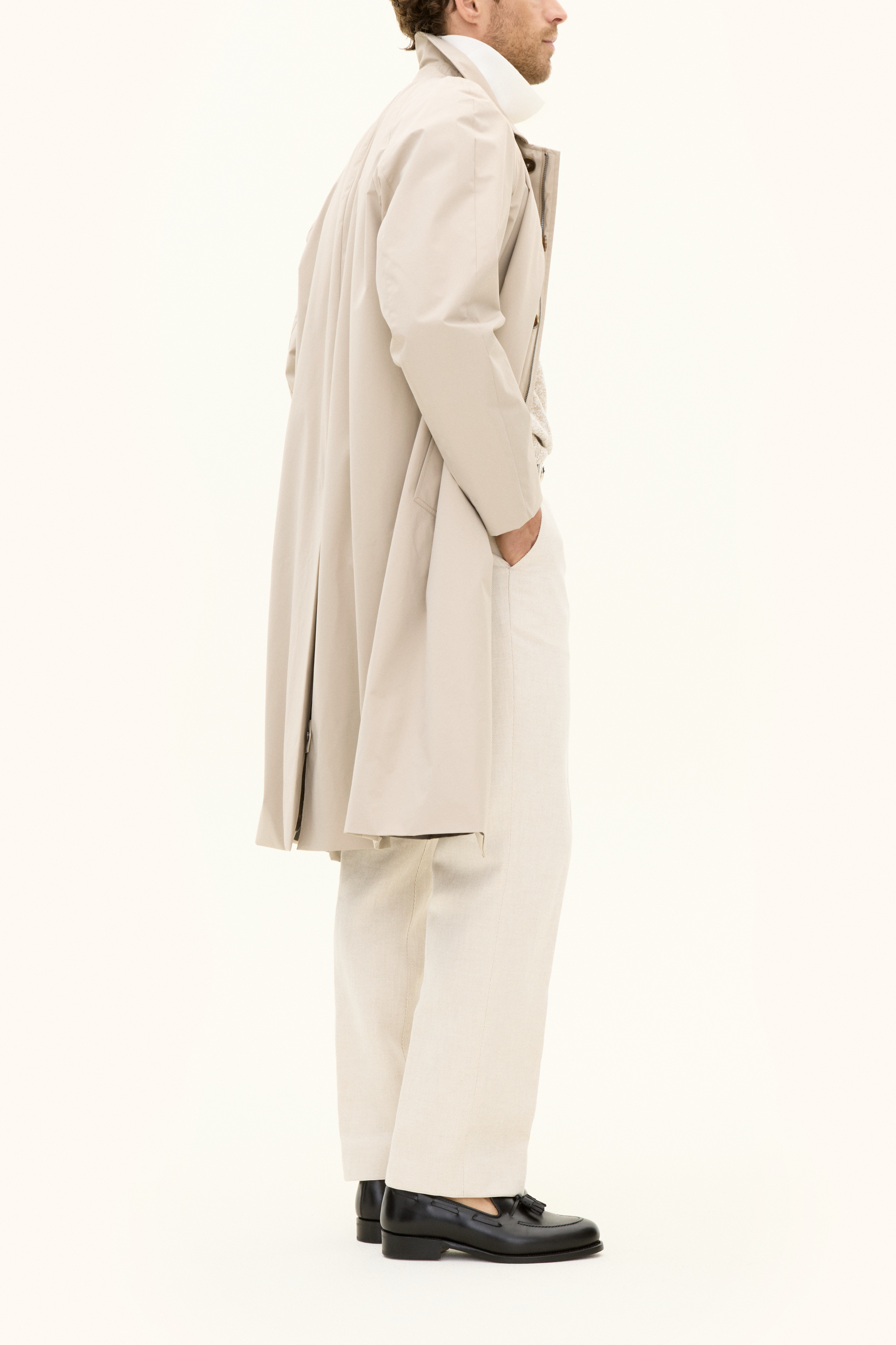 Vår klassiska Raglan Coat i Nylon Shell är designad för att vara ett heltäckande skalplagg till din vardag och fungerar till både formell kostym och lediga jeans. Utöver det vattenavvisande och vattentäta yttertyget så har rocken tejpade sömmar i axeln för att hålla dig torr i tuffare väderförhållanden. Insidan av rocken är täckt i ett slitstarkt ripstop-foder och innehåller tre innerfickor samt knappar till infästning av våra liner-västar. Rocken har en mjuk raglan axel och en tilltagen längd, med knäppt sprund, för att täcka dig ännu bättre emot vätan. Nylon Shell är vårt tre-lagers skalmaterial, framtaget för att skydda mot väder och vind helt utan att kompromissa på rörlighet, andningsförmåga eller stil.