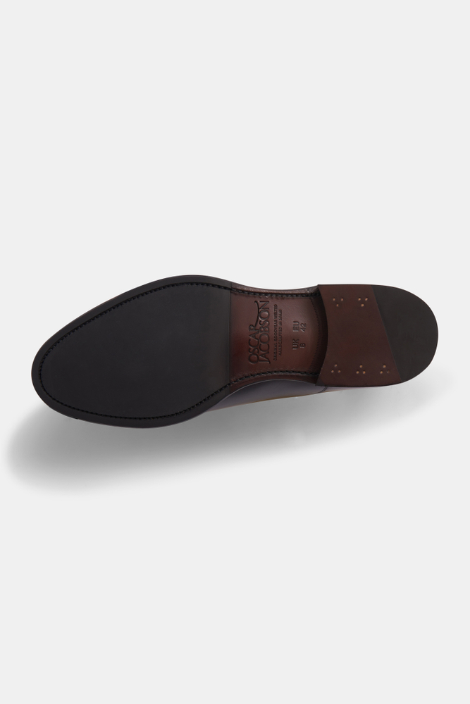 Goodyear-randsydda Oxfordskor i ett mjukt boxkalvläder som anpassar sig till fotens form. Tillverkade för hand i Spanien. Vegetabiliskt garvad Lädersula med en applicerad slitsula i gummi för längre hållbarhet och bättre grepp. Mjukt dämpande Innersula i memory foam som formar sig efter foten. Konstruktionen möjliggör framtida omsulning för att du ska kunna ha skorna långsiktigt.