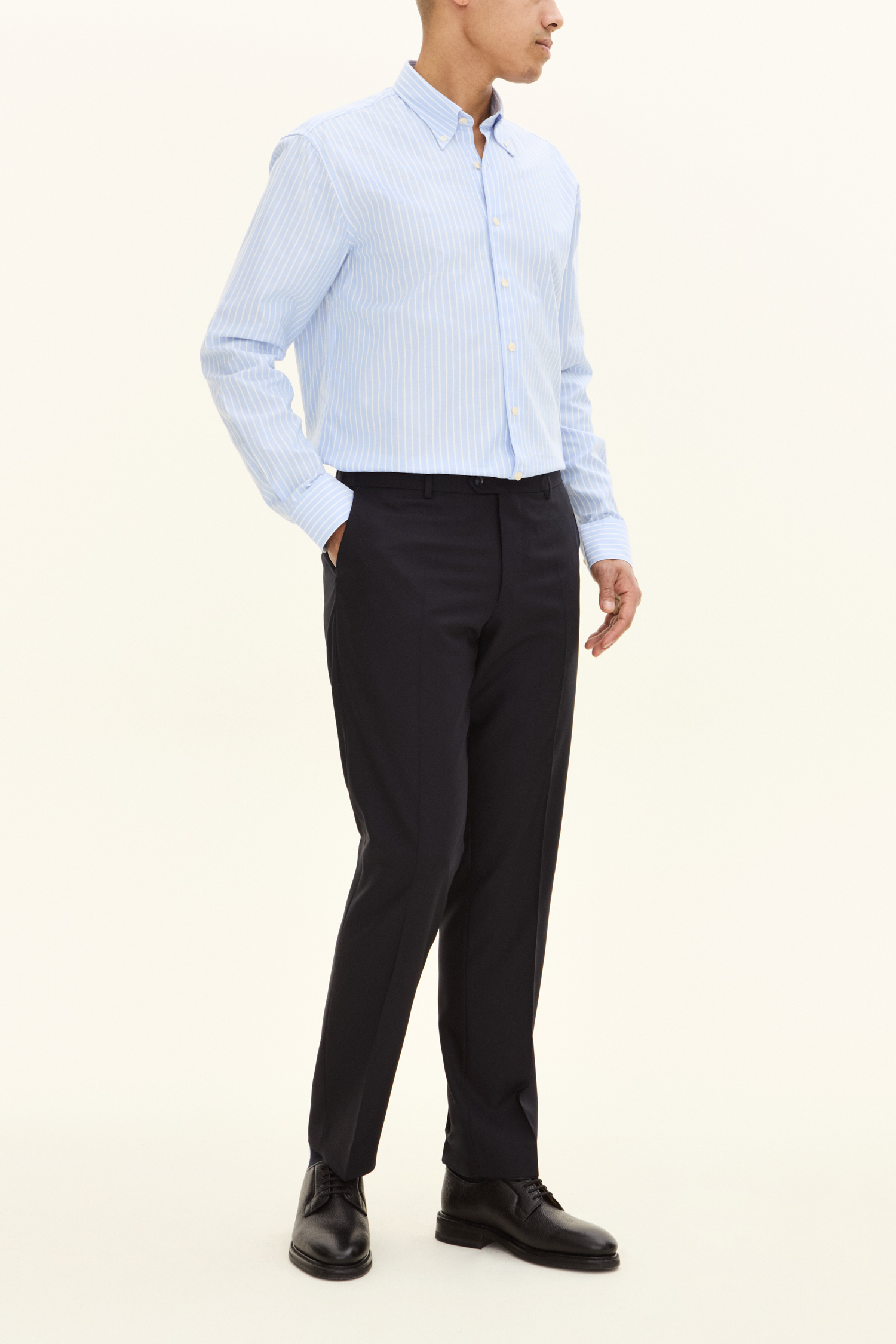 Randig oxfordskjorta i regular passform. Tillverkad i 100% bomull med elegant struktur och button down-krage som gör sig perfekt i både formella som sociala tillfällen. En skjorta alla bör ha i sin basgarderob som står sig lika bra instoppad som oinstoppad.