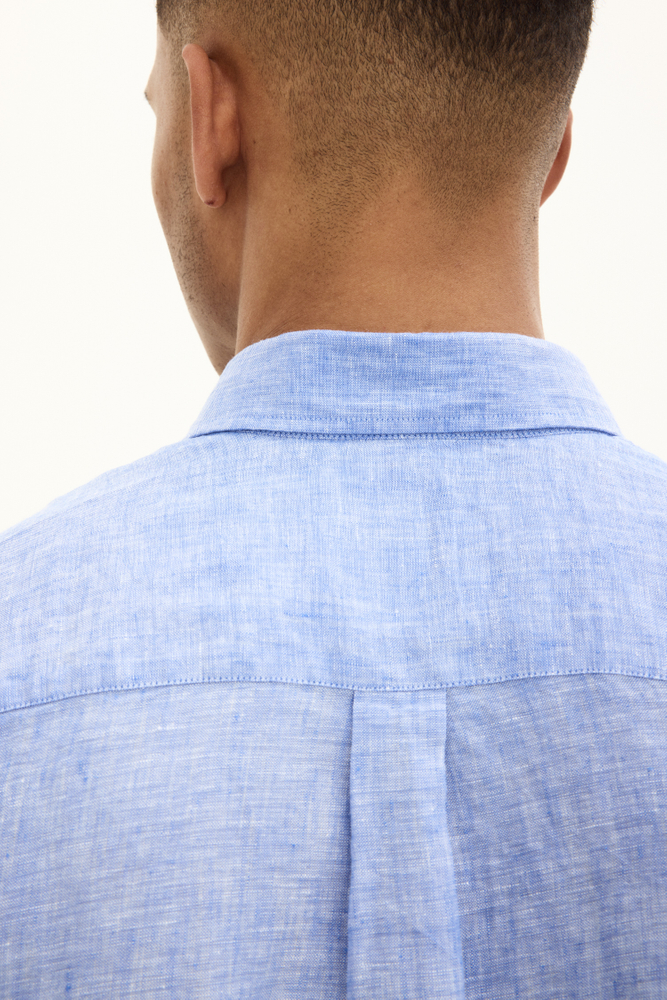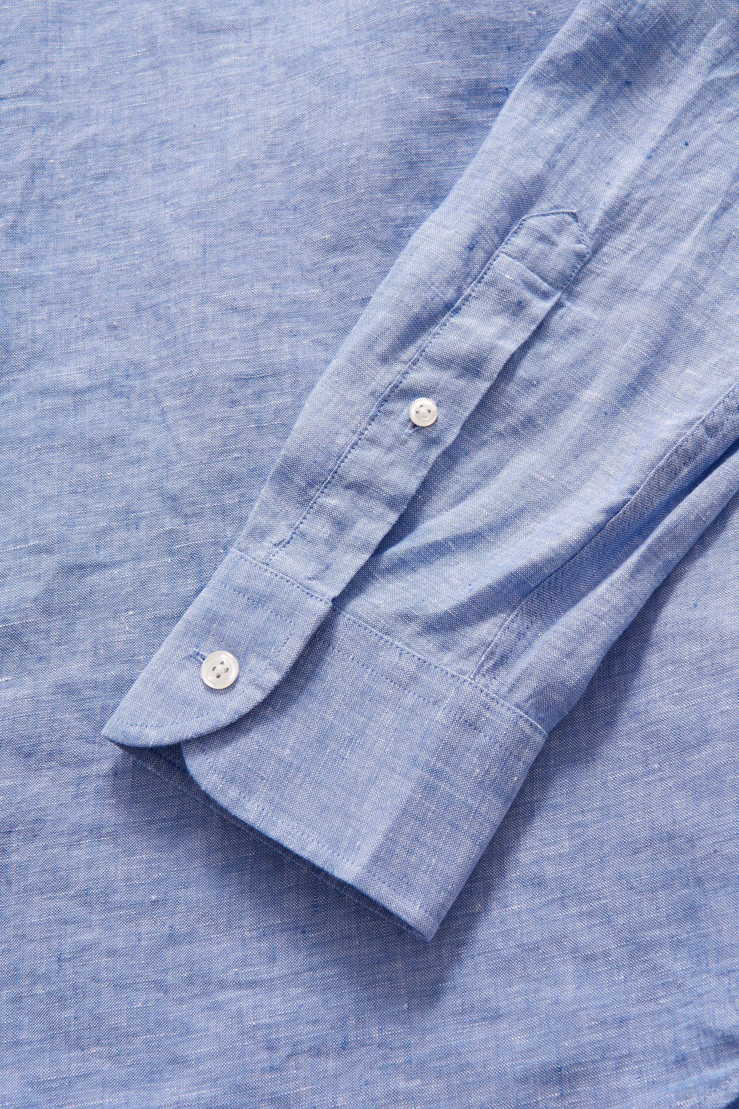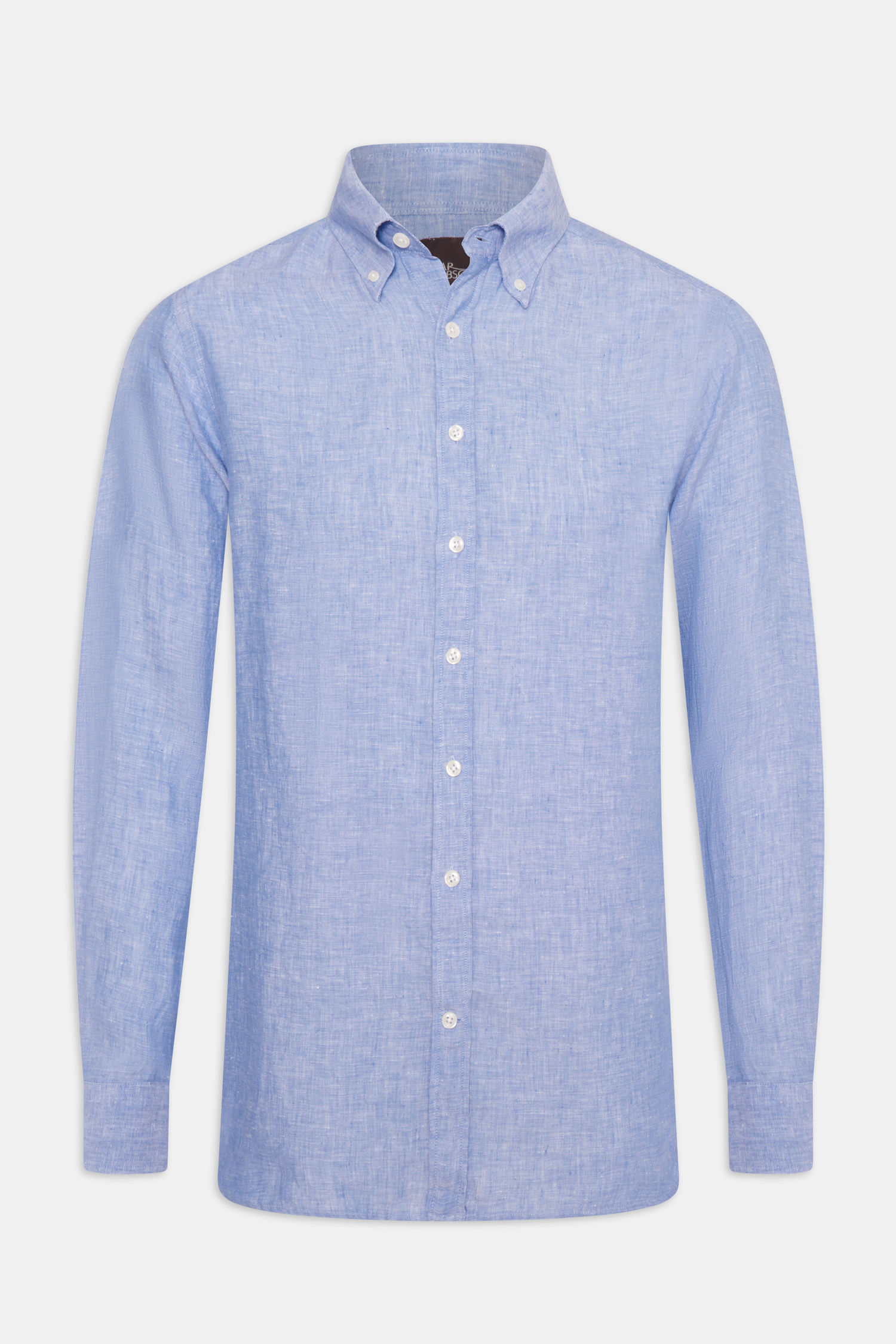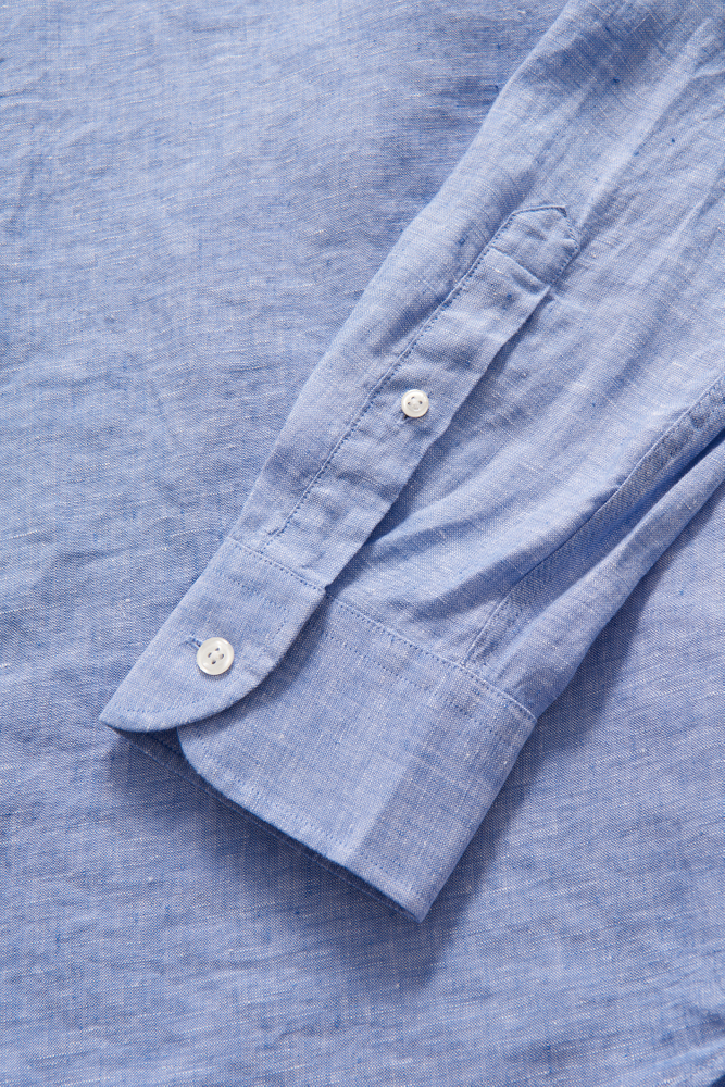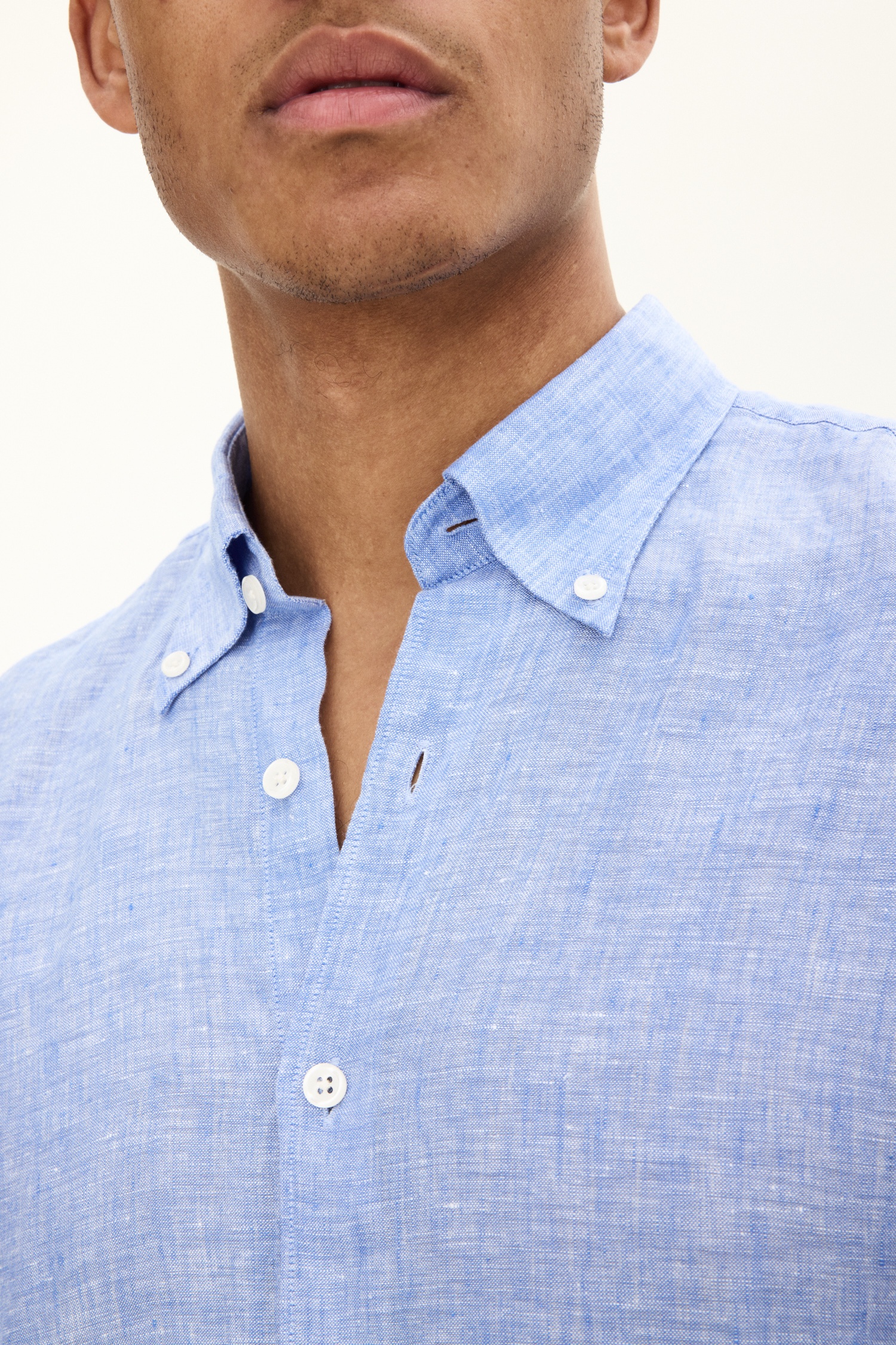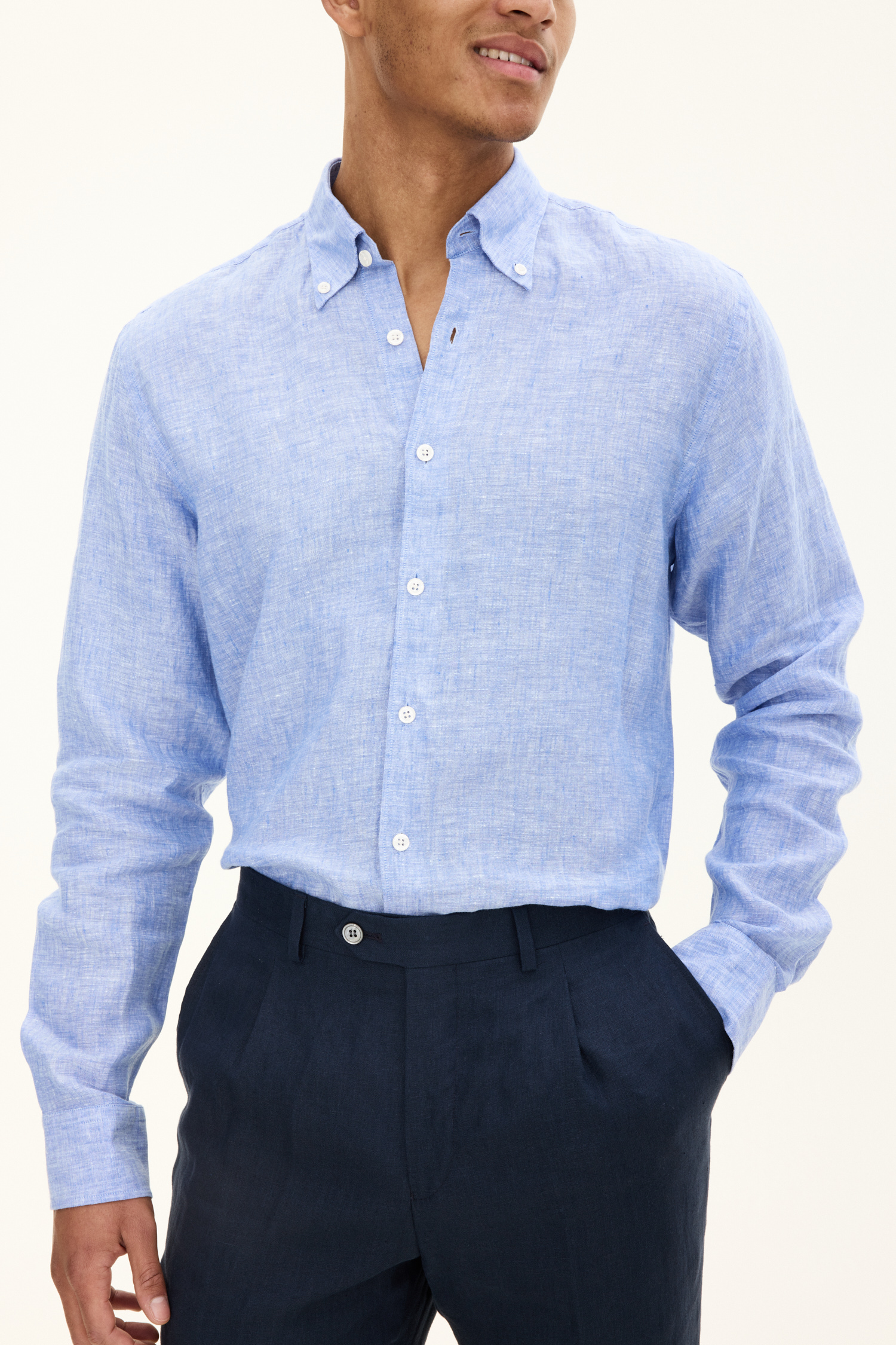 Linneskjorta i regular fit med en ledigare button down krage och enkel manschett.