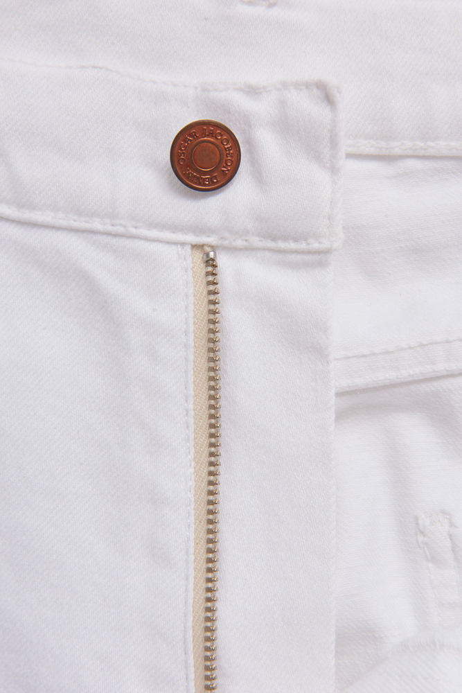 Passformen är löst sittande, rakt ben med normal till hög midja. Gjord på denim med stretch från Candiani i Italien, som är vävd på gamla, begagnade vävstolar från Levis med knappar och nitar från Italien och Borås. Jeansen är gjorda på 100% hållbart odlad bomull.