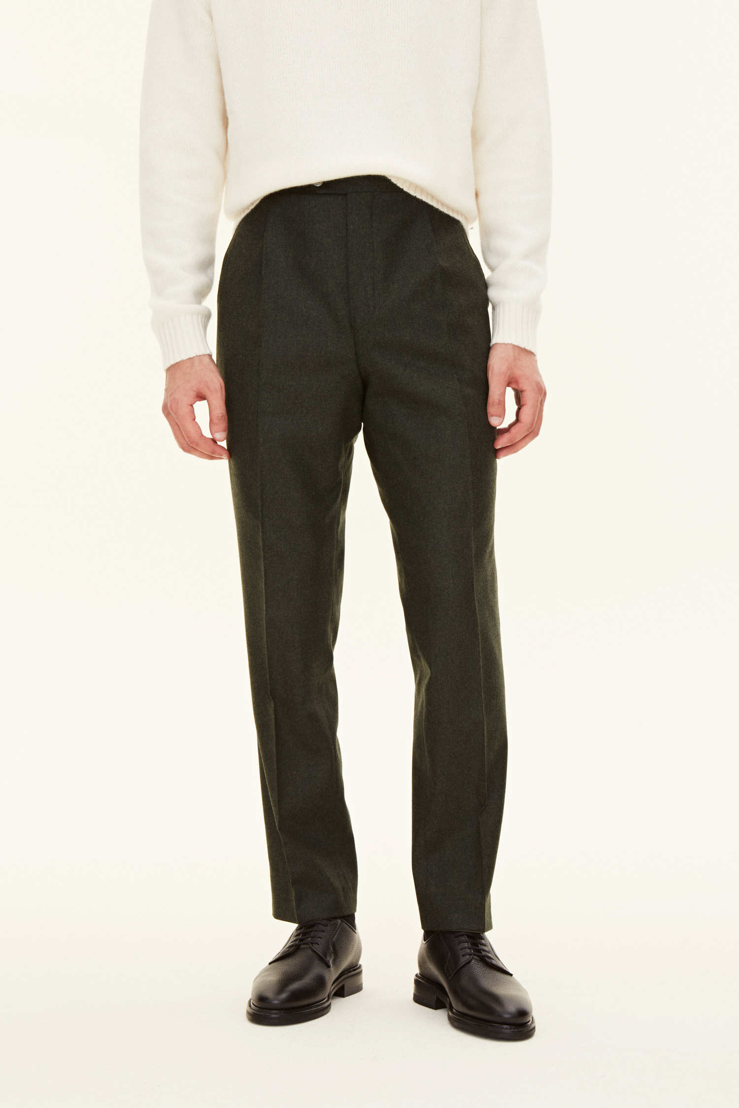 Regular fit byxor tillverkade av 100% ull. Perfekt för både formella och avslappnade tillfällen.