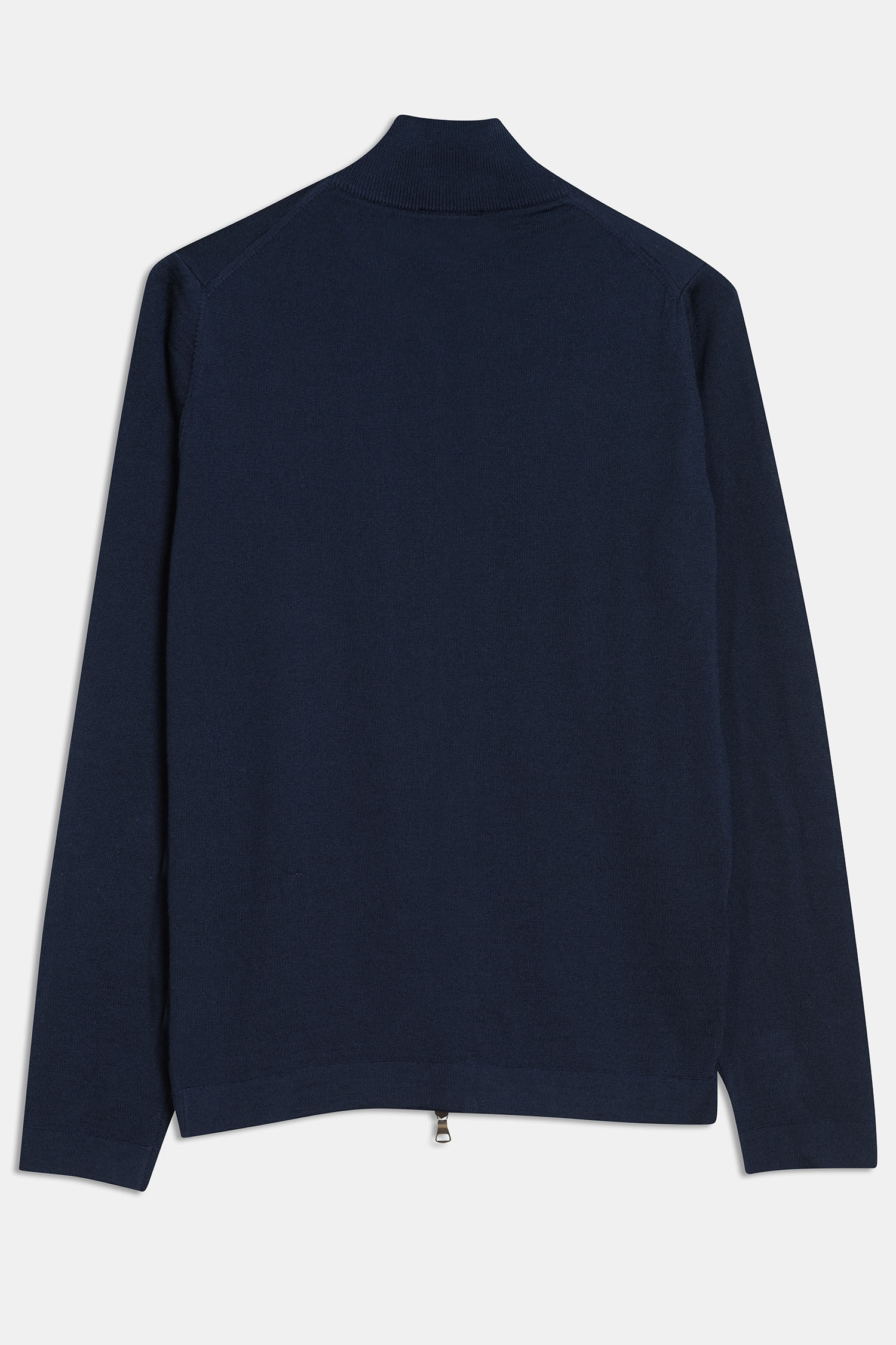 Den perfekta lager-på-lagertröjan! Den här modellen har en elegant tvåvägsdragkedja som kan öppnas från båda håll. Den tunt stickade merinoullen från den världsledande garnproducenten Zegna Baruffa är värmande men har samtidigt god andningsförmåga. Bär den som sportig polotröja eller elegant mellanlager under kavajen.