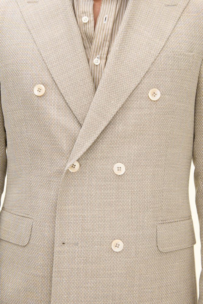 Regular Fit Dubbelknäppt Kavaj i Ull och Silke
