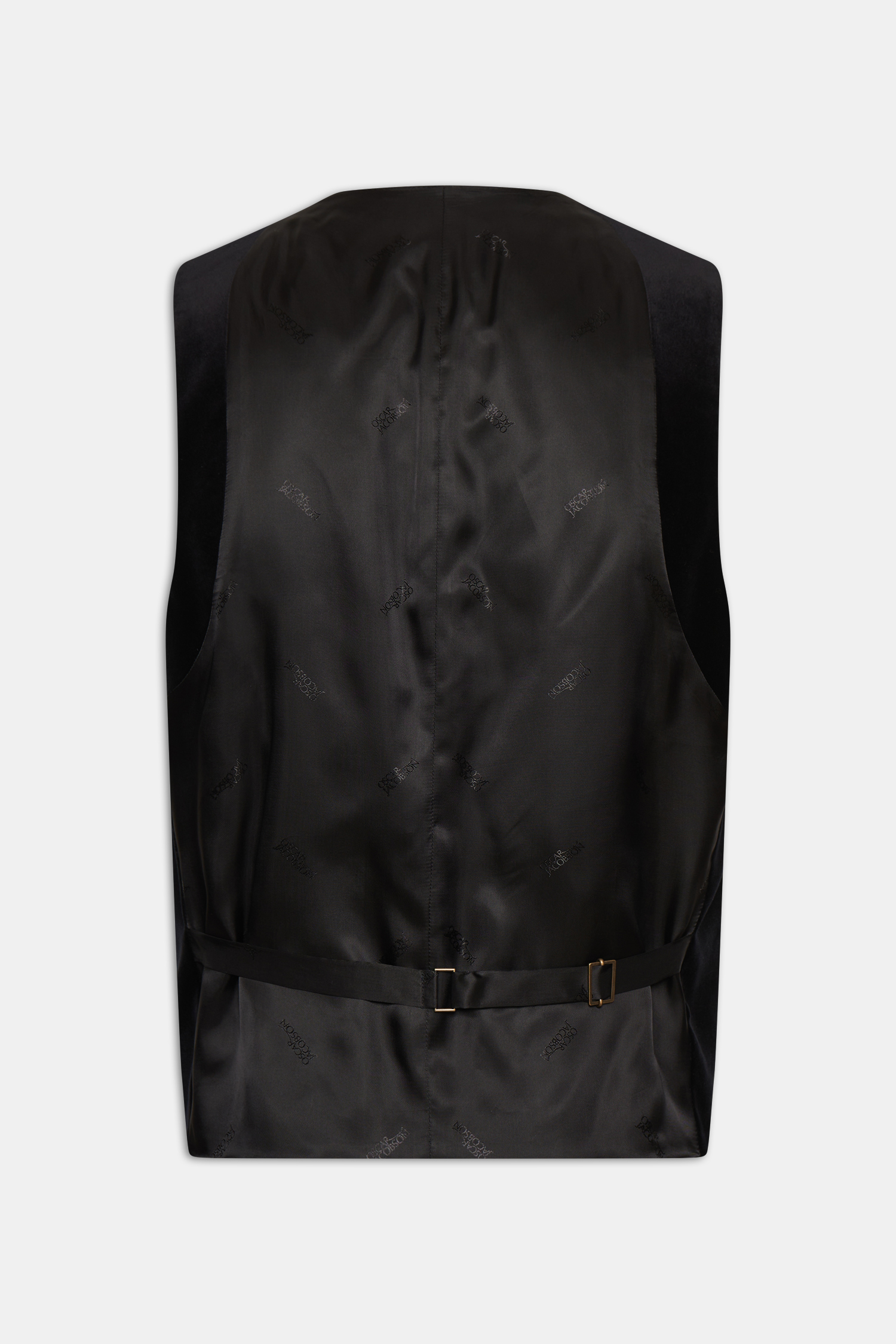 Dubbelknäppt smokingväst i sammet med sidenklädda knappar, framtagen i bomull från vävare Pontoglio.