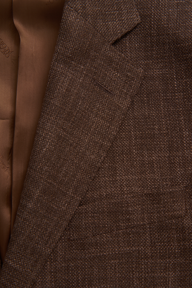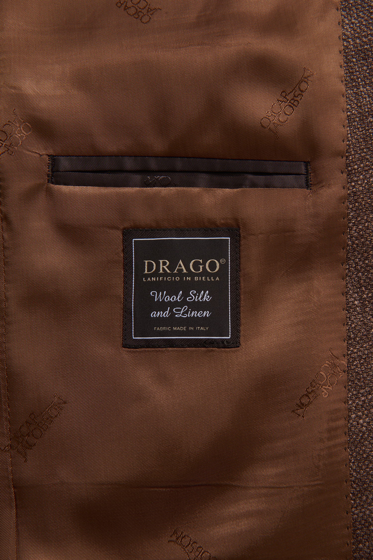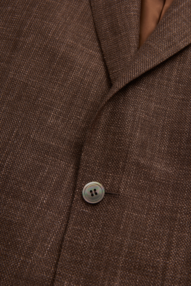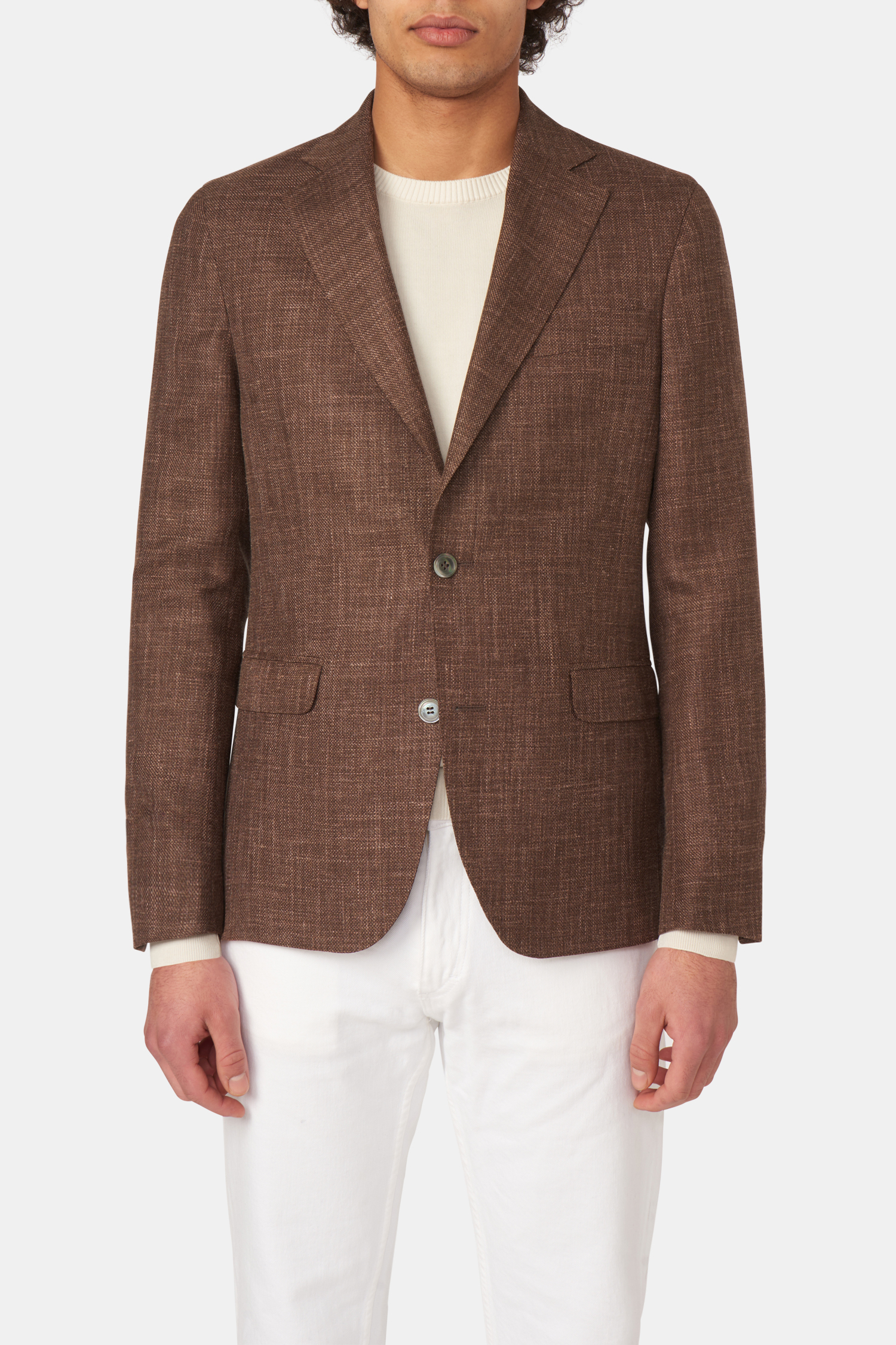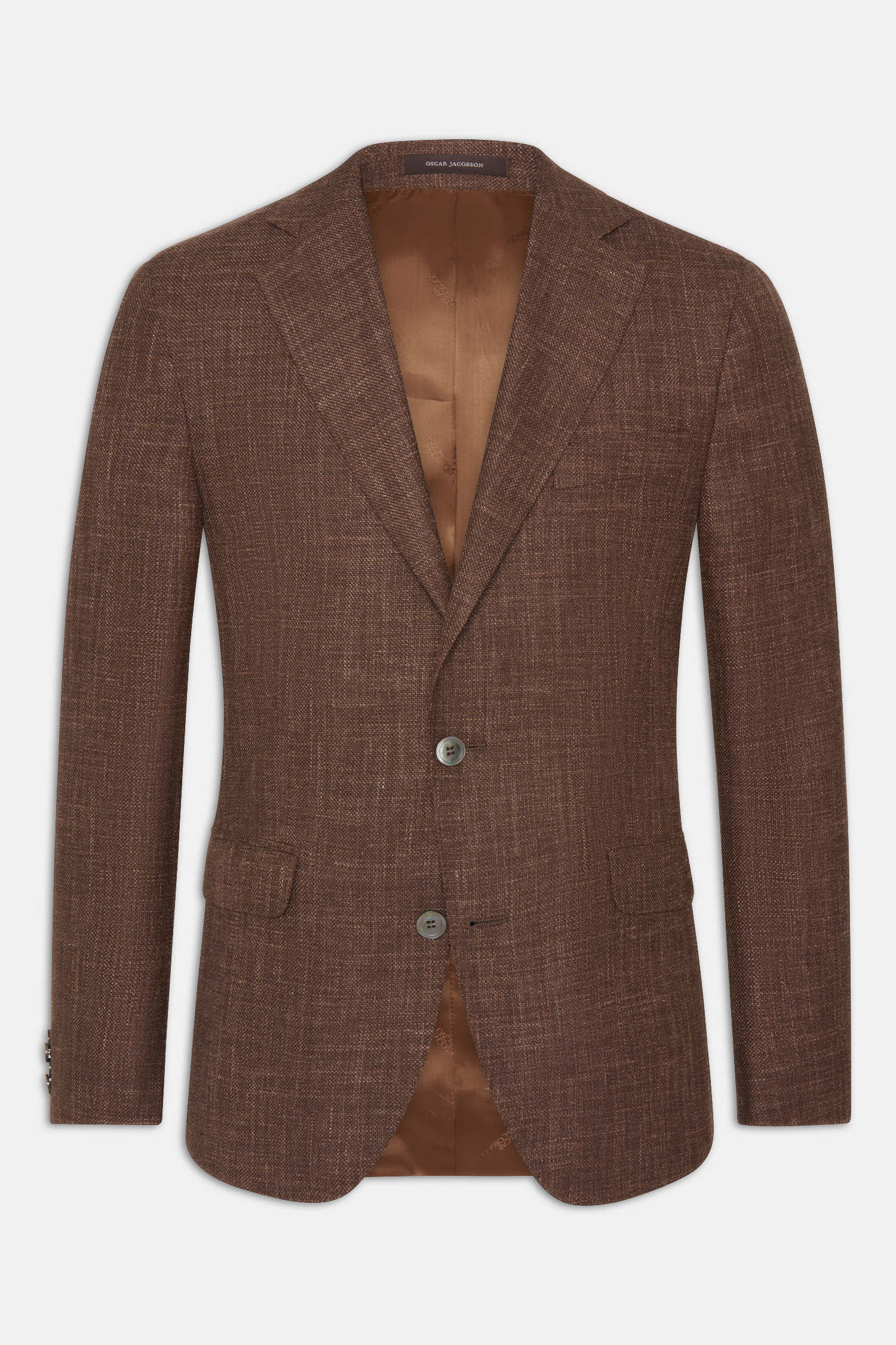 Enkelknäppt kavaj i regular passform med breda slag, extra mjukt konstruerad axel, helfodrad insida och klassiska fickor med ficklock. Tillverkad i ett exklusivt tyg från Italienska väveriet Drago, gjort av ull, siden och linne.