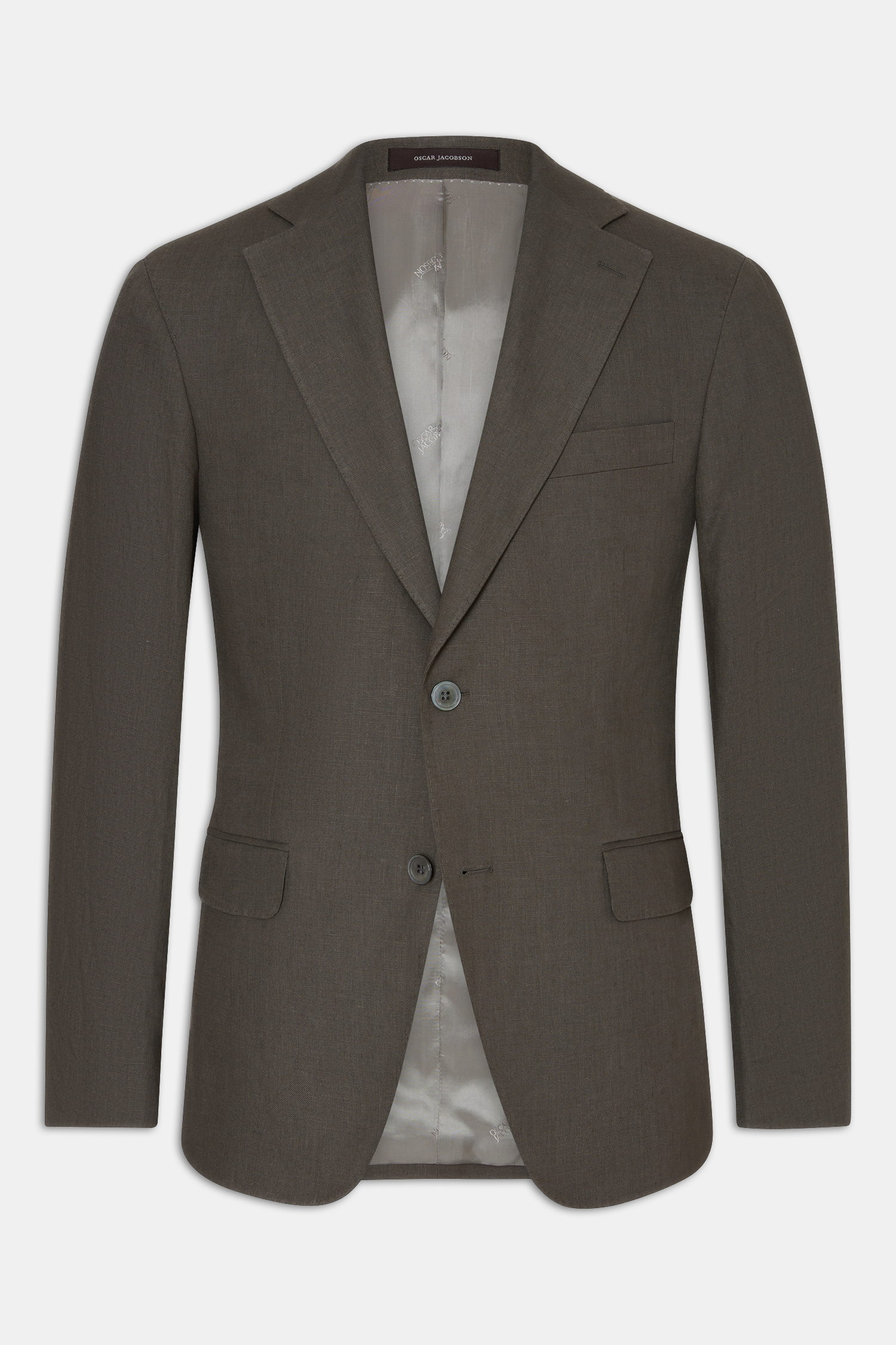 Enkelknäppt kavaj i regular fit med mjuk axel, ficklock och helfodrad insida. Tillverkad i ett linnetyg.