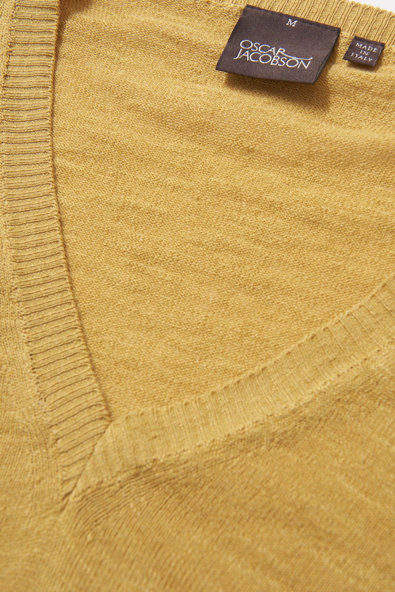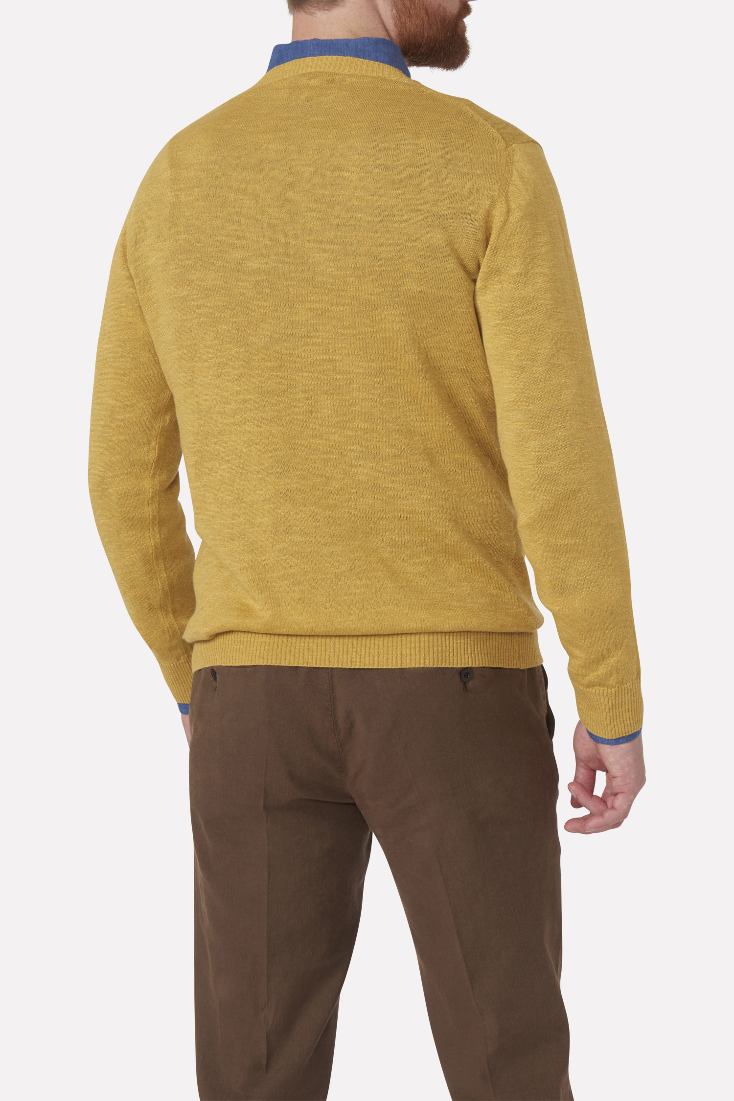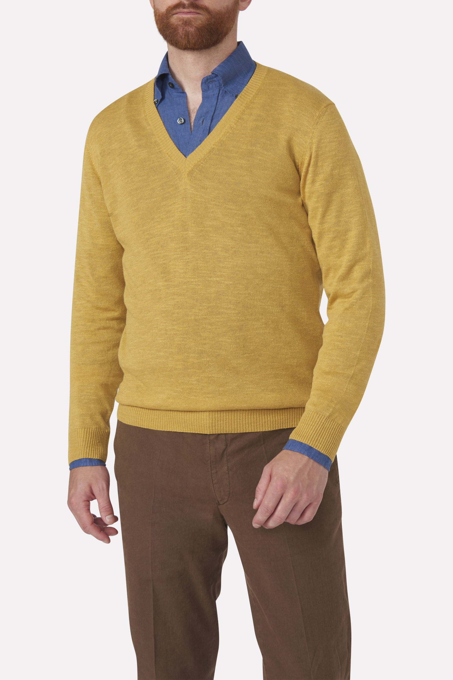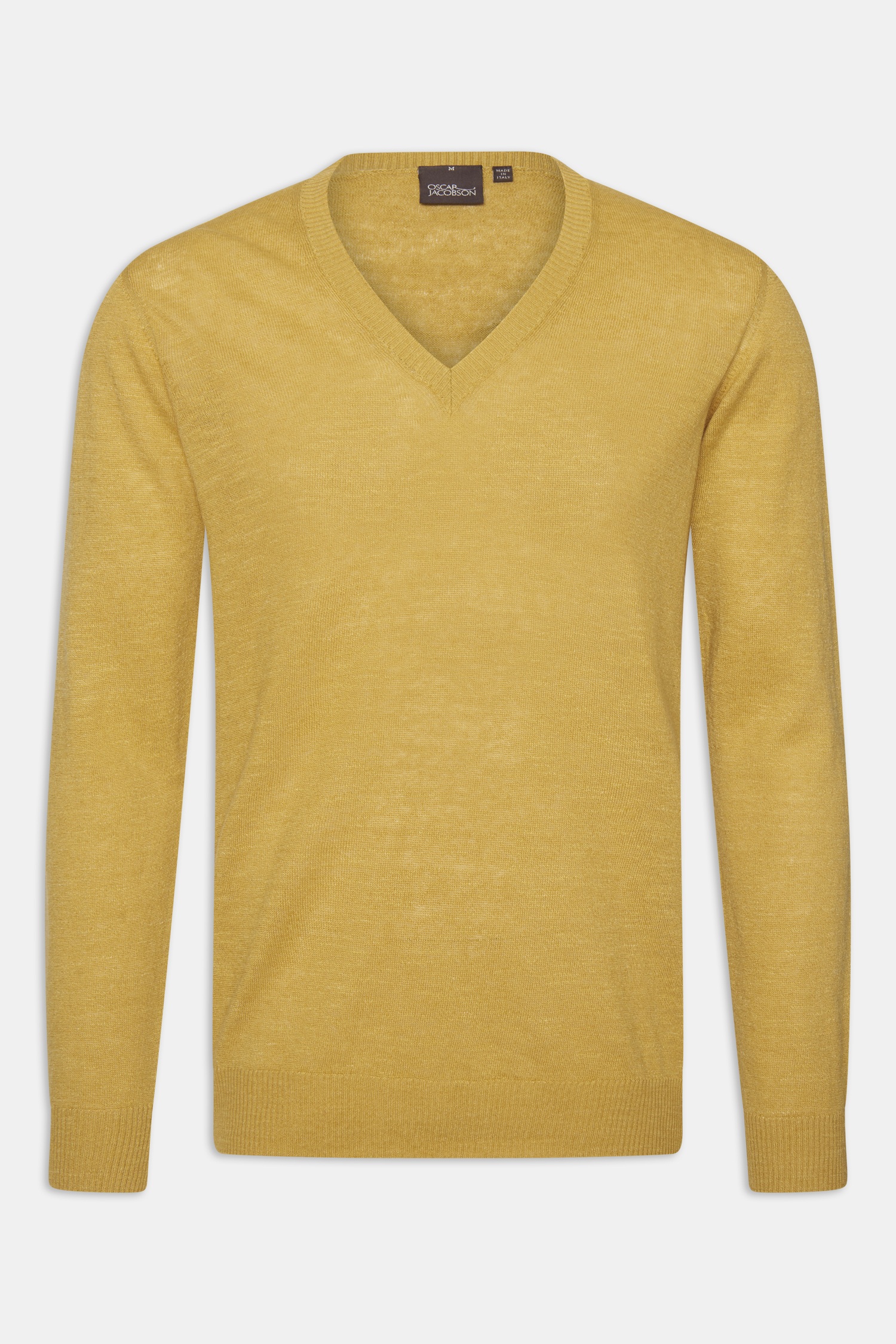 V-ringad tröja i normal passform tillverkad i en lyxig linne- och bomulls blandning med viss glansighet.