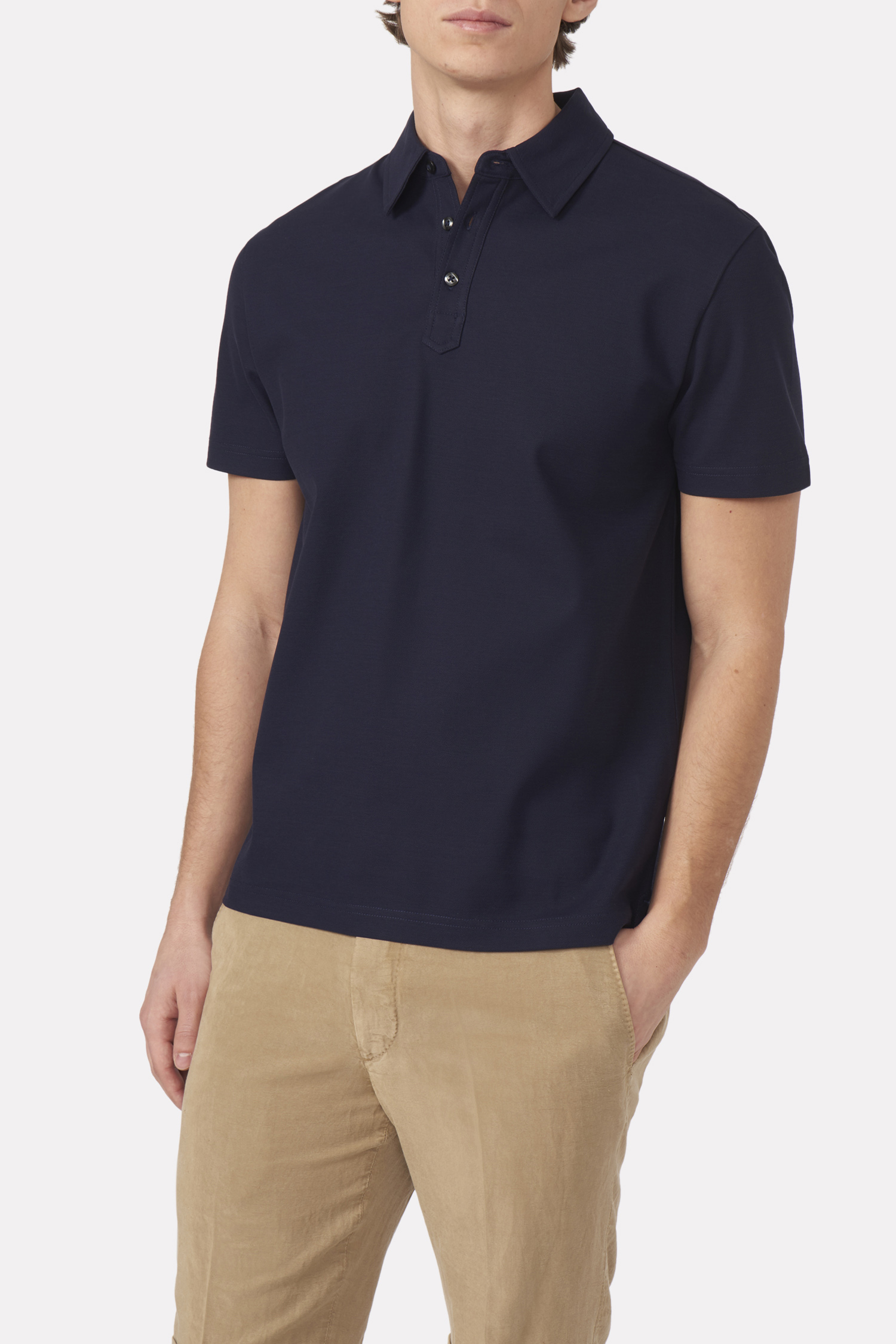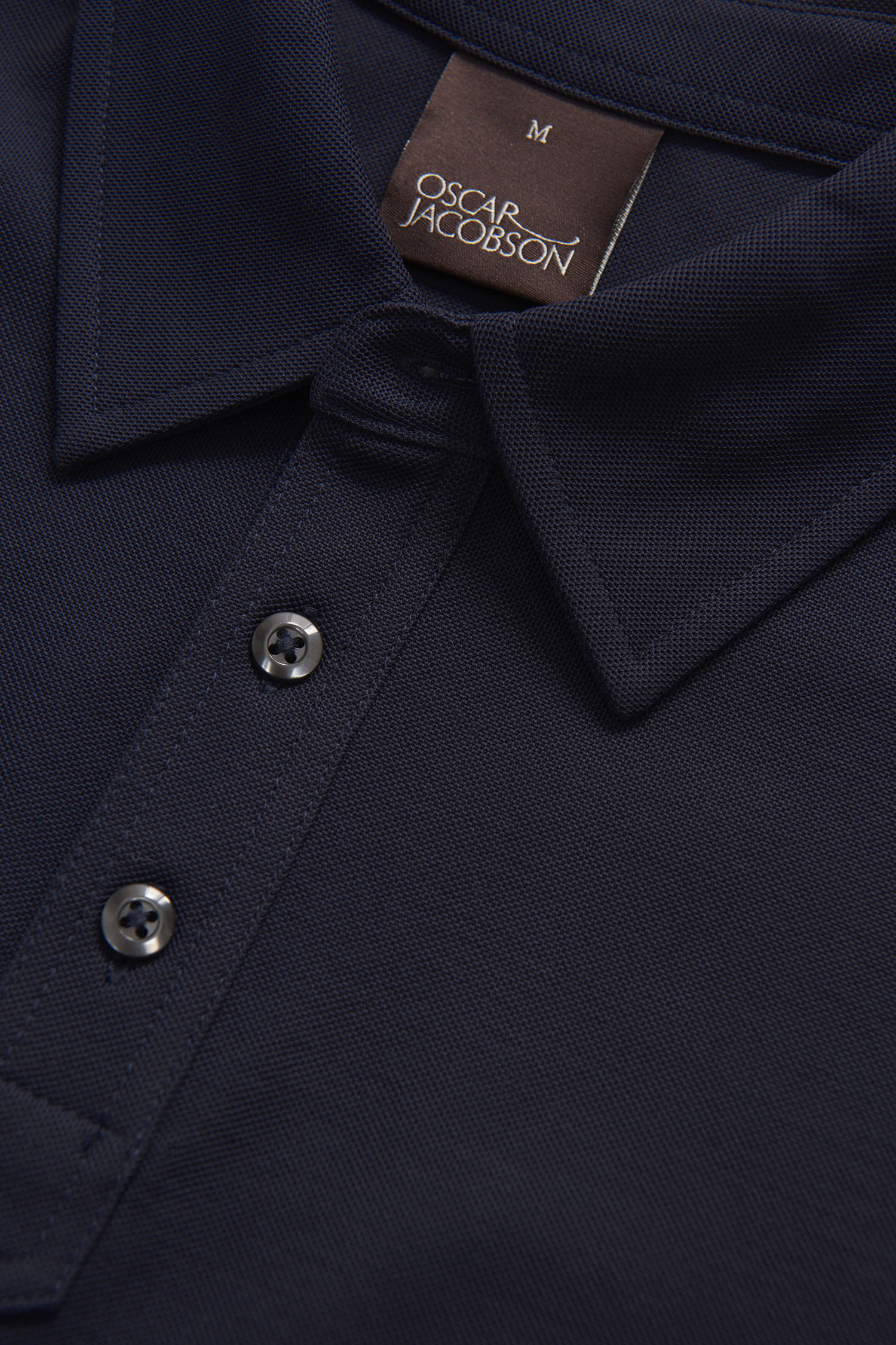 <div>Vår kanske mest dressade pikétröja i ren bomull. Knäppning och raka linjer i en typisk Oscar Jacobson känsla. </div>
