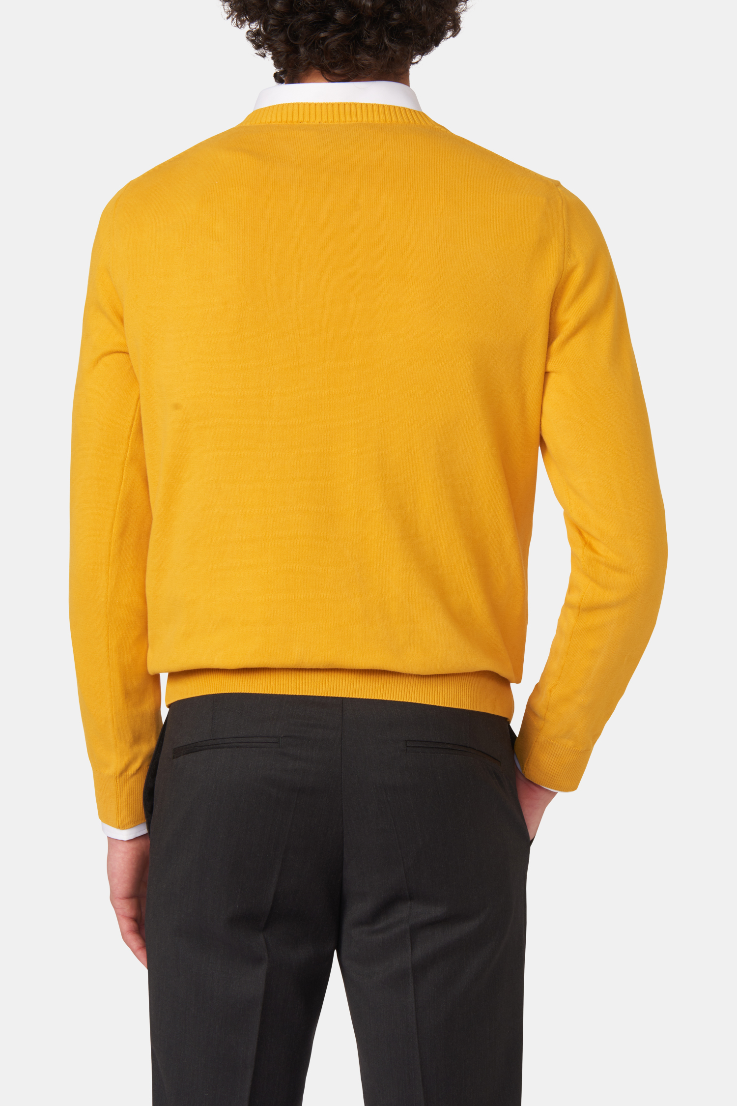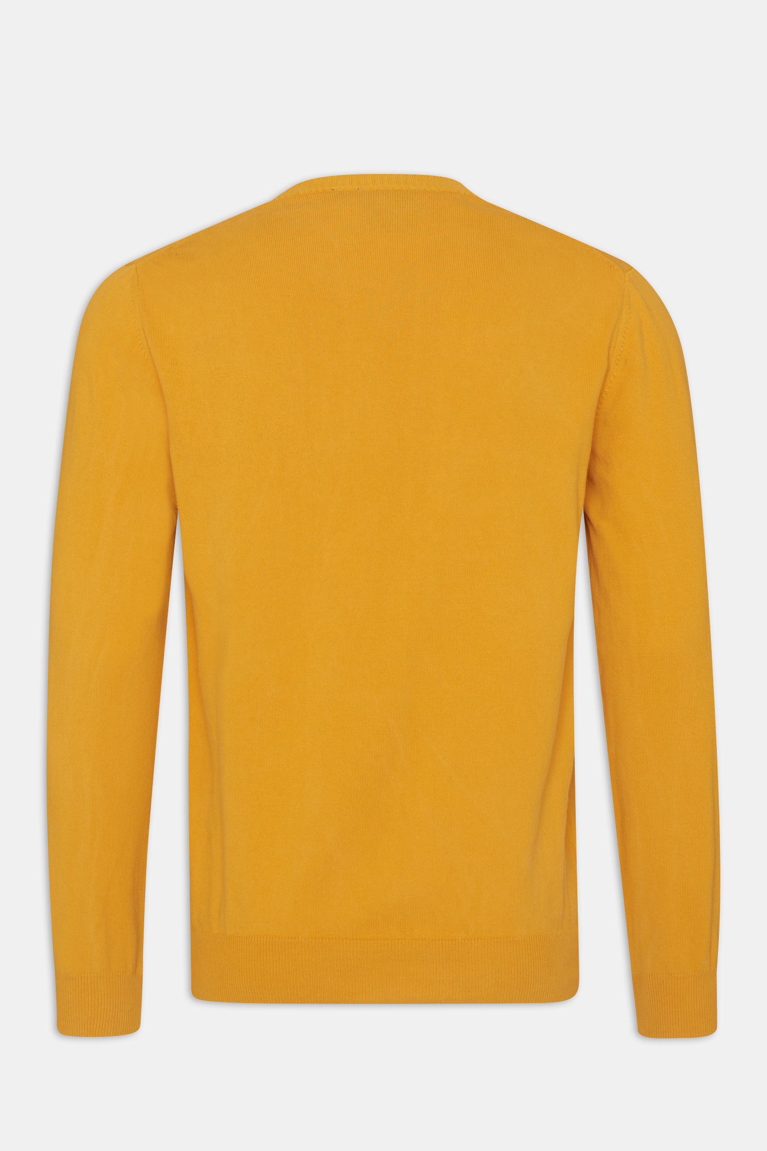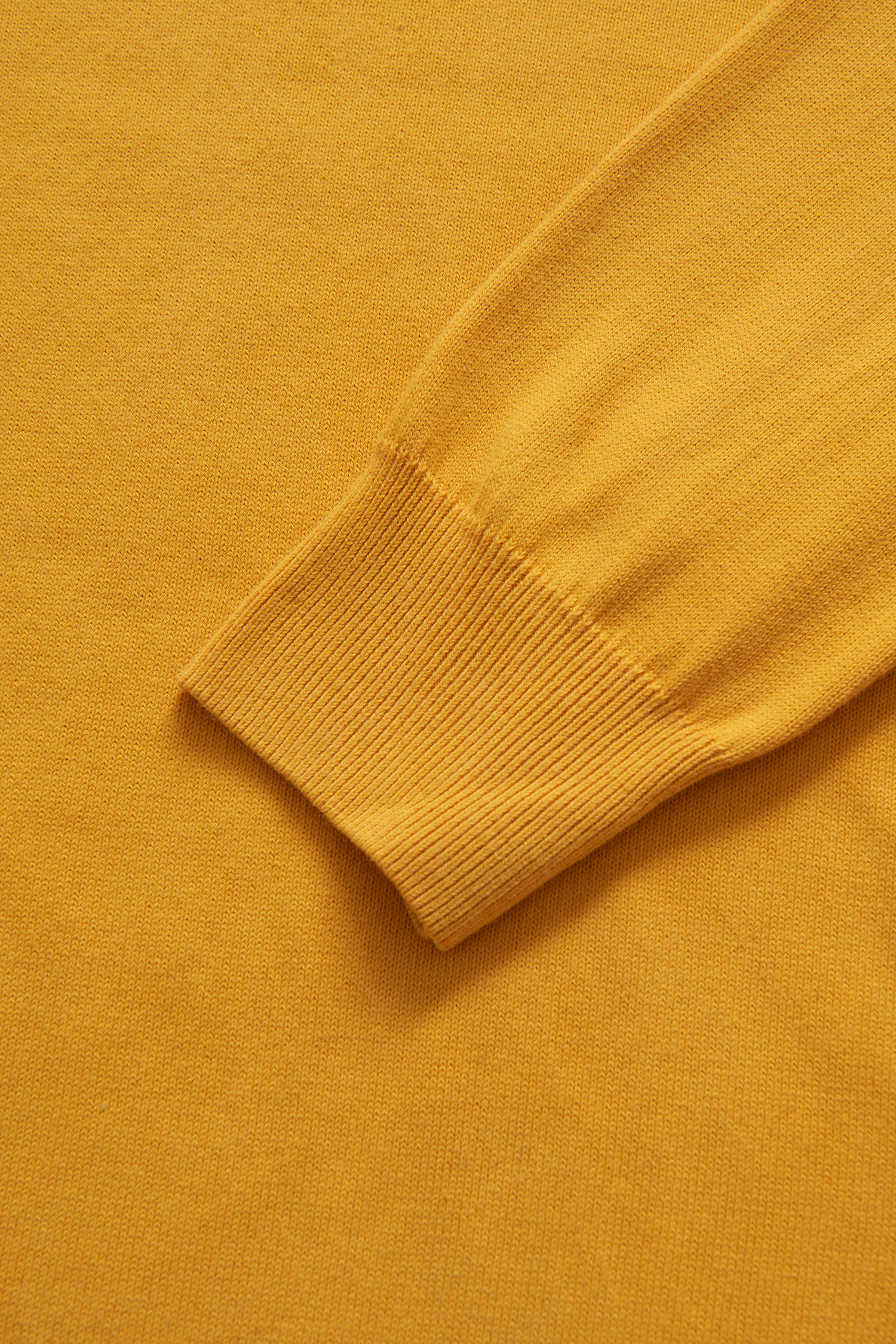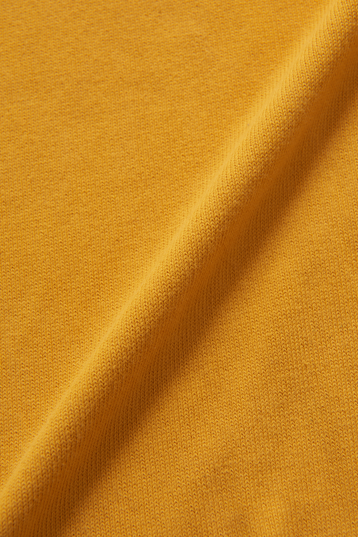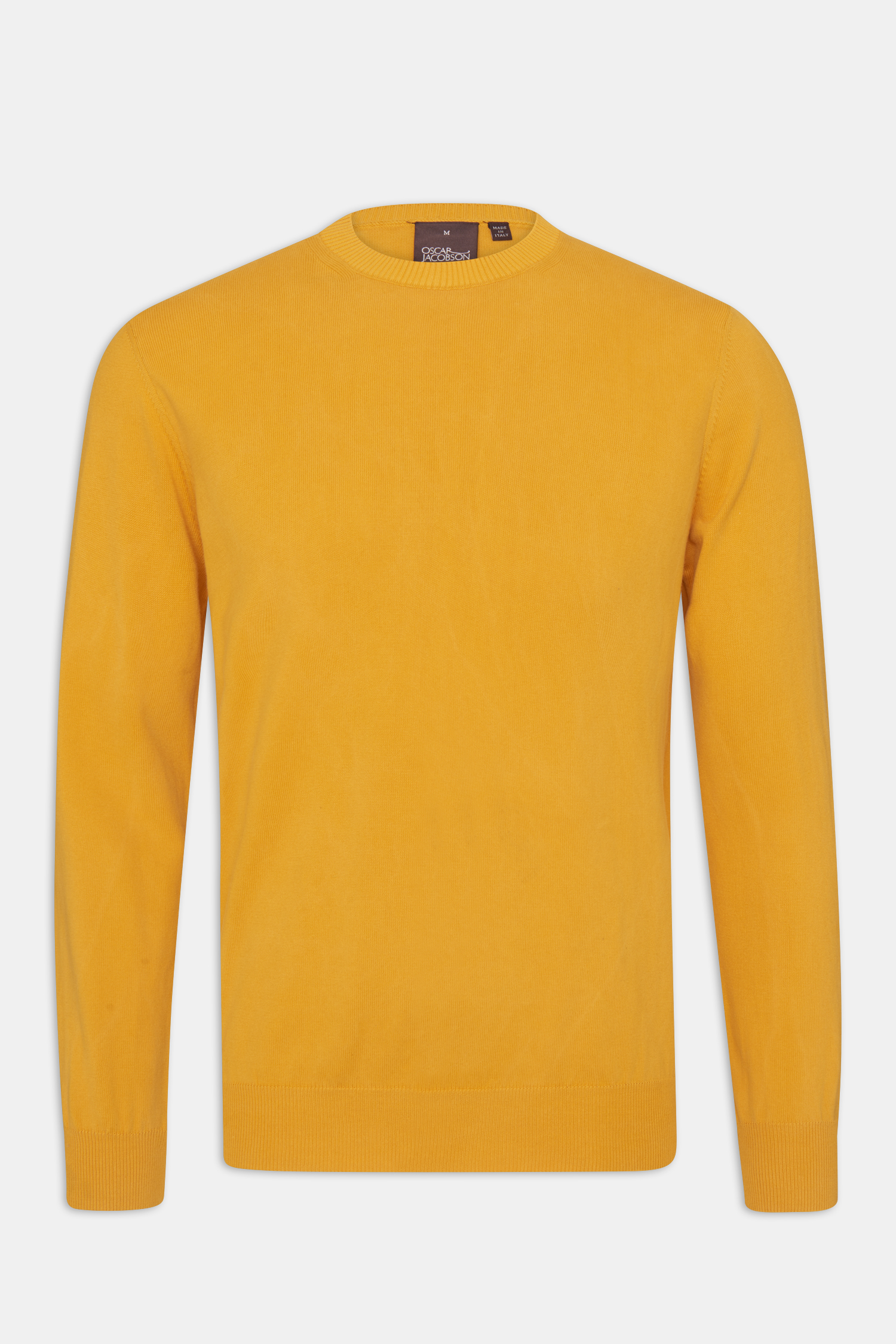 Rundhalsad stickad tröja försedd med mudd och ribbstickad krage. Gjord i ett tunt bomullstyg perfekt för sommaren.