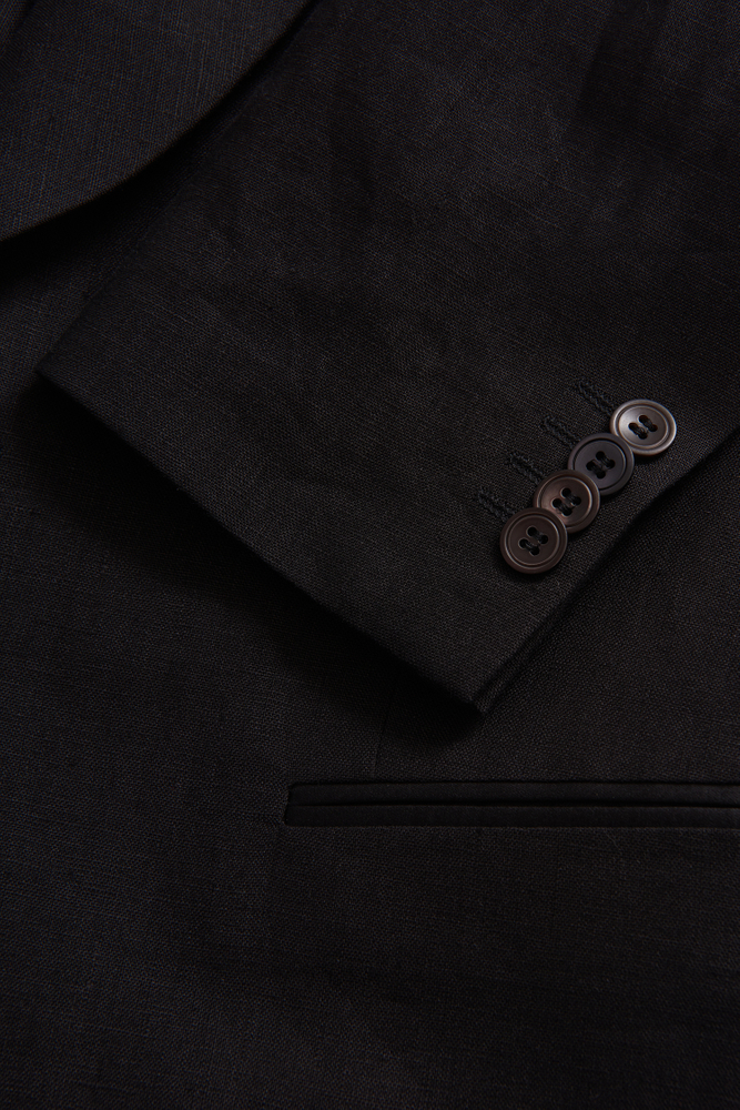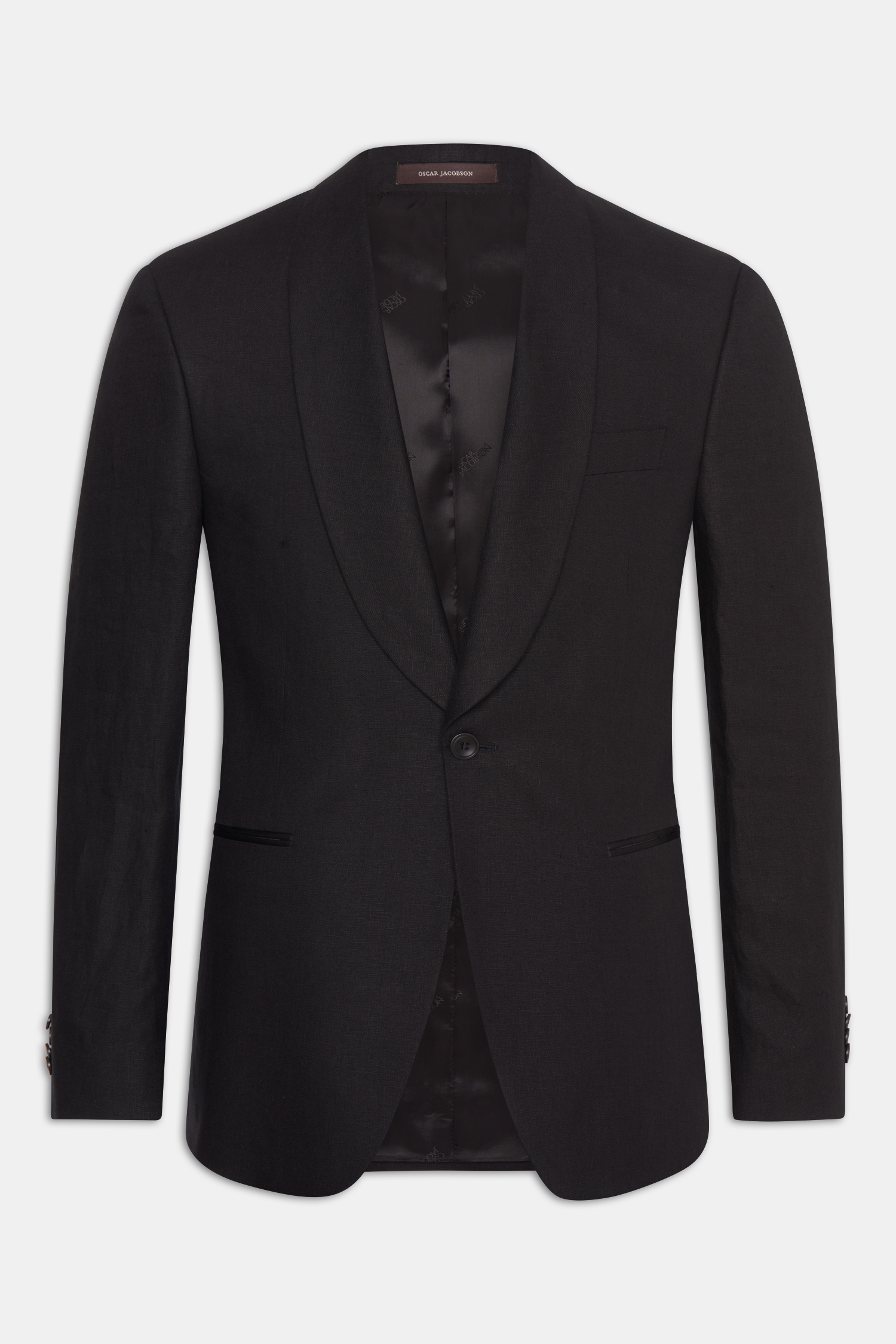 Enkelknäppt smokingkavaj i regular fit med konstruerad axel och helfodrad insida. Kavajen är försedd med sjalkrage och passpoalerade fickor. Tillverkad i ett 100 % linnetyg.
