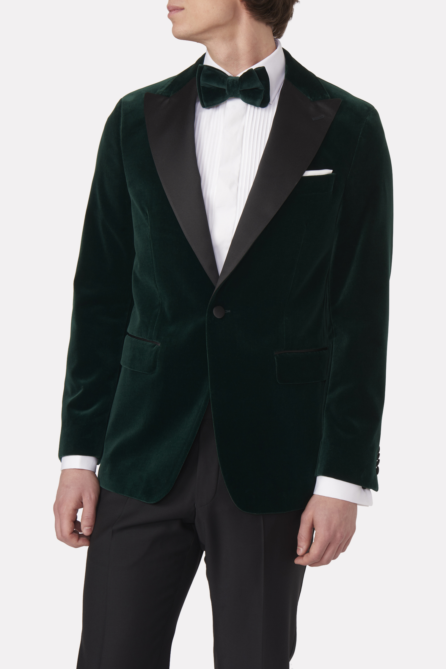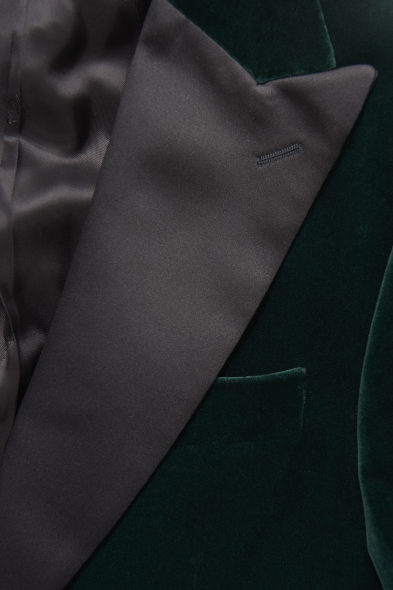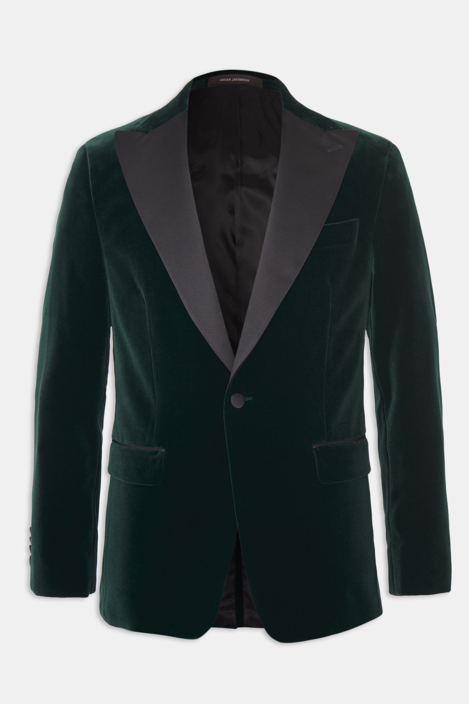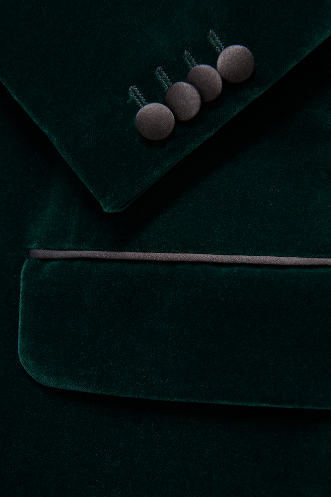 Smokingkavaj i sammet med spetsiga sidenslag. Tillverkad i bomull från vävare Pontoglio. Normal passform som ger en modern silhuett utan att kännas tajt. Helfodrad insida i viskos för ökad komfort och känsla.