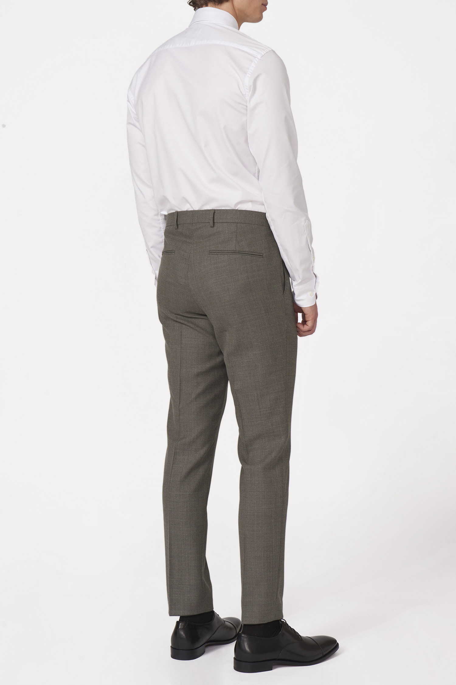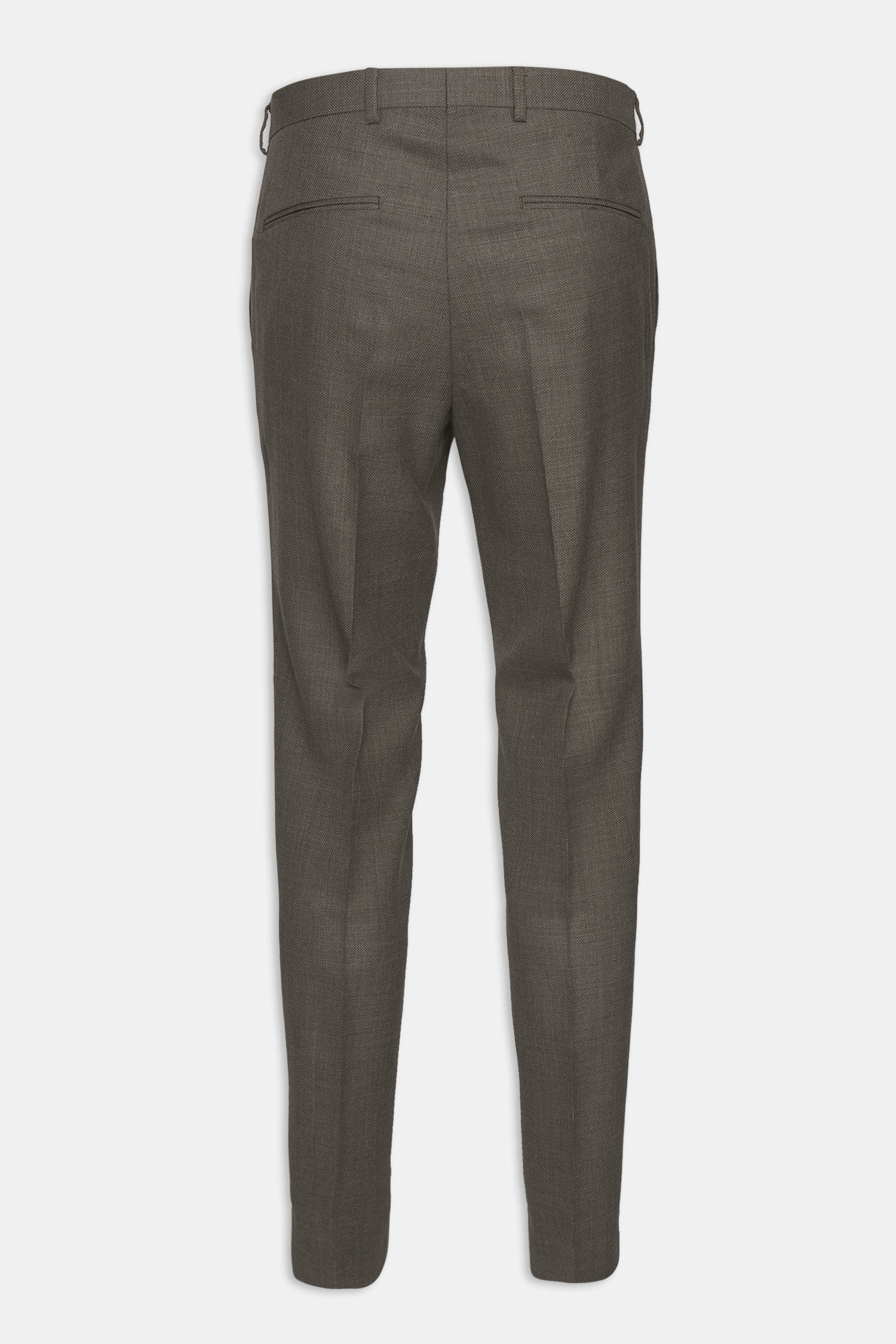 Den här modellen har en smal passform med normalhög midja. Texturerad sommarull från Marzotto, vävd exklusivt för Oscar Jacobson. Tyget är en lätt och luftig Fresco-kvalitet, en glesvävd högtvinnad ull med elegant mikrostruktur.