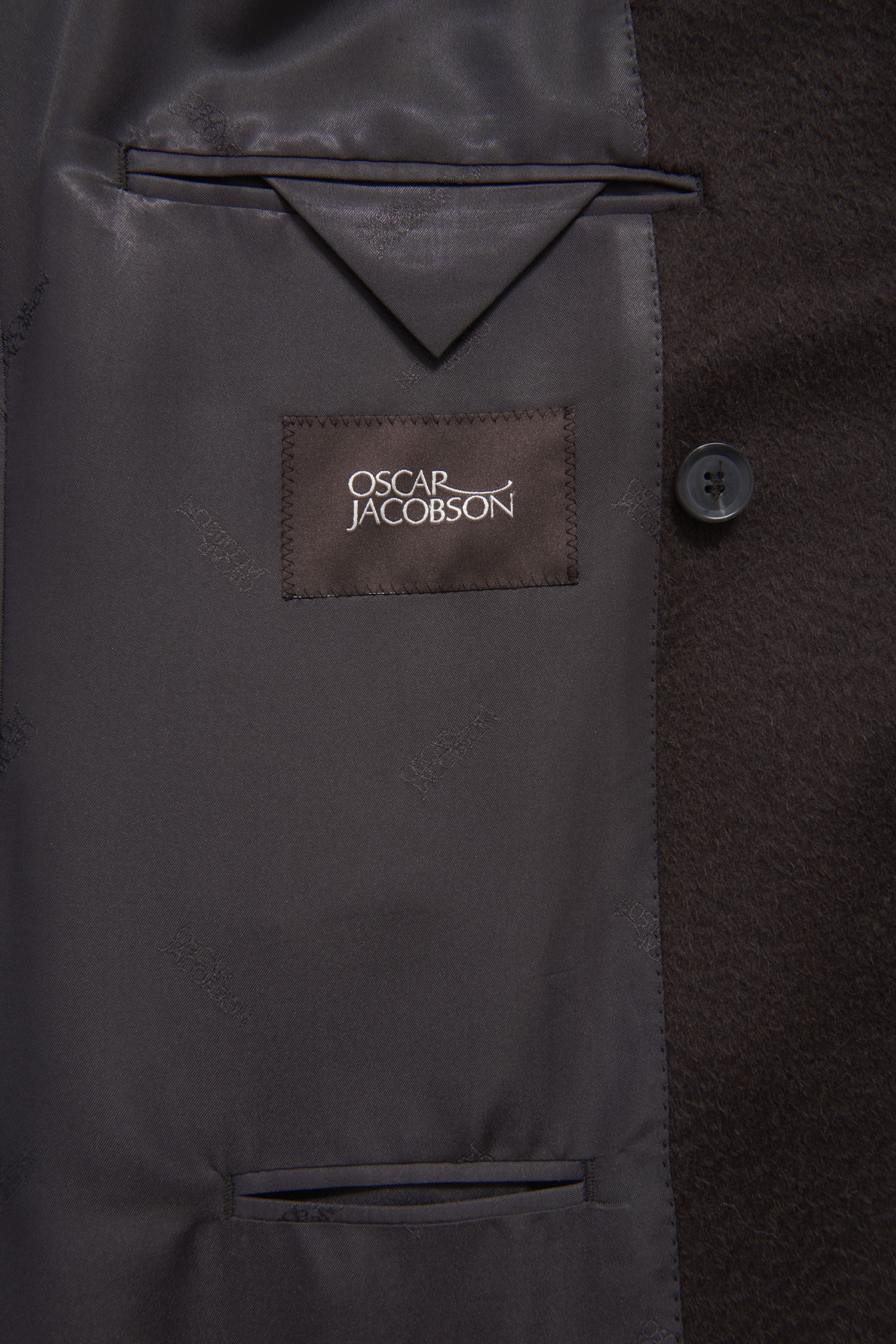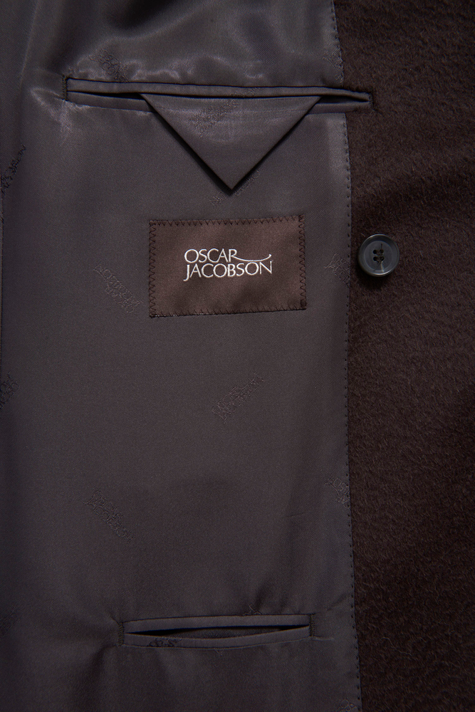 Dubbelknäppt rock i en längre modell, helfodrad, två innerfickor och med breda spetsiga slag. Tyg i 100% kamelhår som ger en otroligt mjuk känsla.