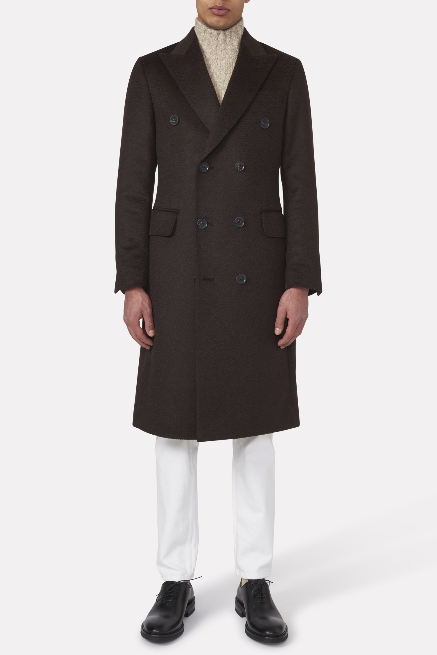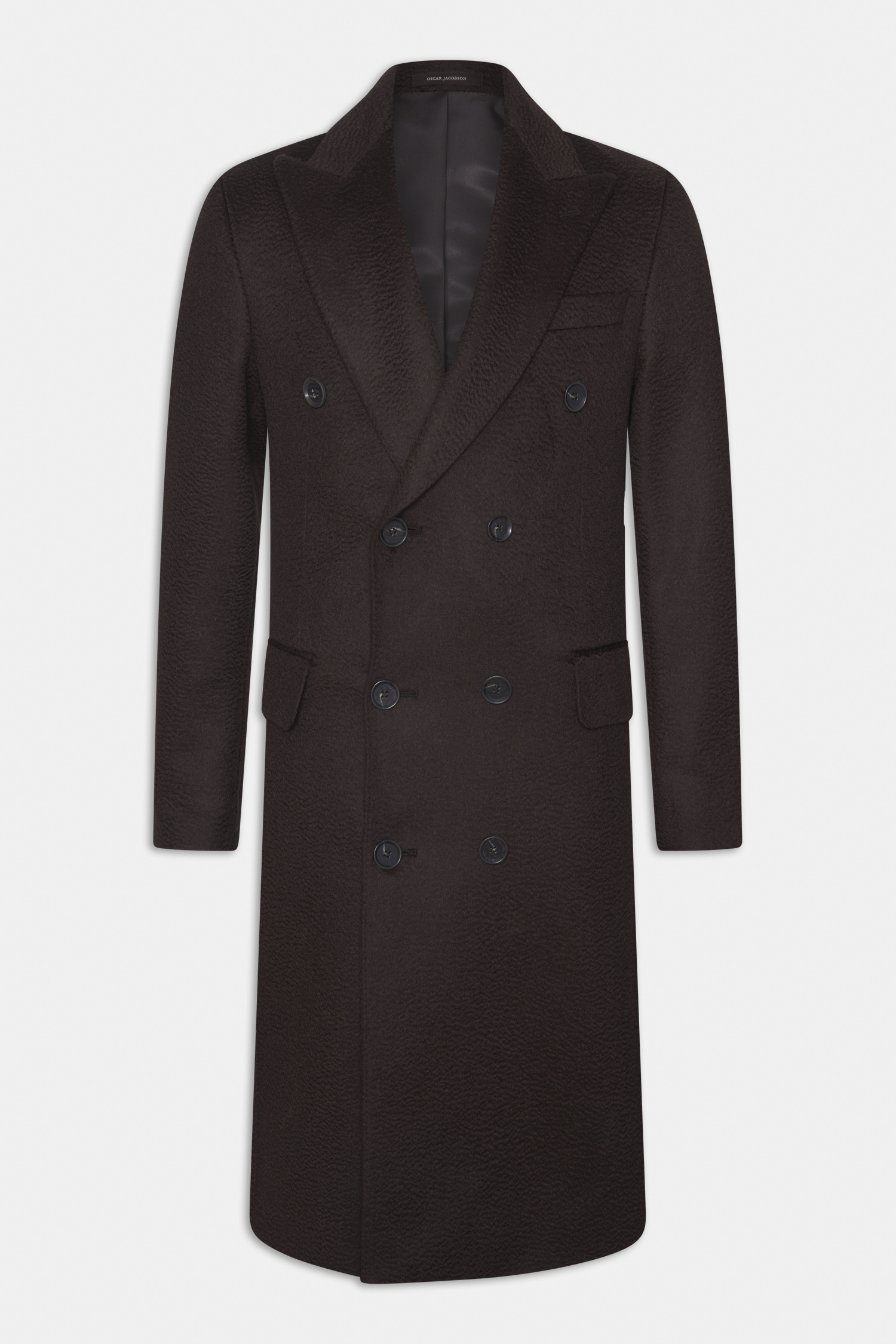 Slim Fit Dubbelknäppt Borstad Kamelhårsrock