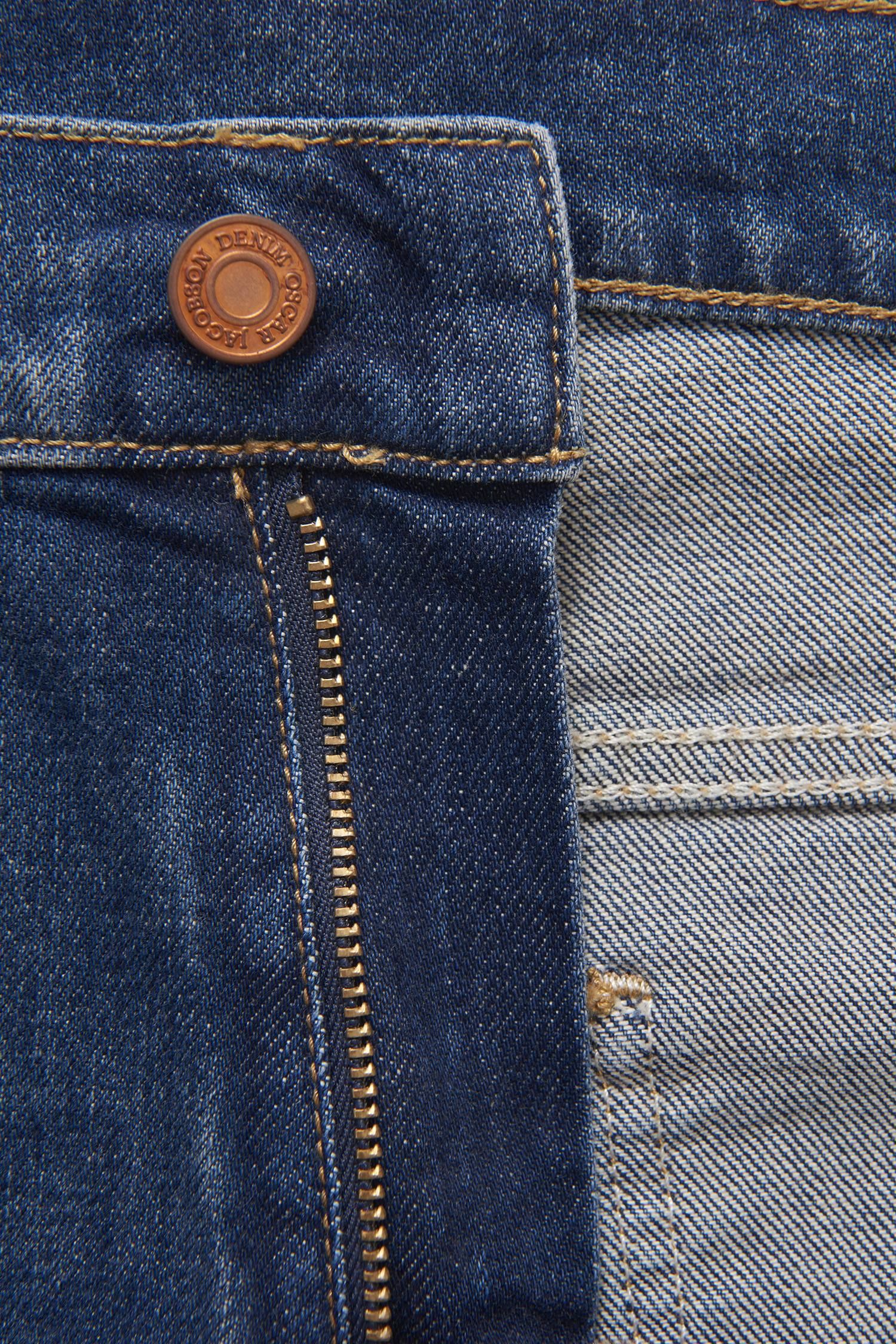 Passformen är smal med rakt ben, midjan är låg till normal höjd. Gjorda på denim med stretch från Candiani i Italien, som är vävd på gamla, begagnade vävstolar från Levis med knappar och nitar från Italien och Borås. Jeansen är gjorda på 100% hållbart odlad bomull.