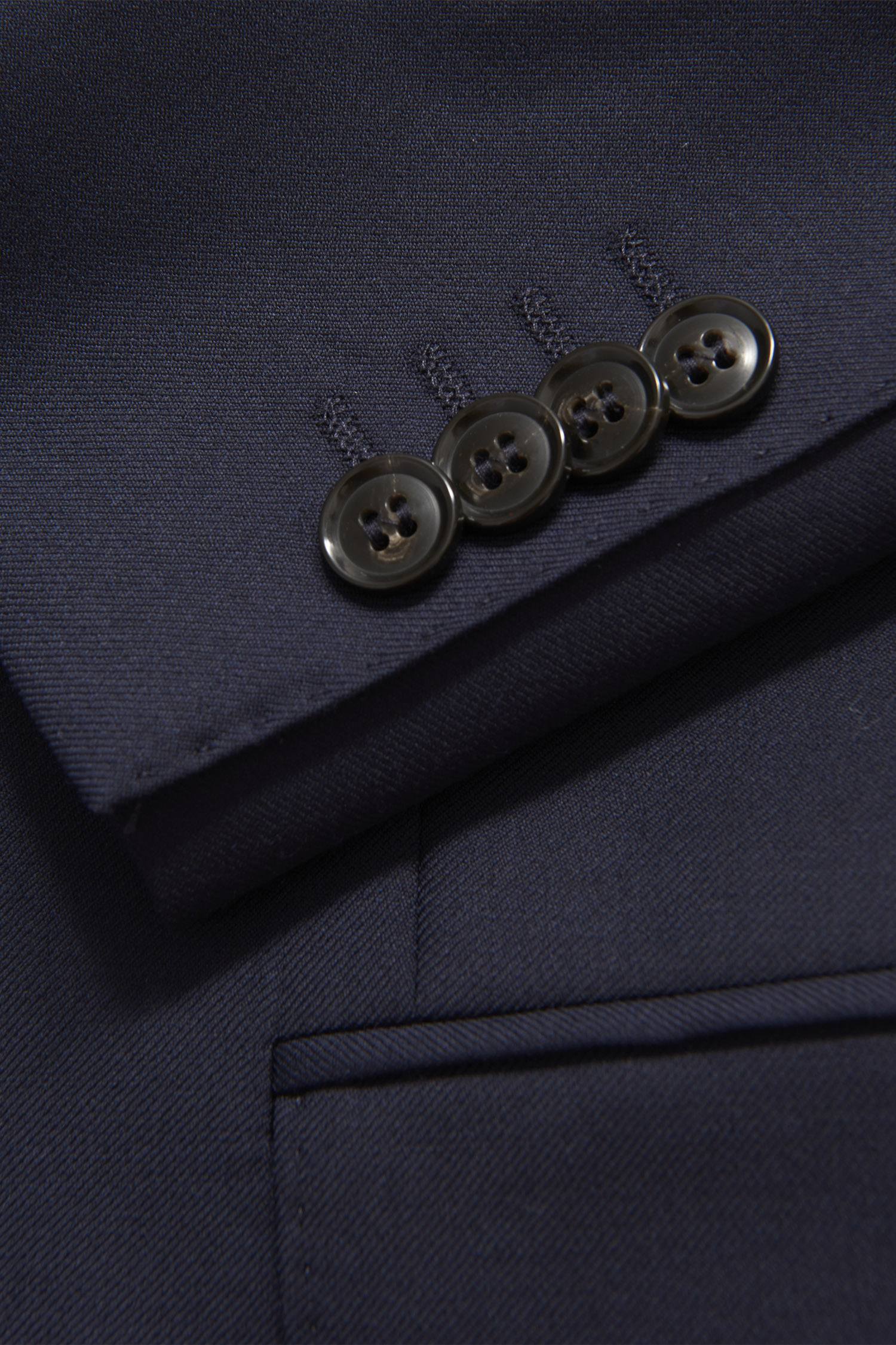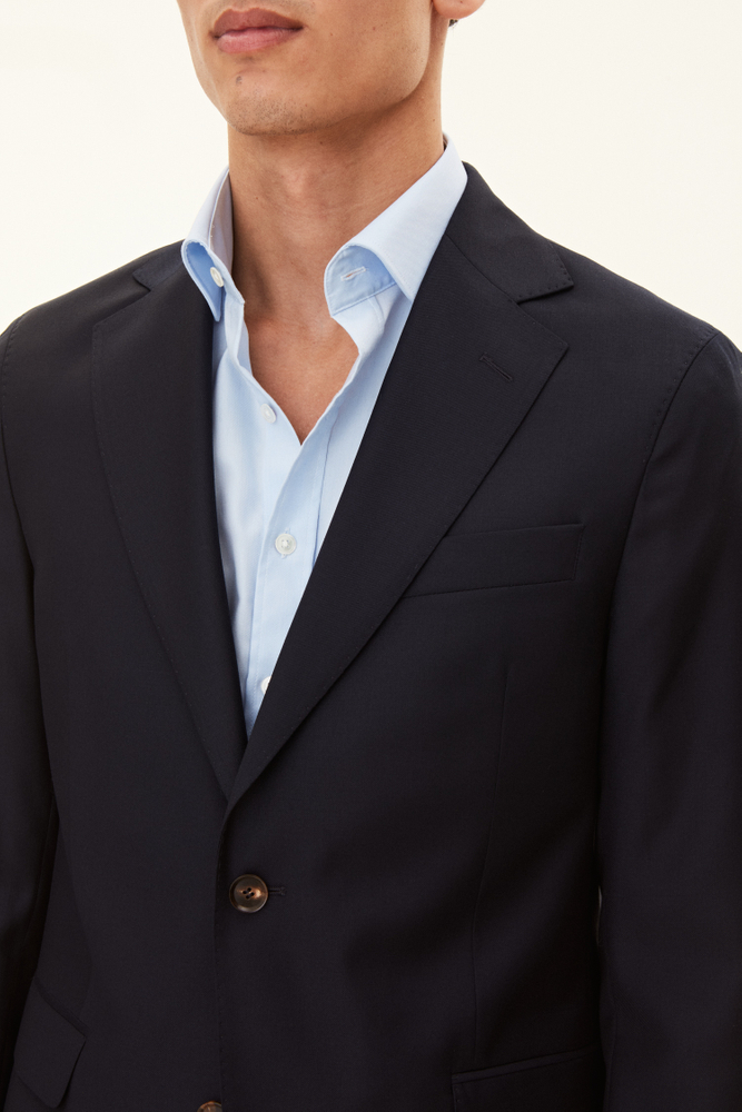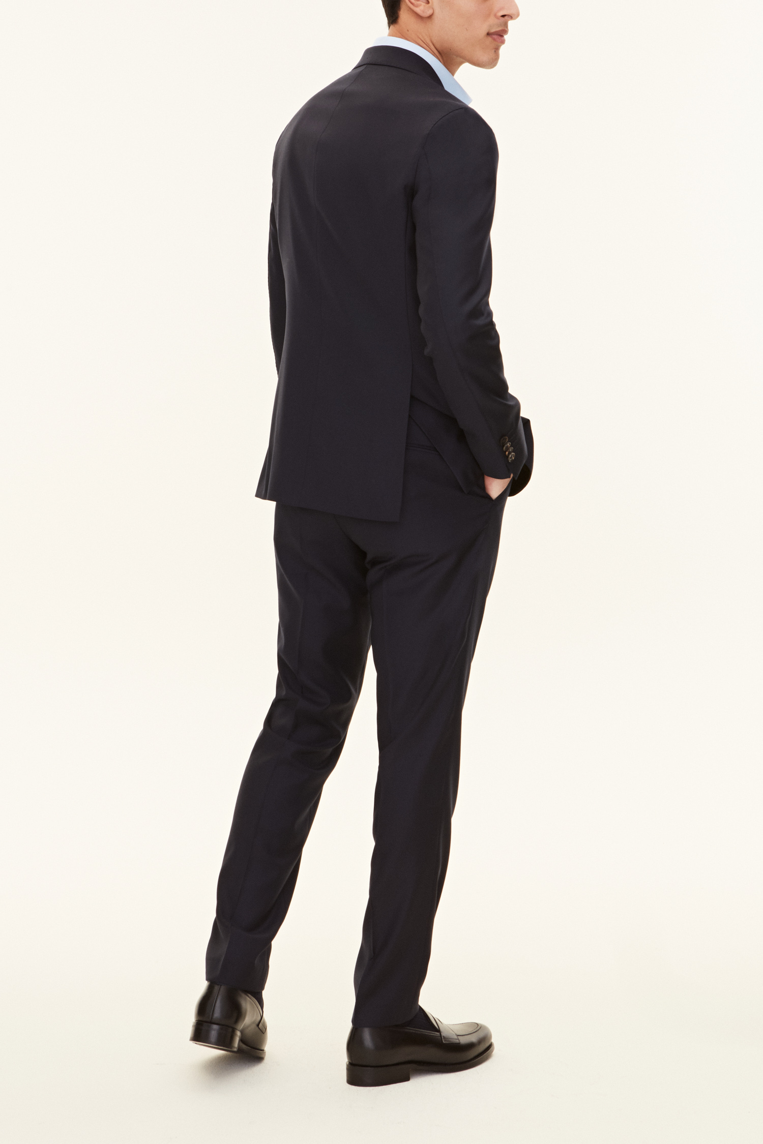 Säsongens mest exklusiva kostym tillverkad i 100 % Zelander wool© från en av världens främsta tygleverantörer - Loro Piana. Tyget besitter inte bara en fantastisk lyster och enastående mjukhet utan även en naturlig stretch som ger ökad följsamhet och komfort. Kostymens passform är smal utan att kännas tajt, insidan är helfodrad i viskos och axeln lätt uppbyggd för en formell men samtidigt mjuk silhuett.