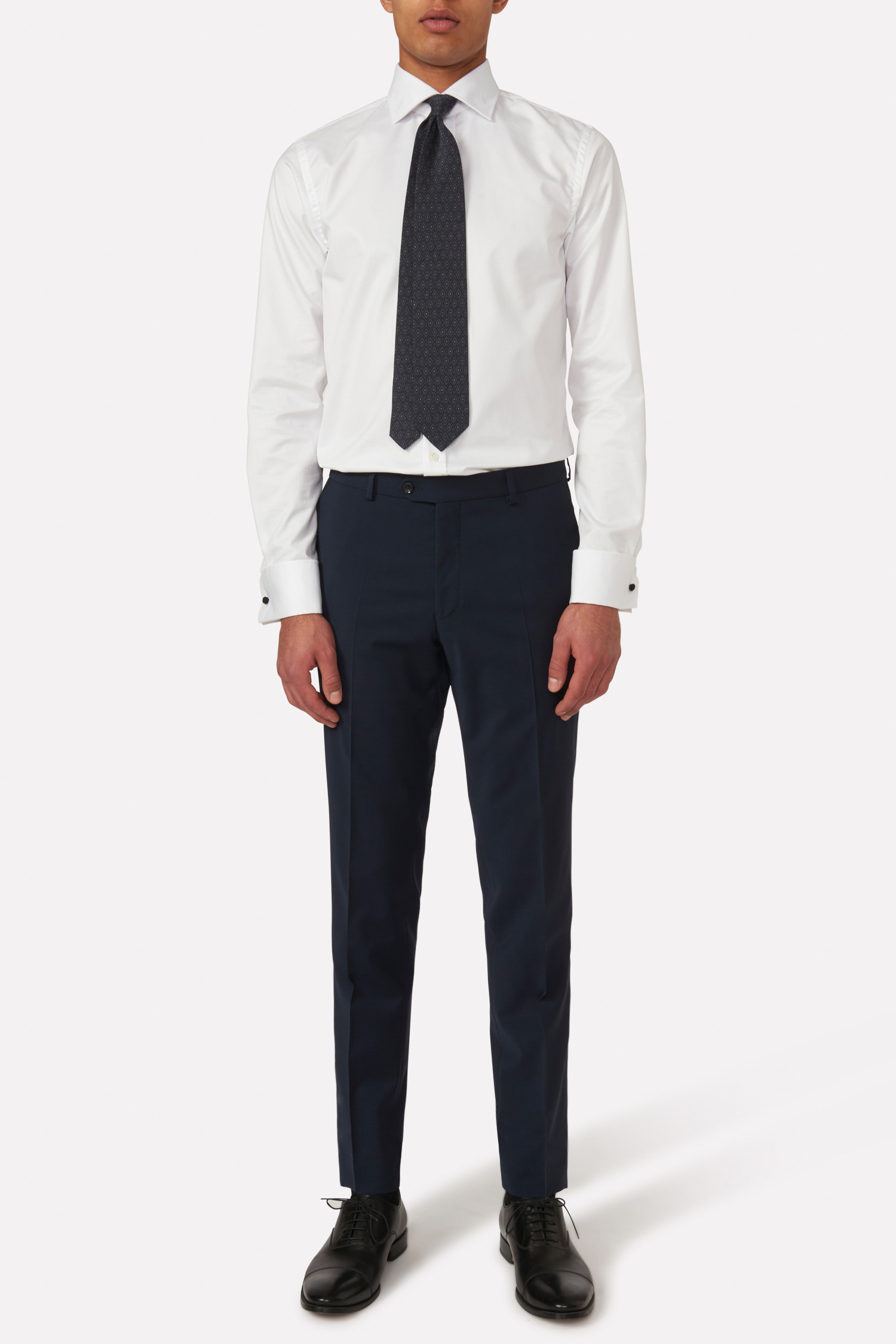 Klassiska kostymbyxor i slitstark ullmix. Den här modellen har en avsmalnande passform och en klassisk byxlängd som precis nuddar skon och bildar ett elegant bryt. Bär den som elegant uddabyxa eller som del av en hel kostym!