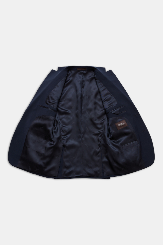 Enkelknäppt kostym i en slät och slitstark ullstretch. Kavajen är helfodrad och har ett mjukt konstruerat bröst- och axelparti med en smal passform. Kostymbyxor med en avsmalnande passform, normalhög midja och en klassisk byxlängd.