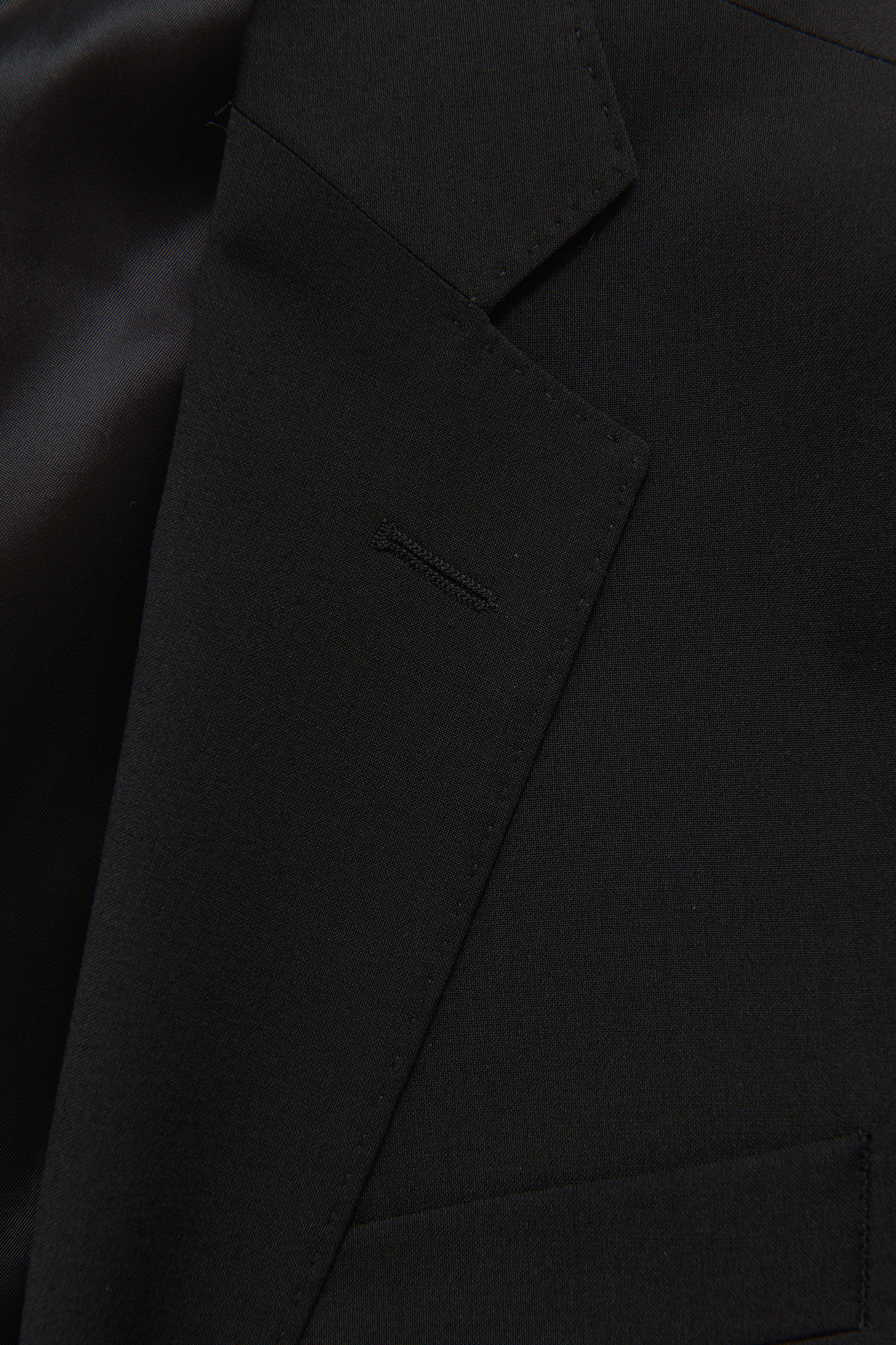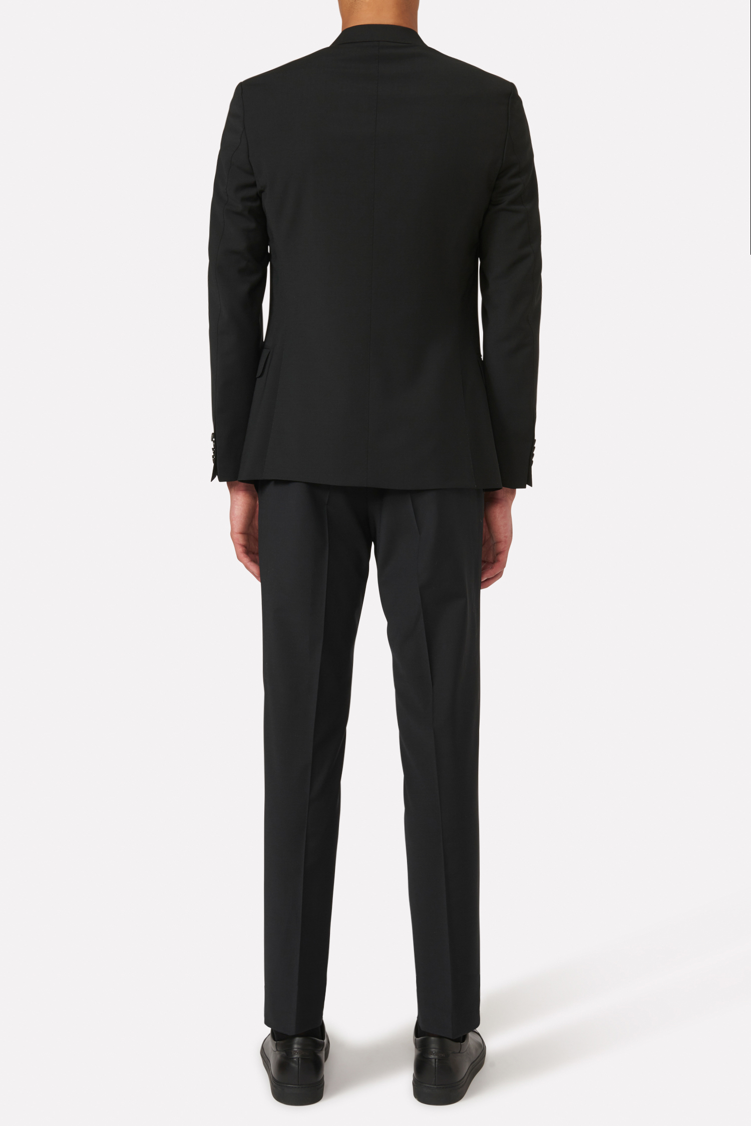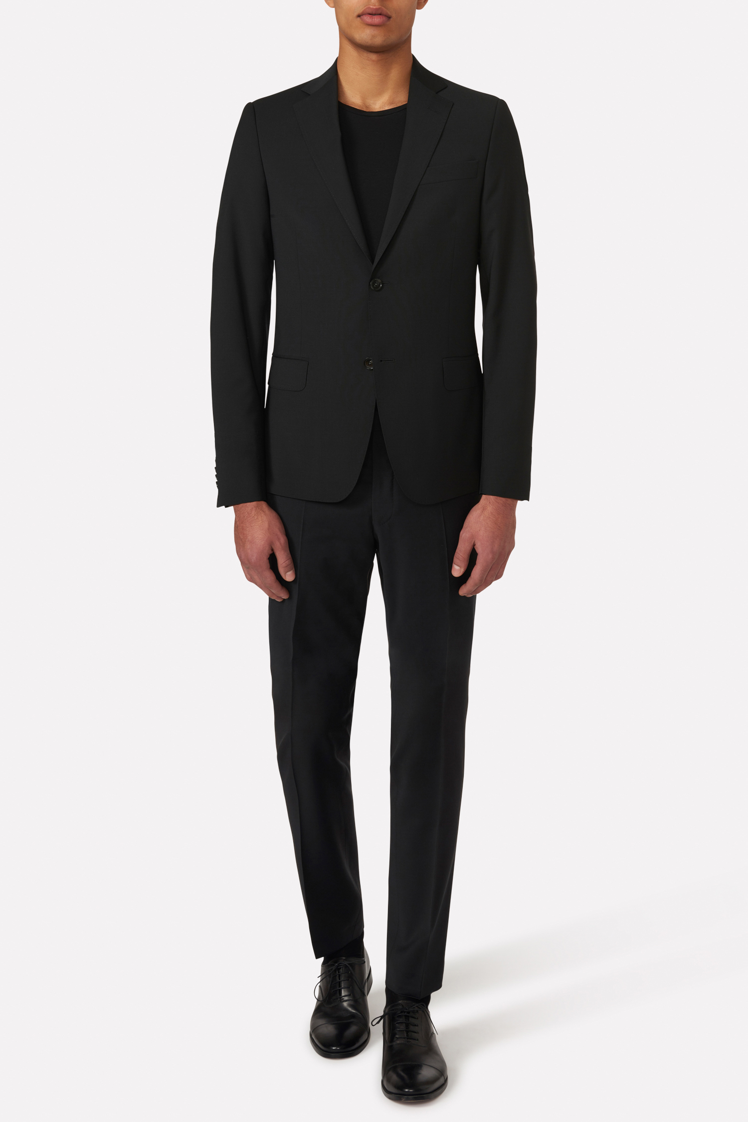 Klubbkostym i mörkblått ullgarn med struktur från italienska väveriet Marzotto. En mjuk konstruktion där mellanlägg och axeluppbyggnad är närmst obefintlig. Kavajen är fodrad och har fickor med ficklock. Tillhörande byxor har en klassisk, något avsmalnande passform och en normalhög midja.