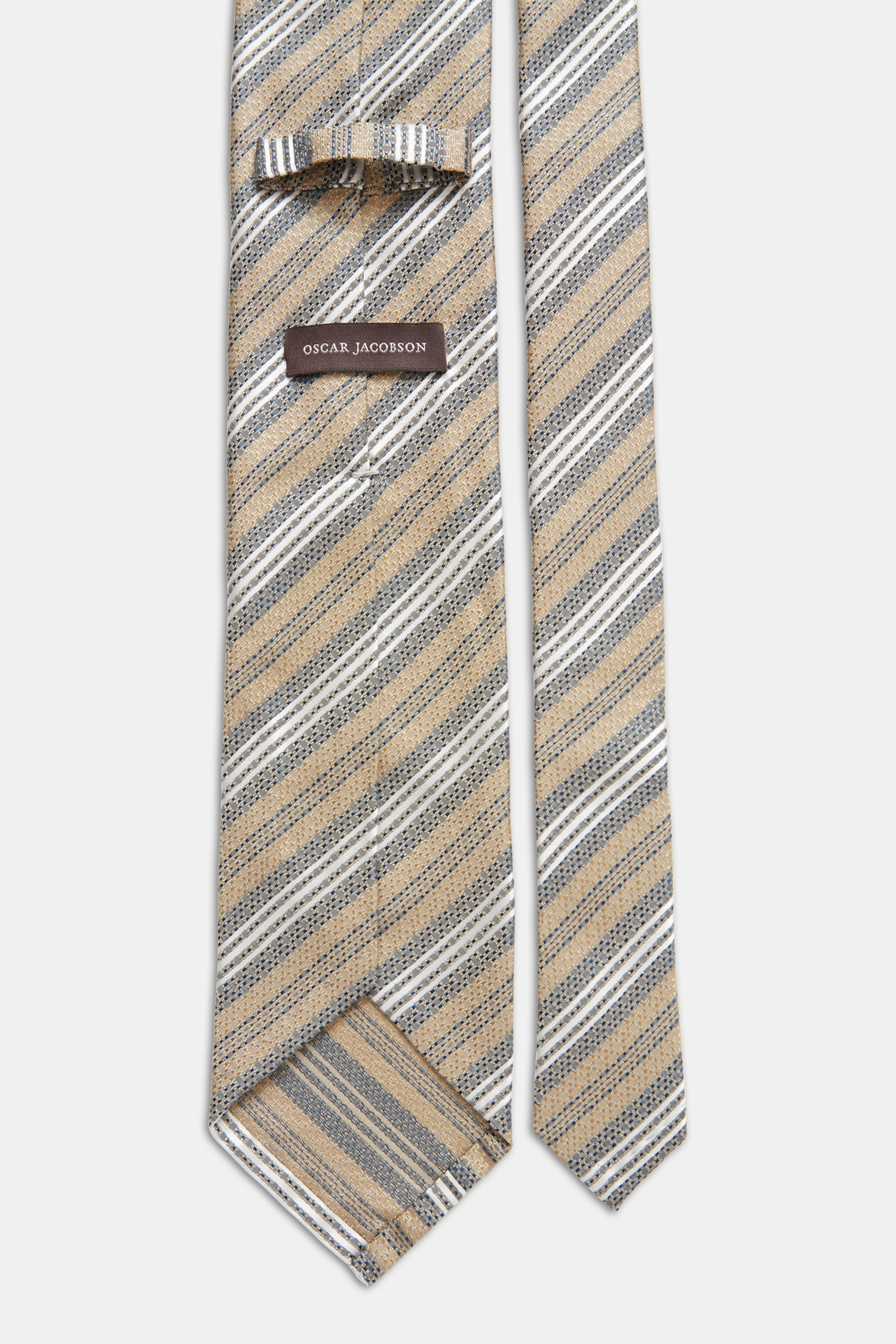 Randig slips i 100% siden, tillverkad enigt traditionen seven fold och framtagen i samarbete med Gentlemanualen.