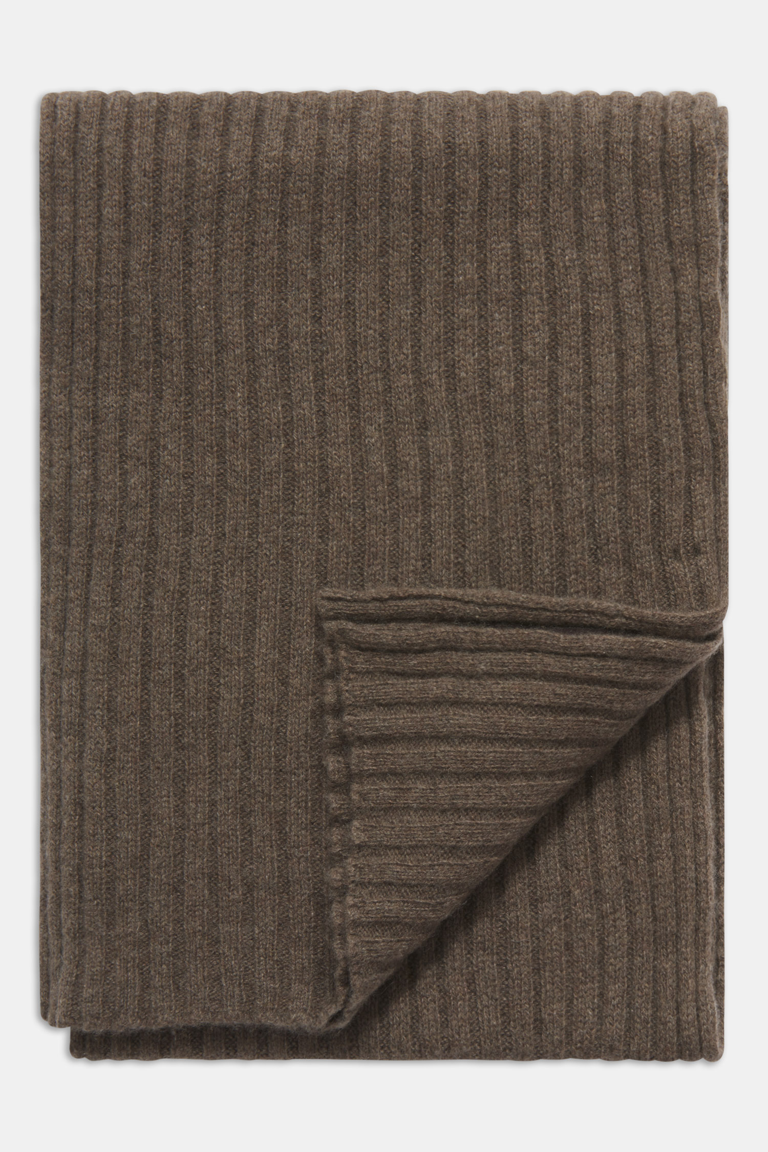 Ribbstickad halsduk tillverkad i 100 % kashmir.